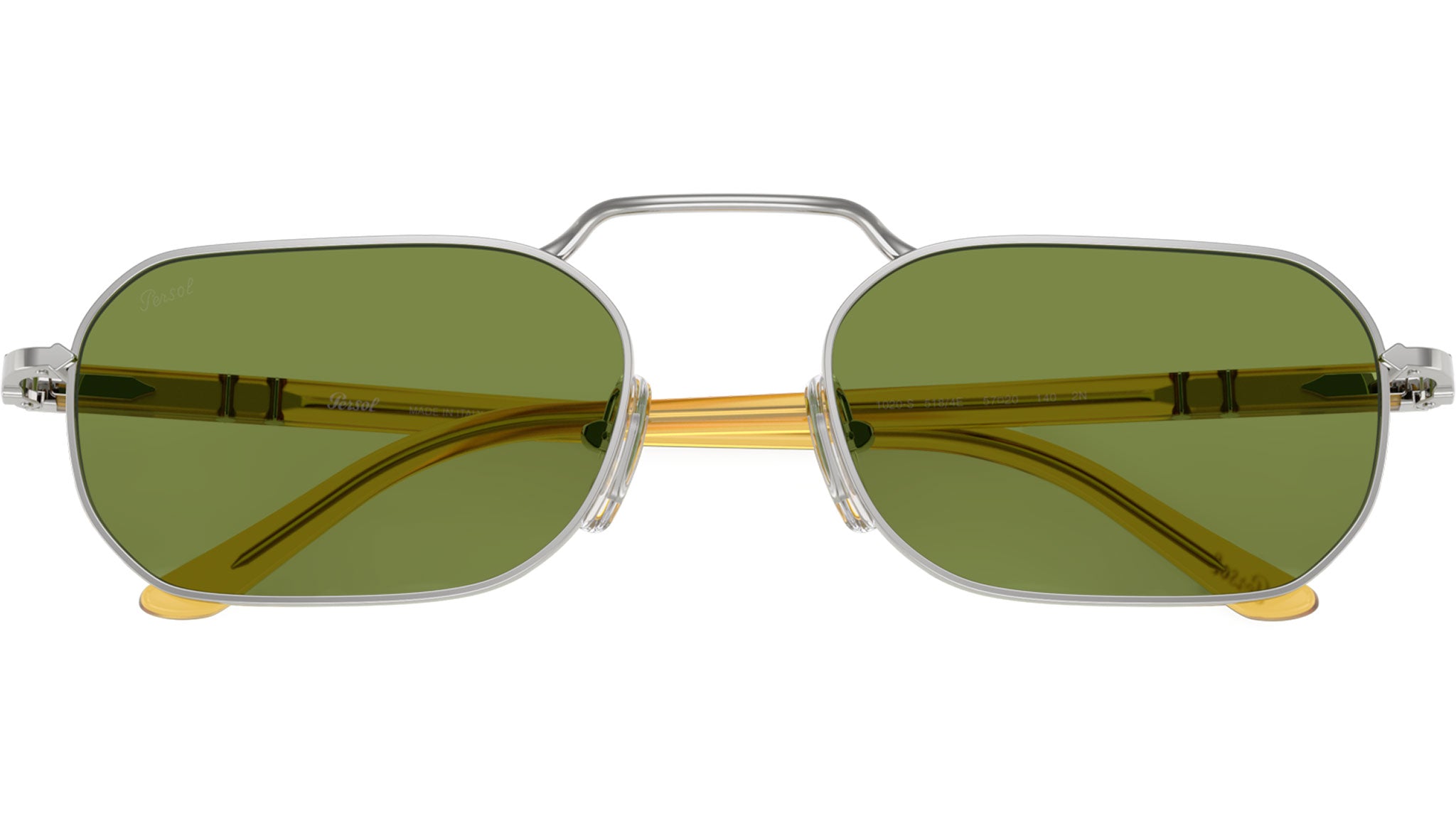 Occhiali da sole Persol unisex modello PO1020S full rim in metallo argento con lenti verde chiaro base 2.5. Naselli regolabili. Linea: Sartoria. Codice brand: 0PO1020S. Codice colore: 518/4E. Rivenditore autorizzato online Persol Eyewear. Ogni prodotto Persol viene consegnato con astuccio originale e accessori ed è coperto da garanzia del produttore di 12 mesi.