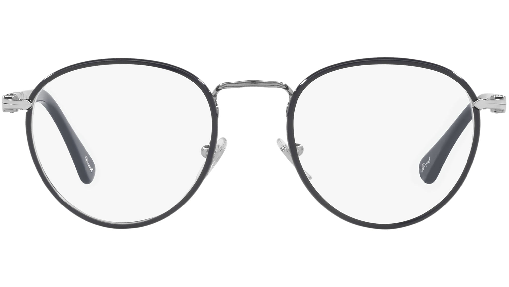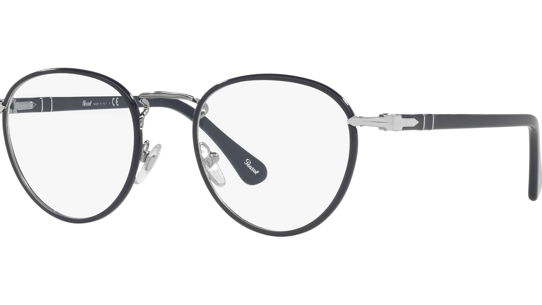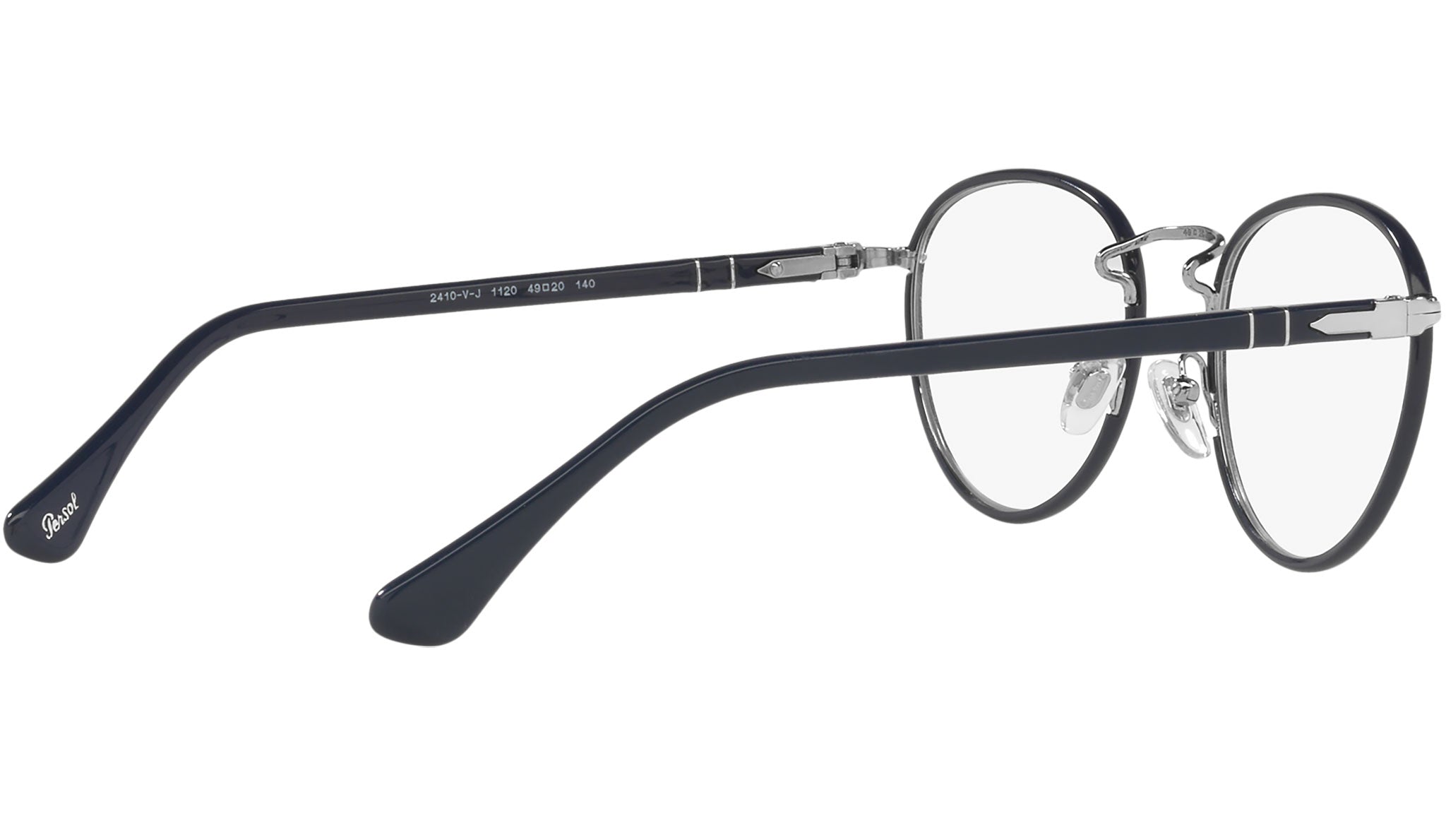 Occhiali da vista Persol modello PO2410VJ codice colore 1120 con montatura full rim in metallo color canna di fucile e blu e lenti demo.