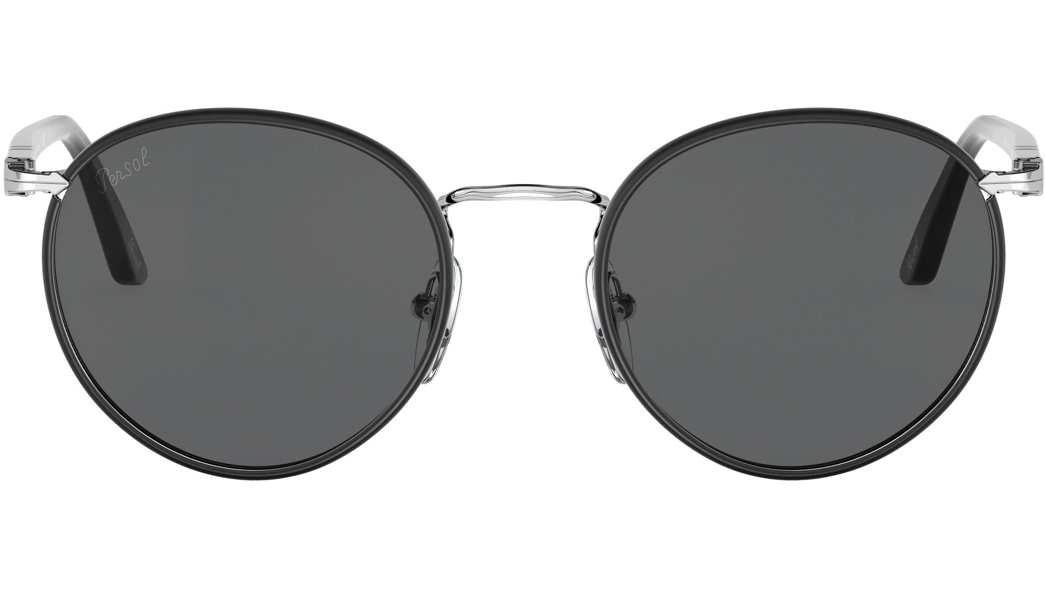 Occhiali da sole Persol modello PO2422SJ codice colore 1119B1 con montatura color nero argento opaco full rim metallo e lenti in vetro color grigio.