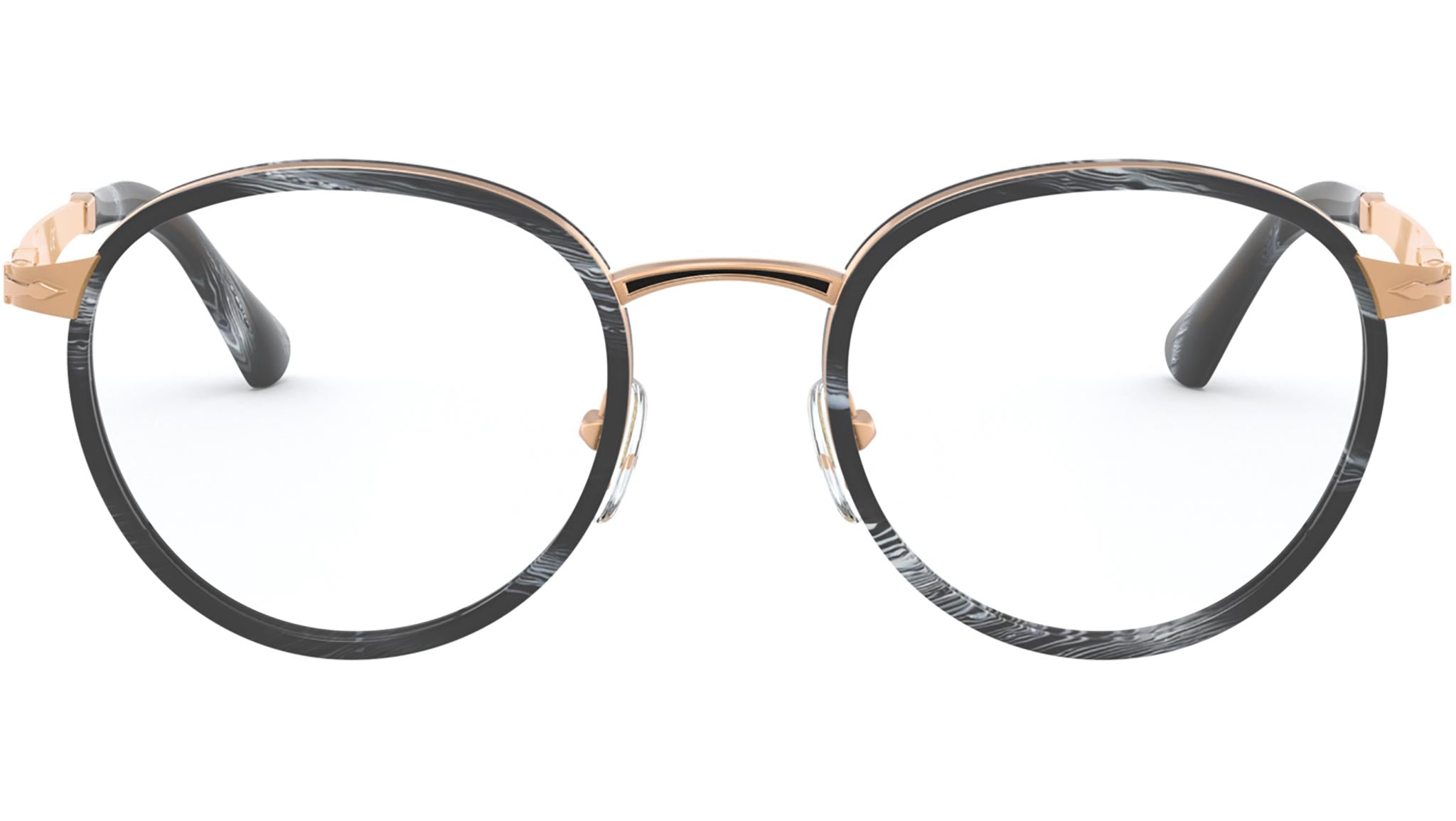 Costruzione in metallo e cerchi in acetato per questa montatura dalla forma phantos impreziosita da dettagli levigati sul ponte, per un effetto full metal meno lucido ma più sofisticato. Il modello è arricchito da cerniere Flex su metallo e terminali in colorazione coordinata con i cerchi.