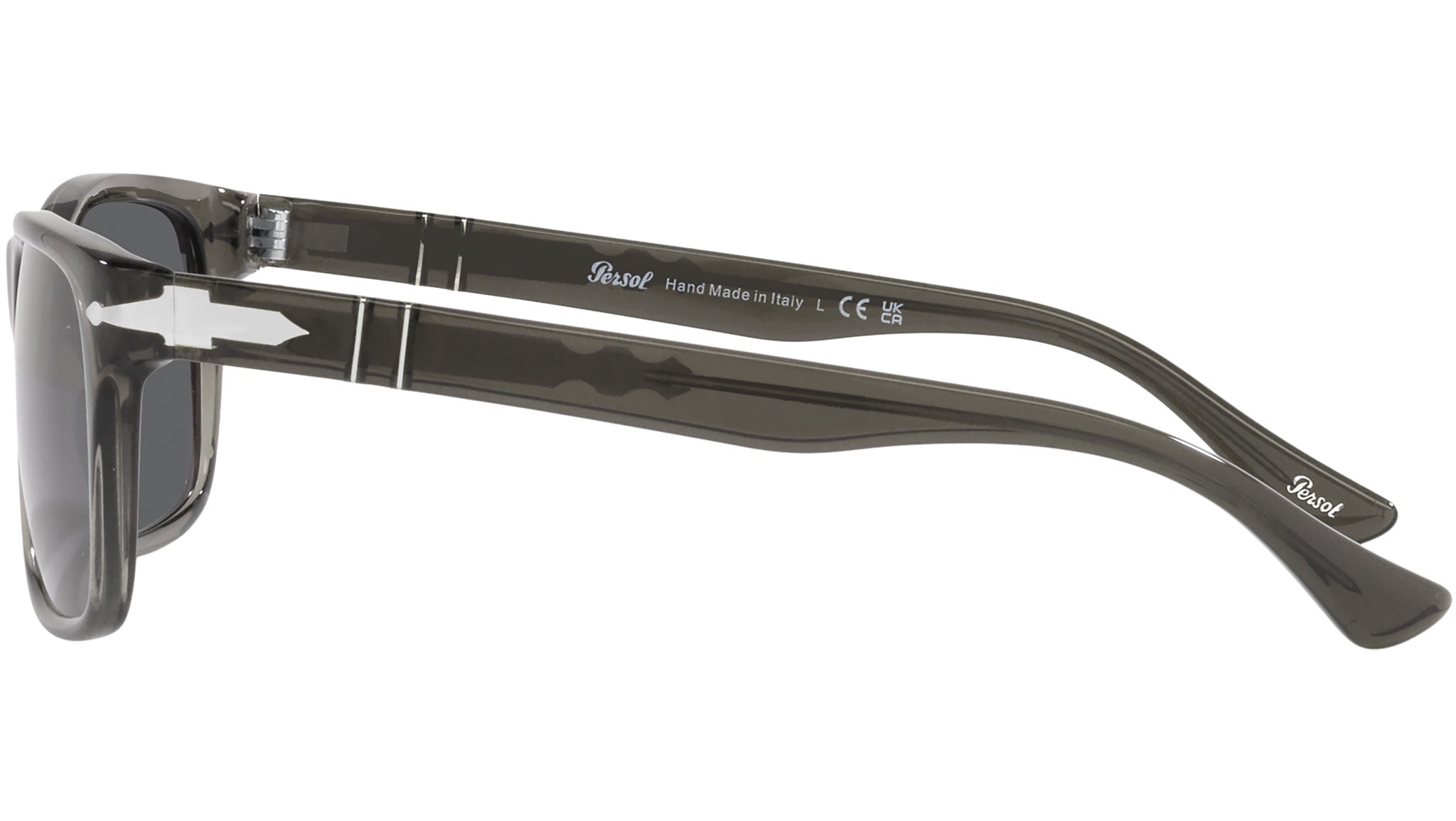 Occhiali da sole Persol PO3048S codice colore 1103B1 grigio trasparente in acetato con lenti color grigio. Persol fonde in modo armonioso estetica e tecnologia. Dedica un'attenzione meticolosa a ogni dettaglio, nel coniugare stile distintivo e soluzioni pratiche. Guidata da una passione incrollabile per il perfezionamento delle abilità artigianali e da una ricerca incessante in innovazione, Persol incarna la vera qualità italiana. Il suo nome evocativo significa 'per il sole', testmonianza viva del ricco patrimonio di maestria superiore ed eccellenza, all'apice della manifattura italiana artigianale. Rinomata per il suo design senza tempo e per la sua arte nel creare occhiali unici, il marchio è diventato una delle scelte più amate nell'ambito del cinema.