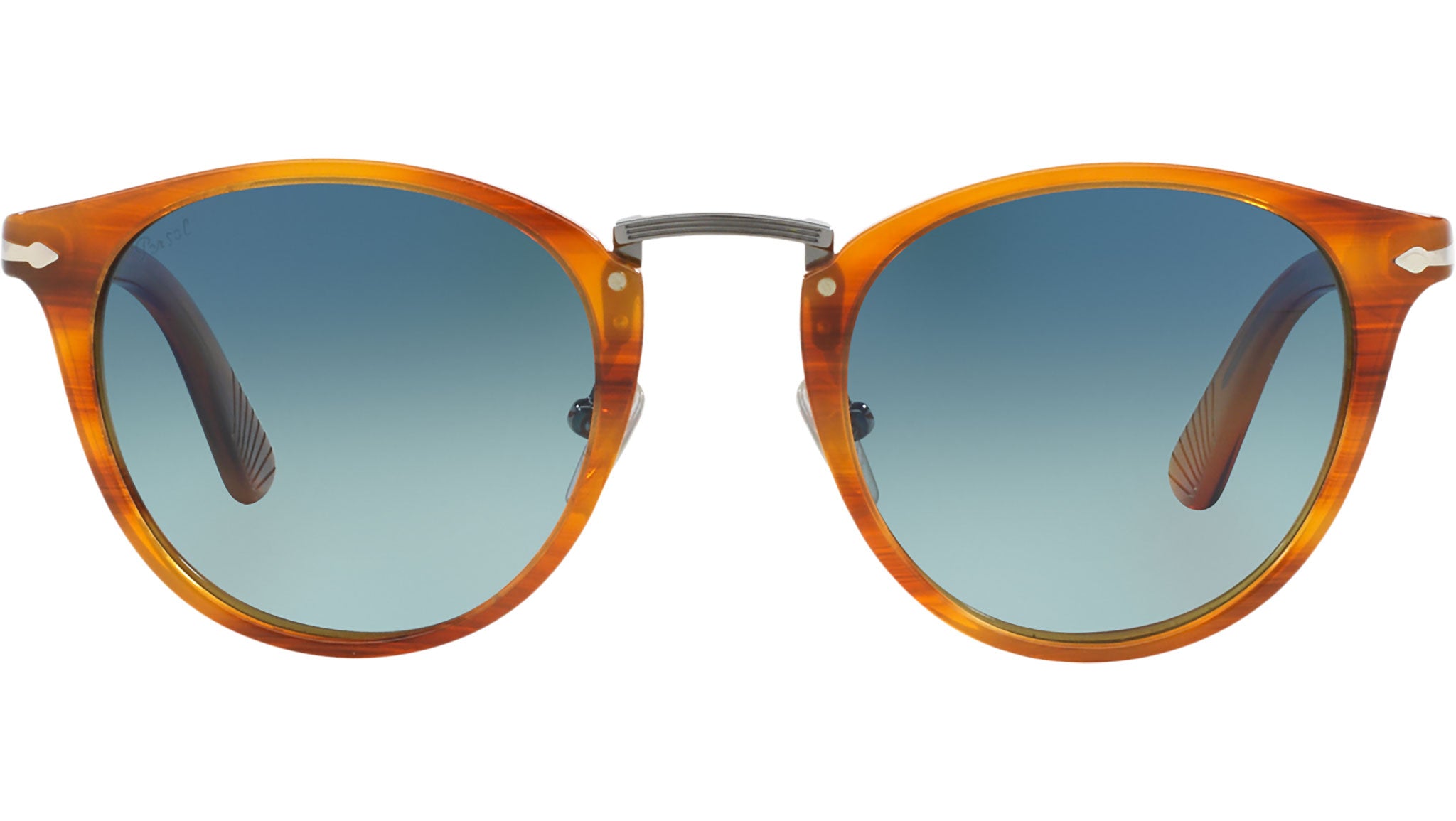 Occhiali da sole Persol modello PO3108S codice colore 960/S3 con montatura color marrone striato full rim acetato e lenti in crystal color blu.