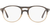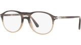 Occhiali da vista Persol modello PO3202V codice colore 1065 con montatura full rim in acetato color grigio strisce sfumato beige e lenti demo.