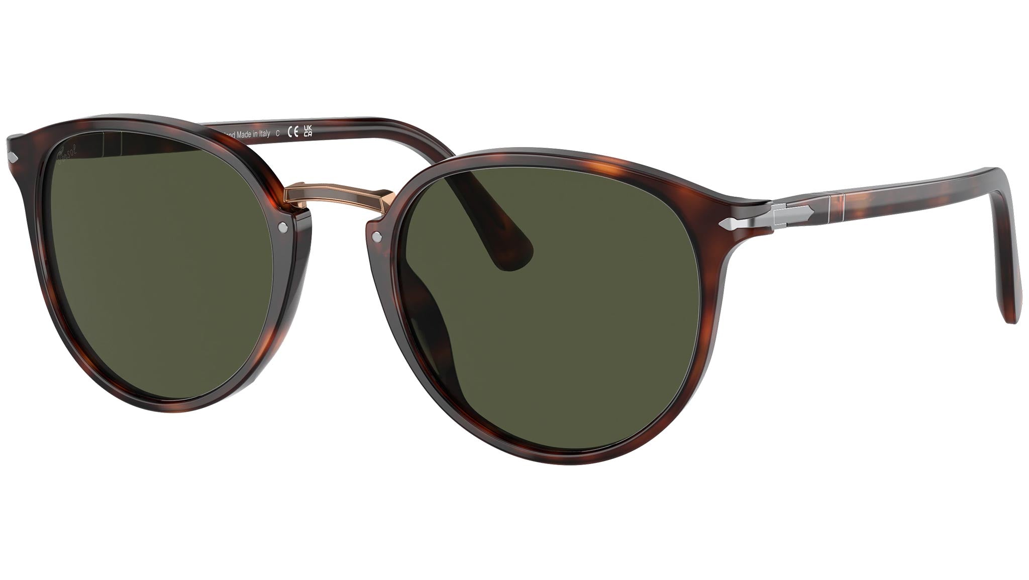 Occhiali da sole Persol modello PO3210S codice colore 24/31 con montatura color avana full rim acetato e lenti in crystal color verde.
