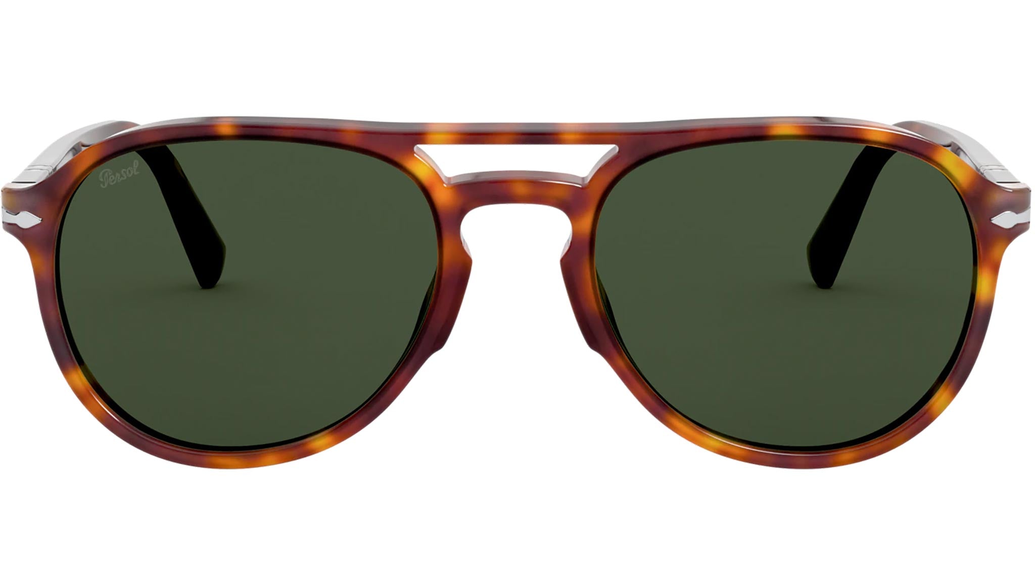 Occhiali da sole Persol modello PO3235S codice colore 24/31 con montatura color avana full rim acetato e lenti in CR-39 color verde.