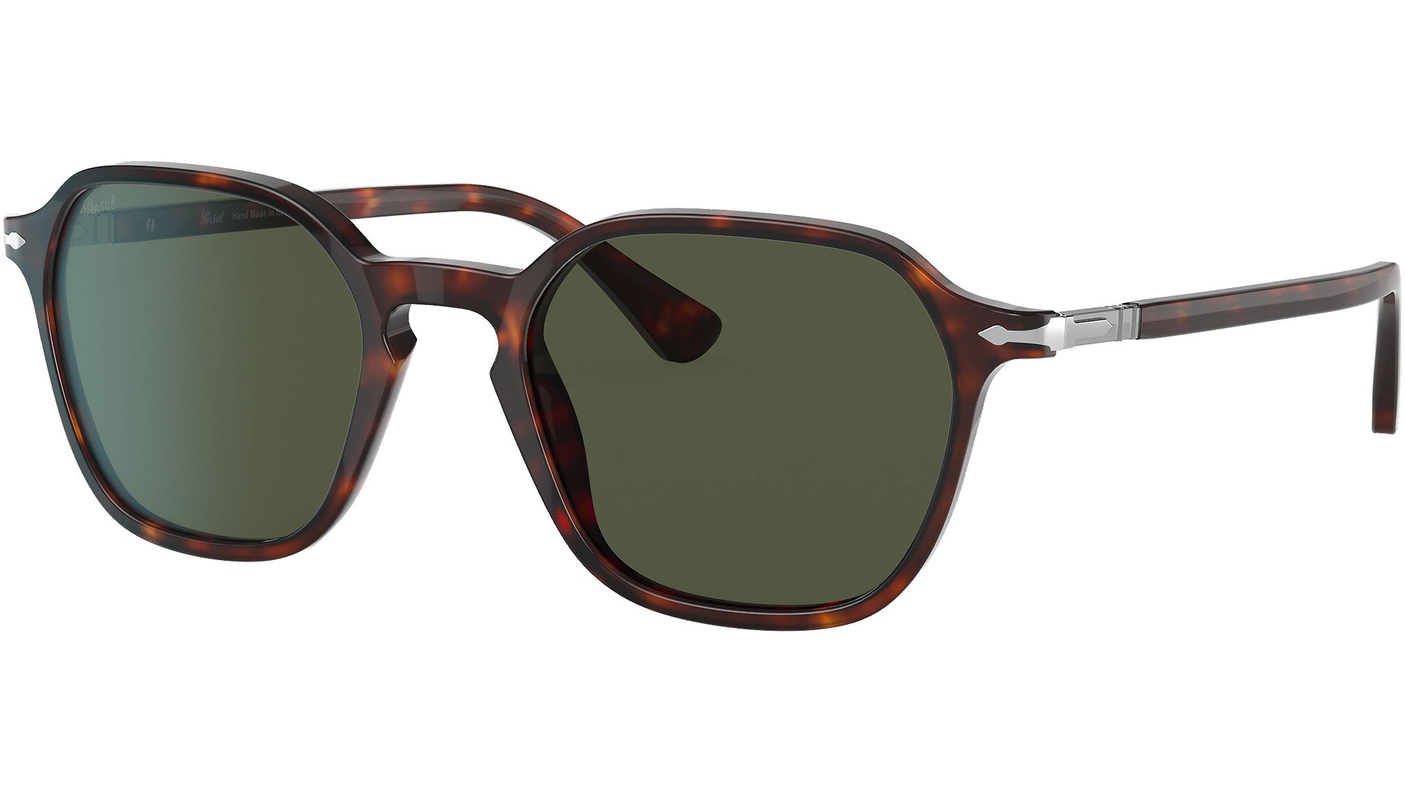 Occhiali da sole Persol modello PO3256S codice colore 24/31 con montatura color avana full rim acetato e lenti in CR-39 color verde.