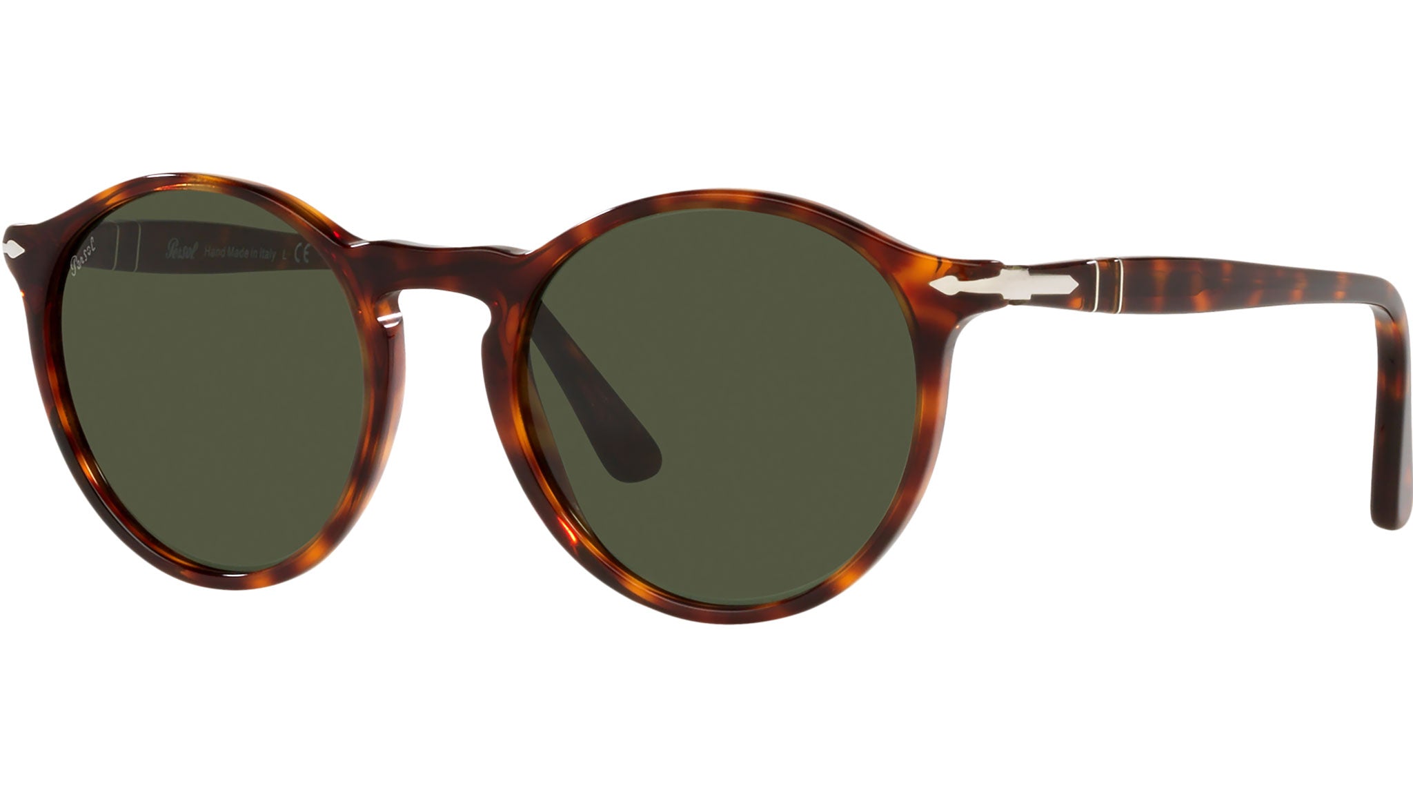 Occhiali da sole Persol modello PO3285S codice colore 24/31 con montatura color avana full rim acetato e lenti in vetro color verde.