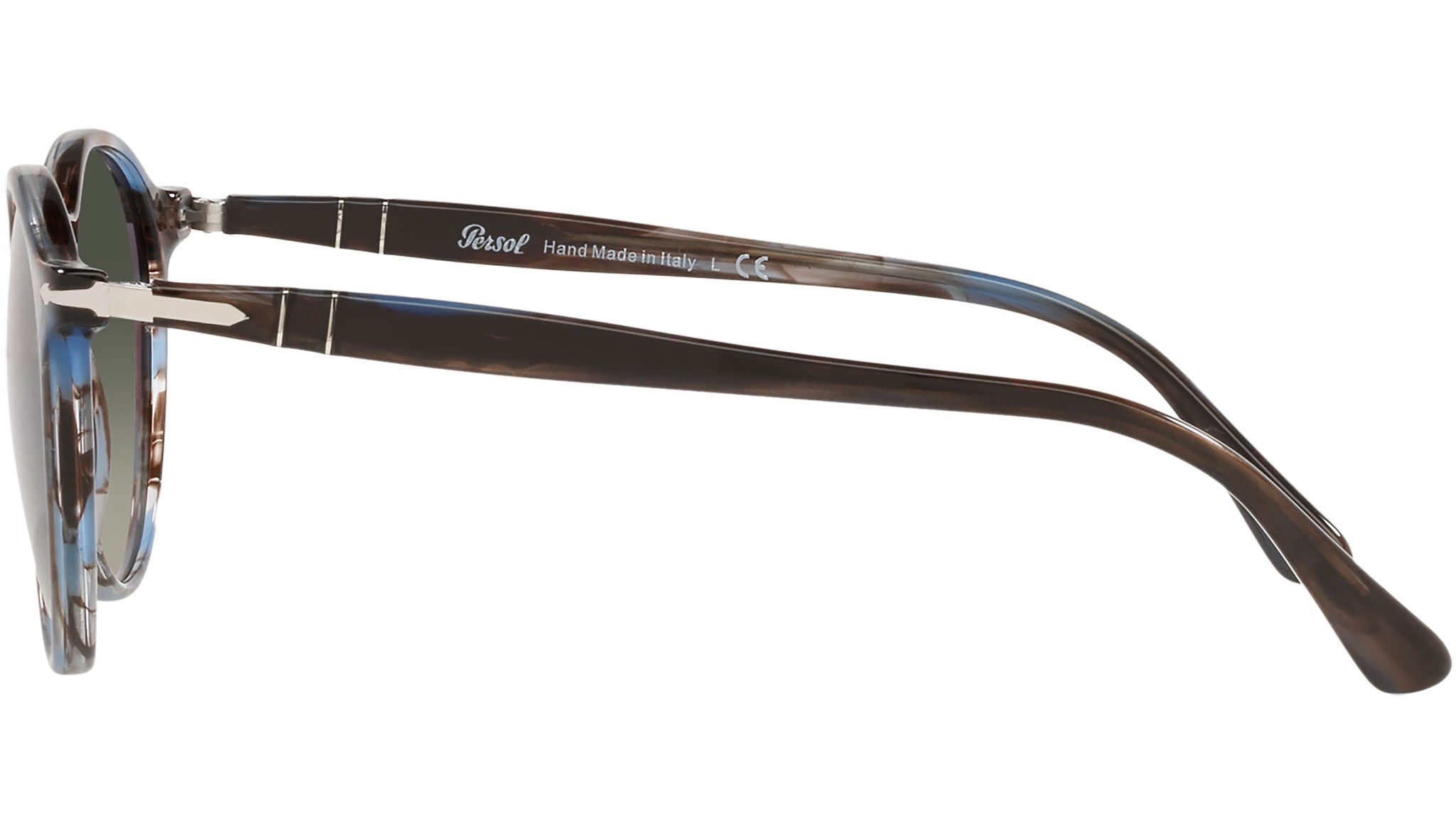 Occhiali da sole Persol modello PO3285S codice colore 115571 con montatura color blu striato full rim acetato e lenti in vetro color grigio.
