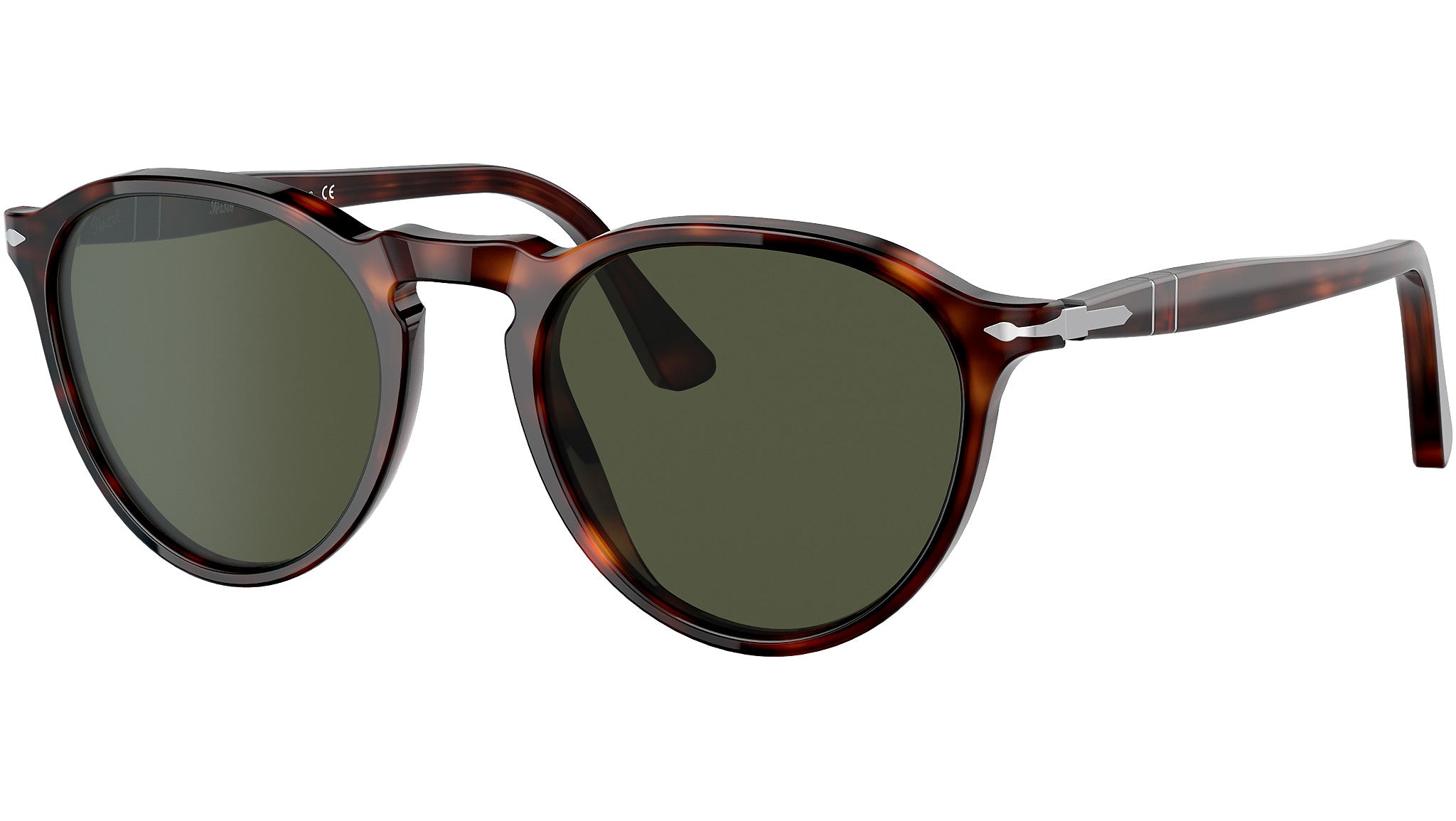 Occhiali da sole Persol modello PO3286S codice colore 24/31 con montatura color avana full rim acetato e lenti in vetro color verde.