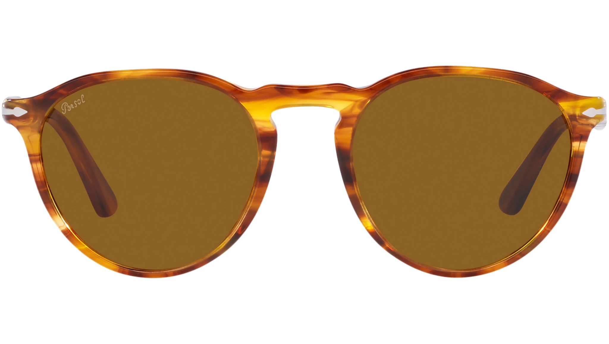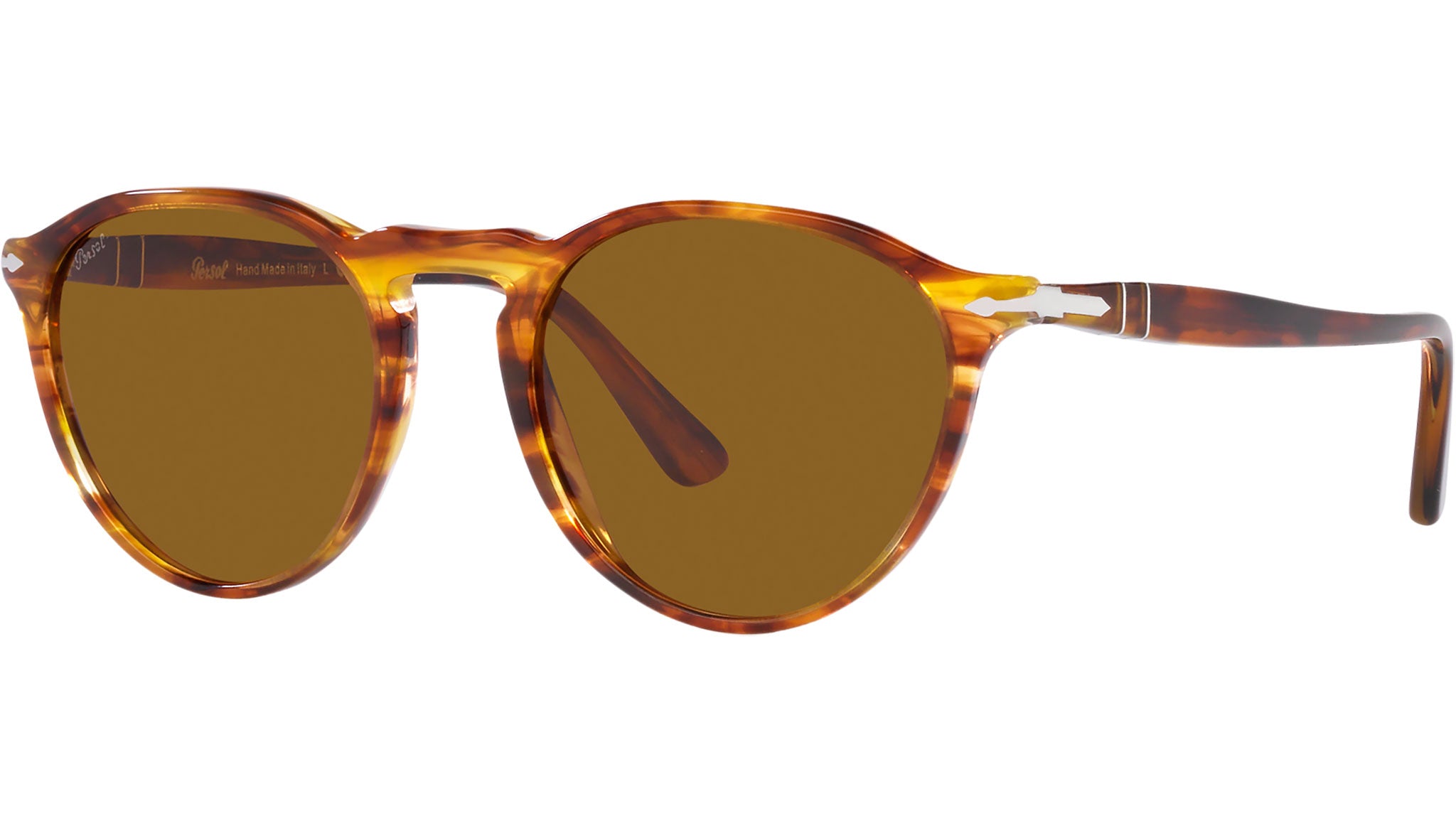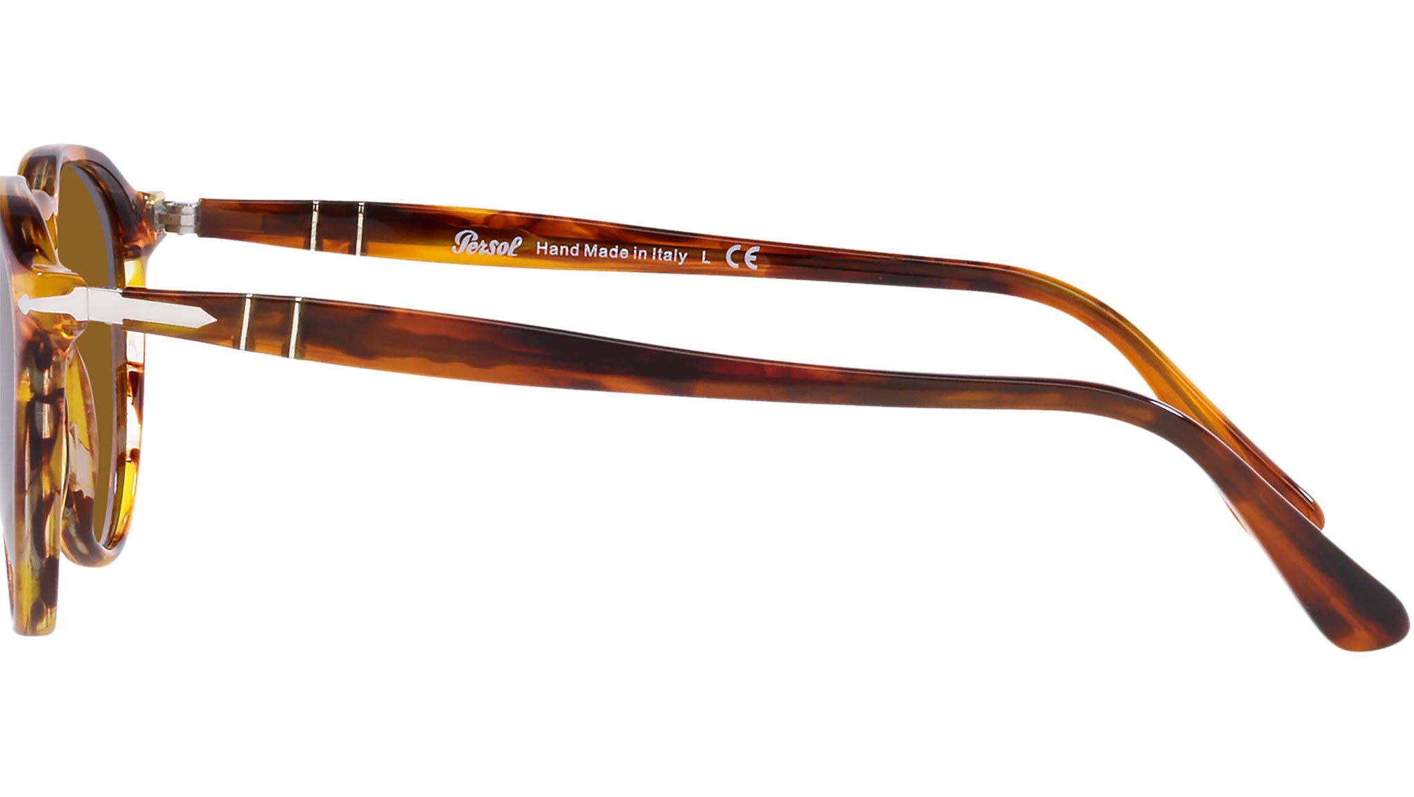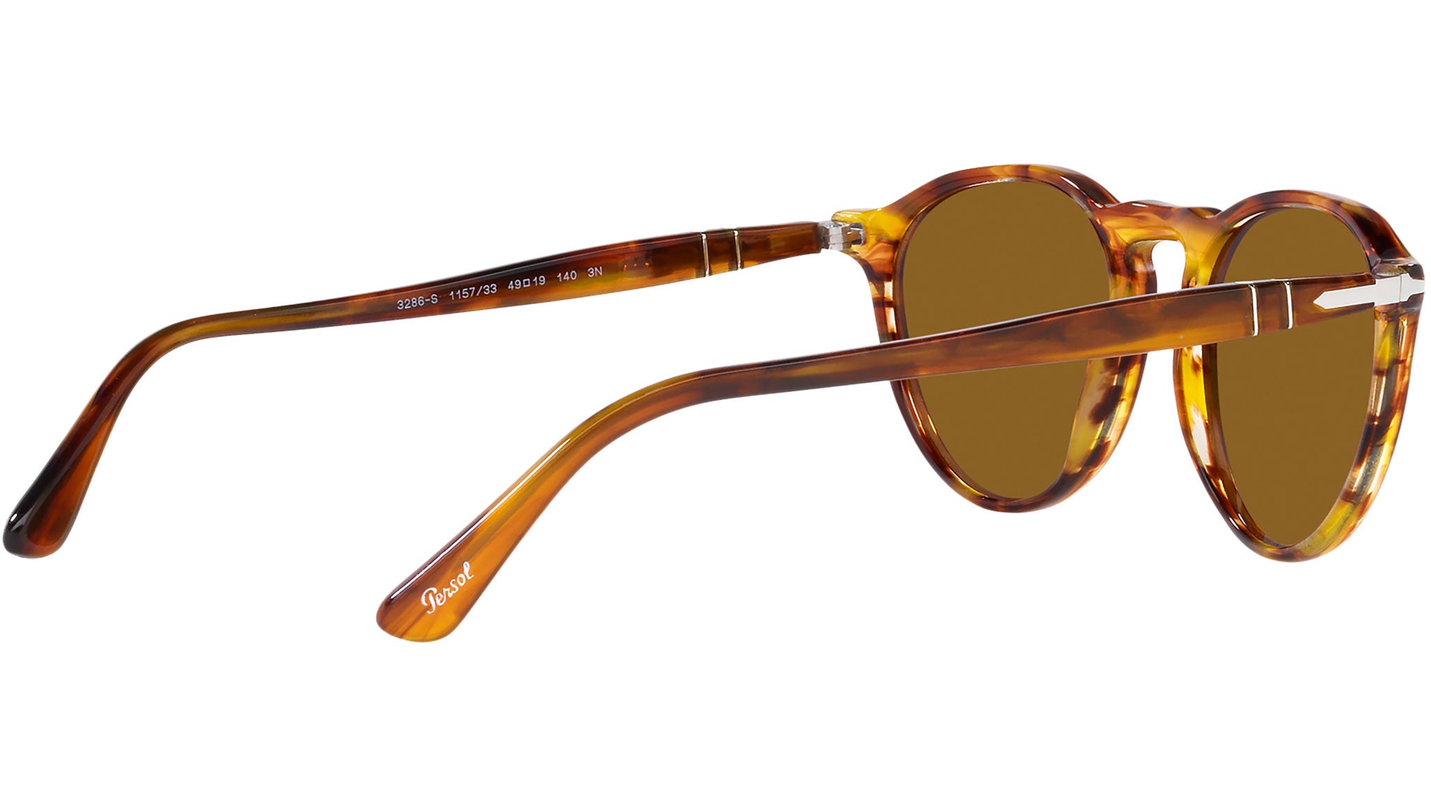 Occhiali da sole Persol modello PO3286S codice colore 115733 con montatura color rosso striato full rim acetato e lenti in vetro color marrone.