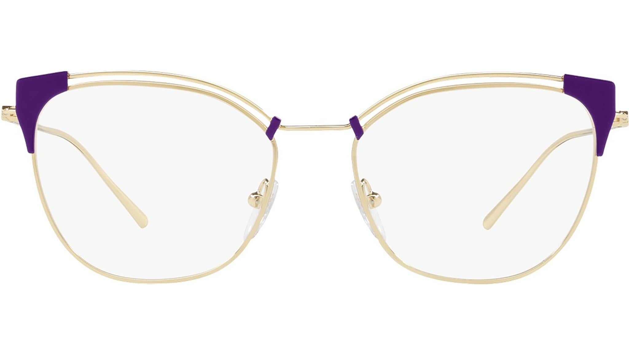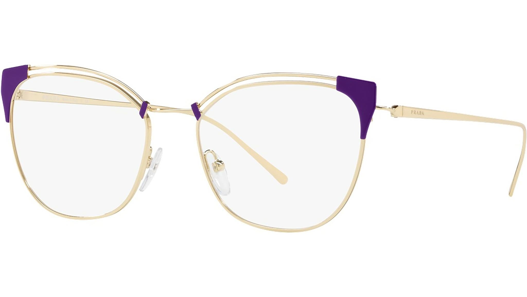 Occhiali da vista Prada modello PR62UV variante colore viola e oro pallido, codice colore YC01O1. Prada rappresenta il vertice della tradizione e della moda Italiana. È uno dei brand più innovativi, prestigiosi e più riconosciuti nel mondo del fashion e degli accessori di lusso, massima espressione della cura per i dettagli, emblema di stile, nella sua raffinata interpretazione dei nuovi trend della moda internazionale.
