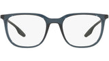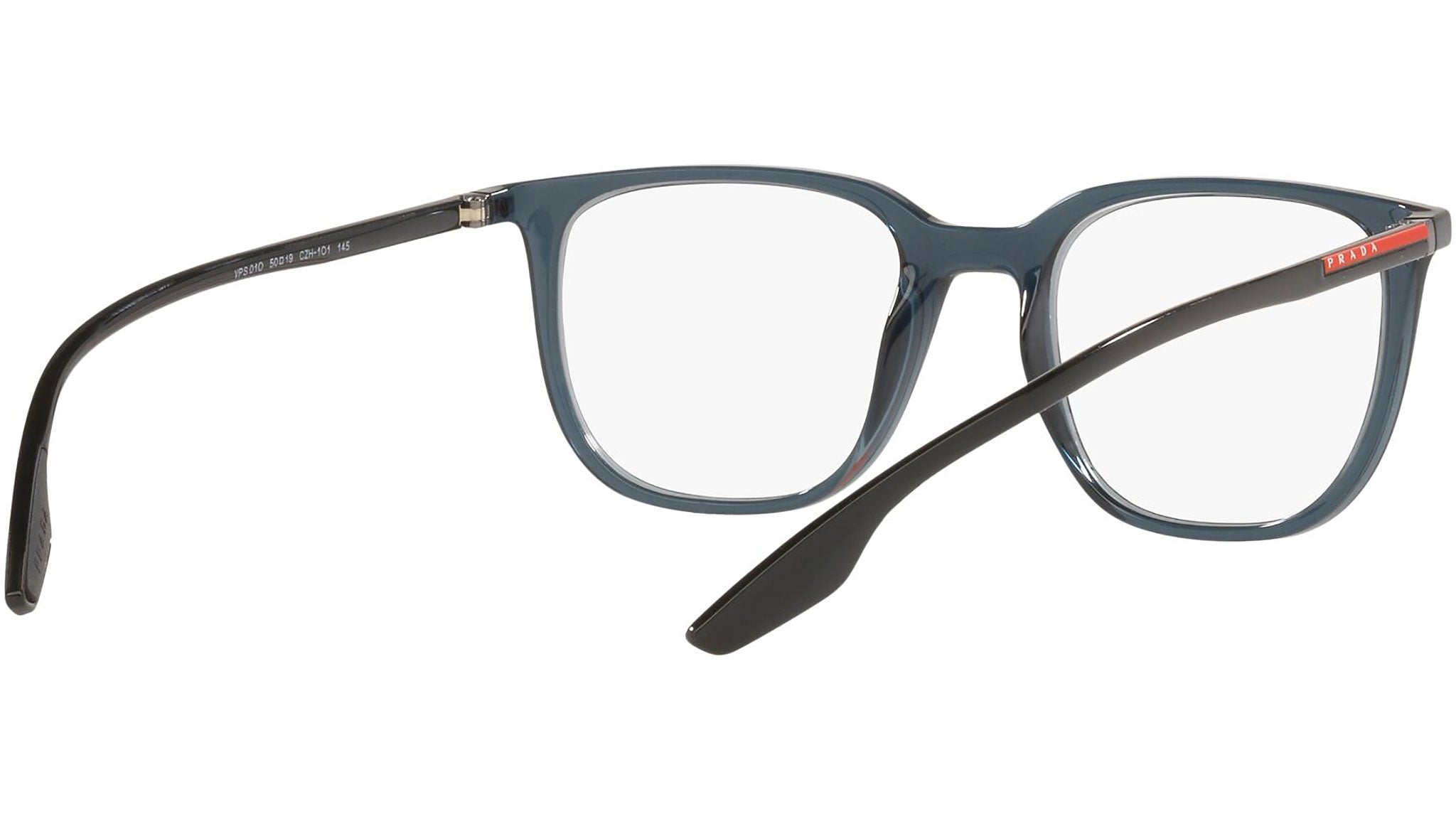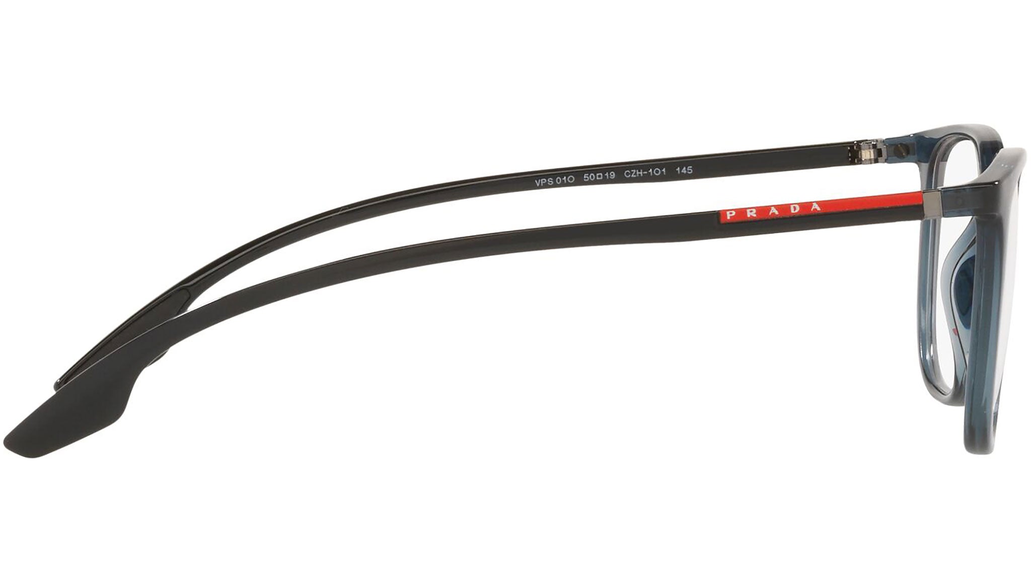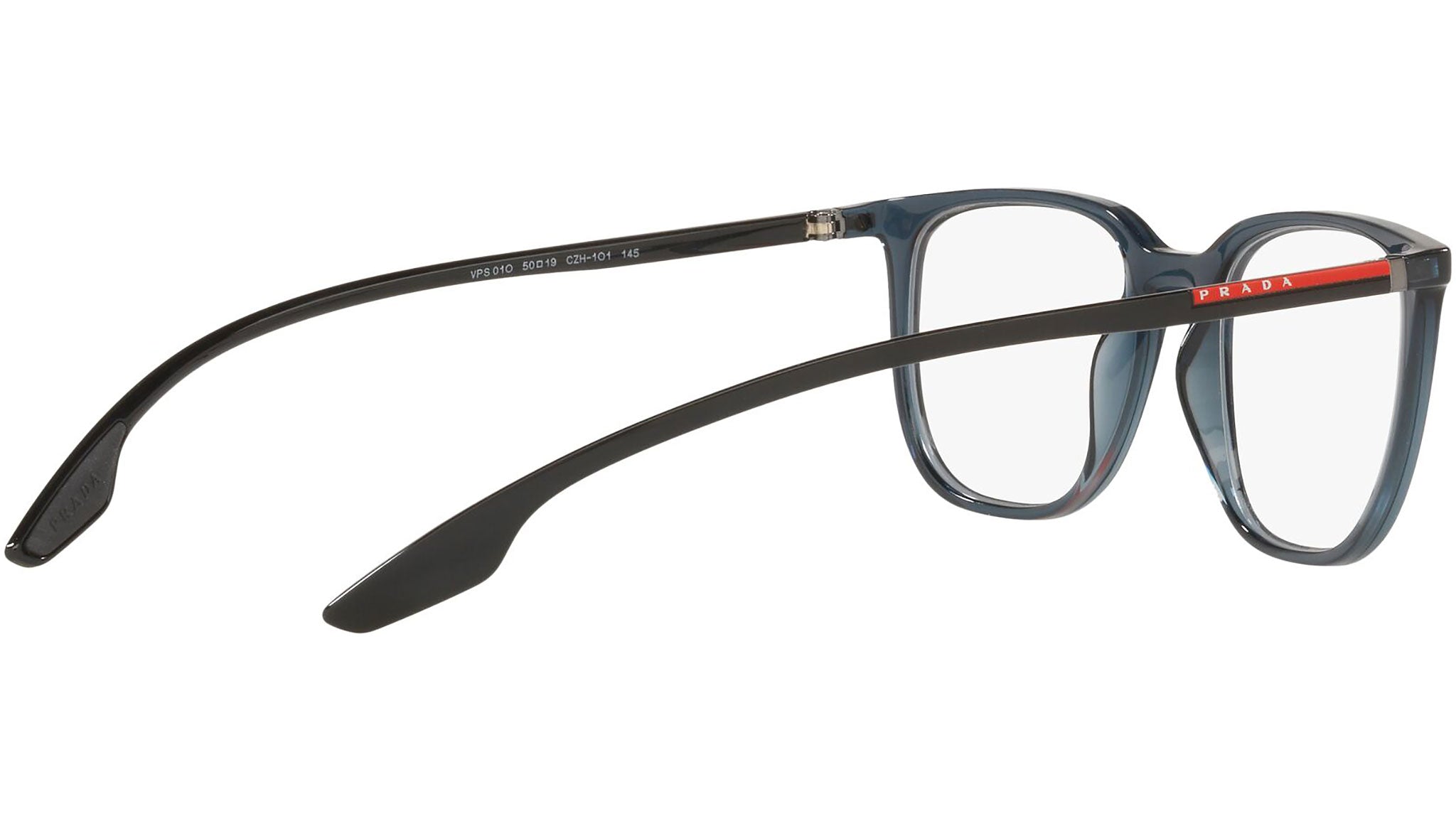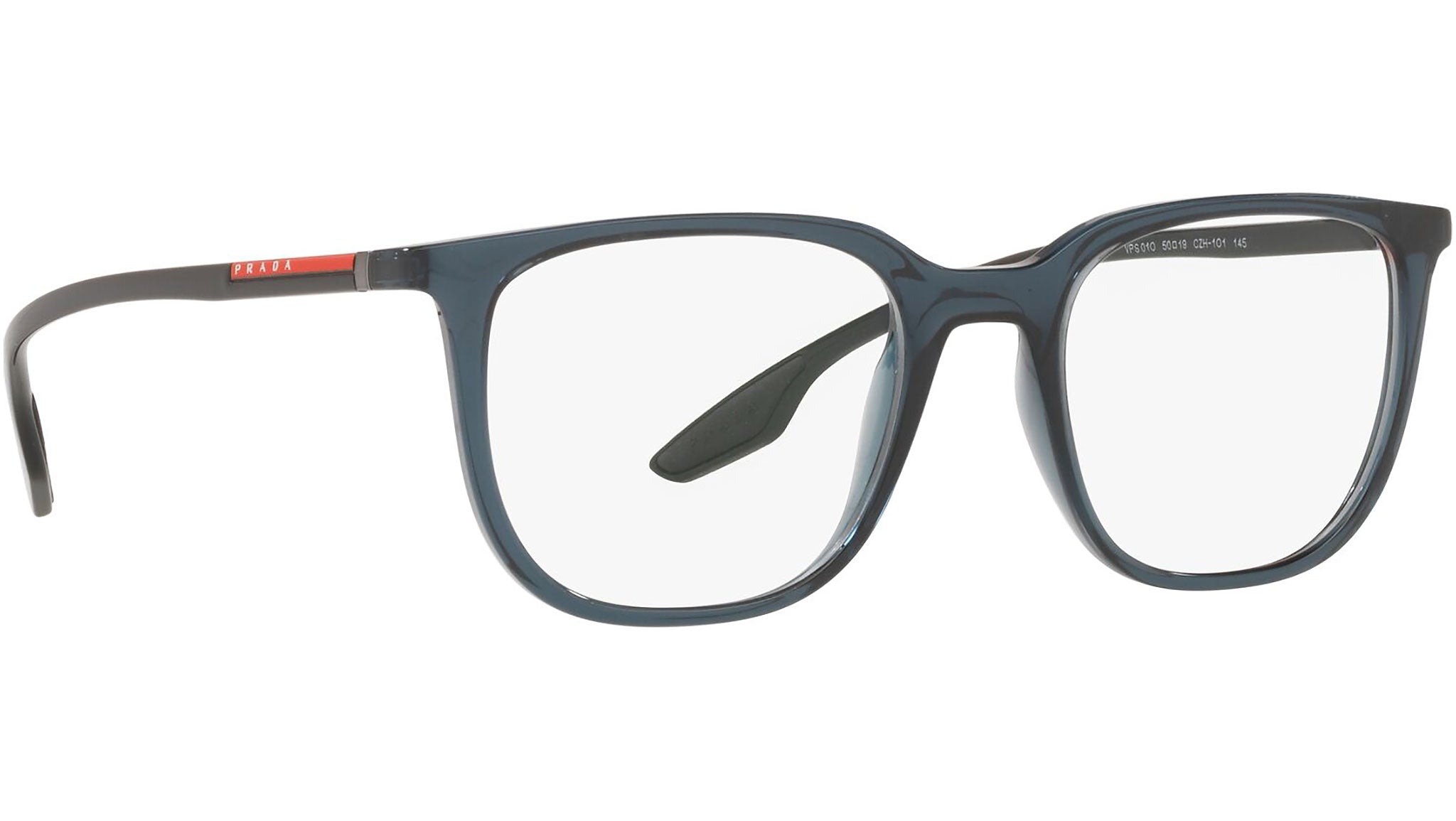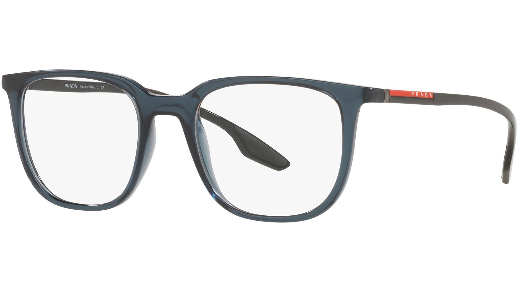 Occhiali da vista Prada Linea Rossa modello PS 01OV variante colore blu trasparente, codice colore CZH1O1. Nuove prospettive, sintesi perfetta di abbigliamento sportivo e eleganza contemporanea: gli occhiali della collezione Prada Linea Rossa esprimono il più perfetto casual style con la migliore qualita arigianale e la cura dei dettagli propri della maison Prada.