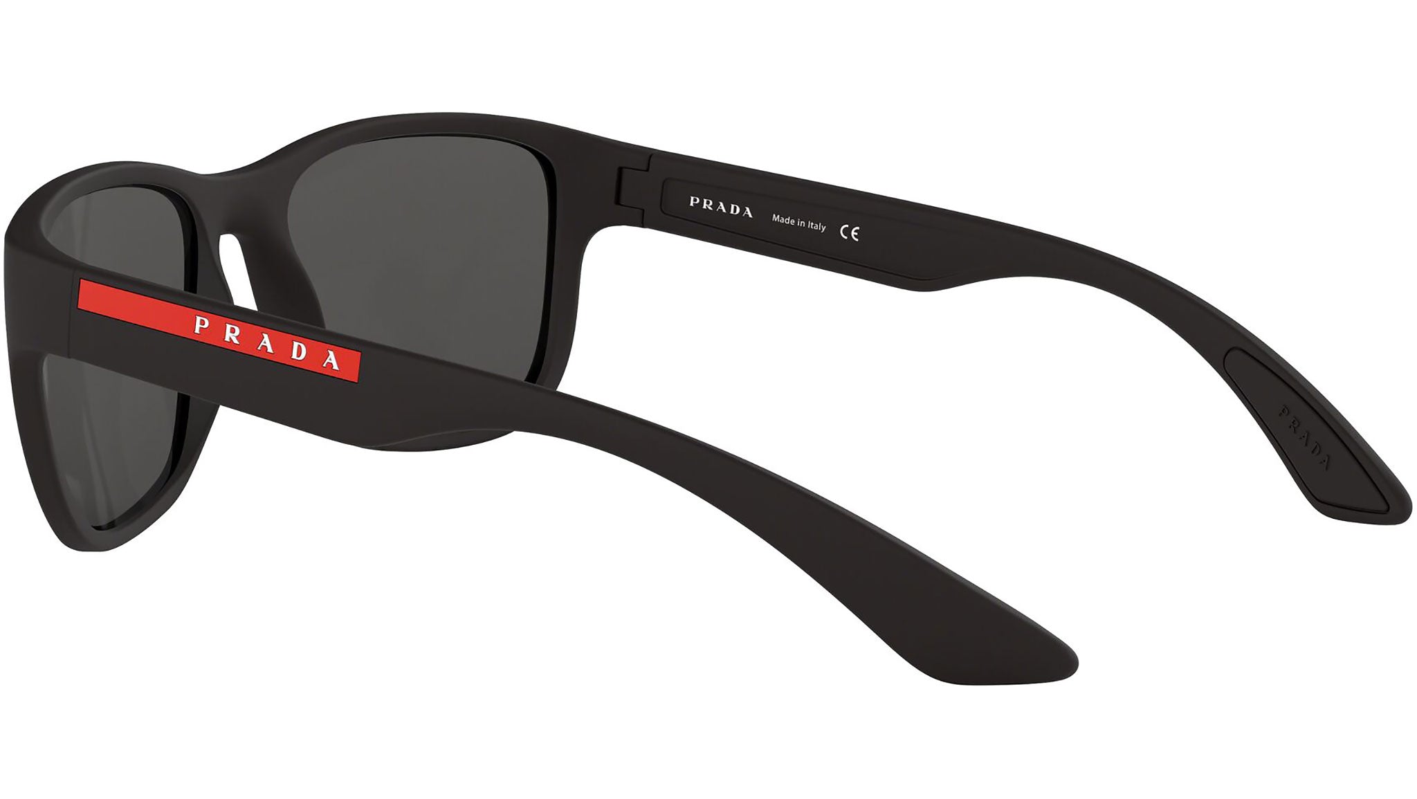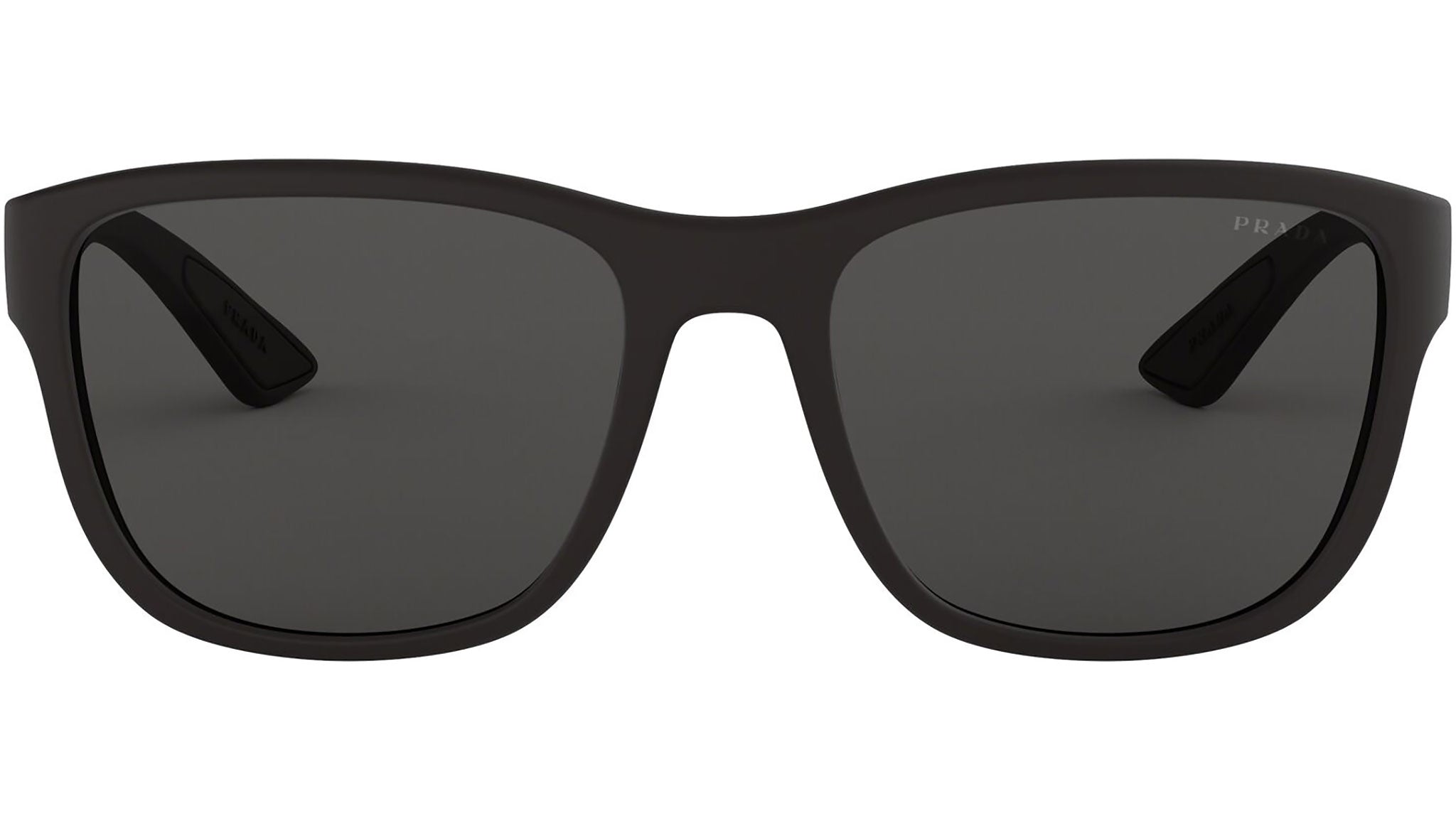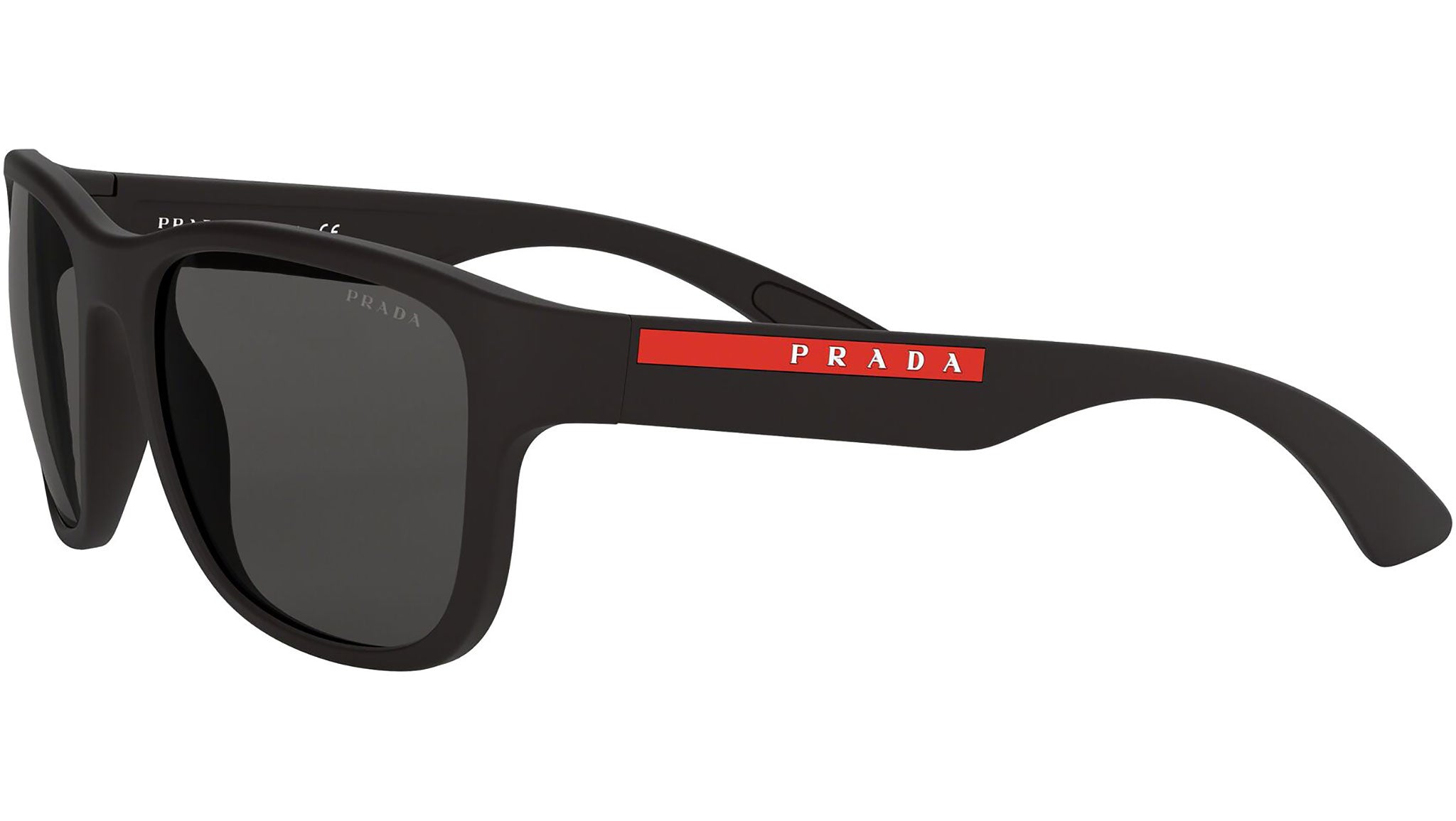 Prada Linea Rossa sunglasses model PS 01US, black rubber frame variant, color code DG05S0 with grey lens. Prada Linea Rossa Sun Collection conveys an everyday casual style with all the quality and craftsmanship of the Prada brand.
