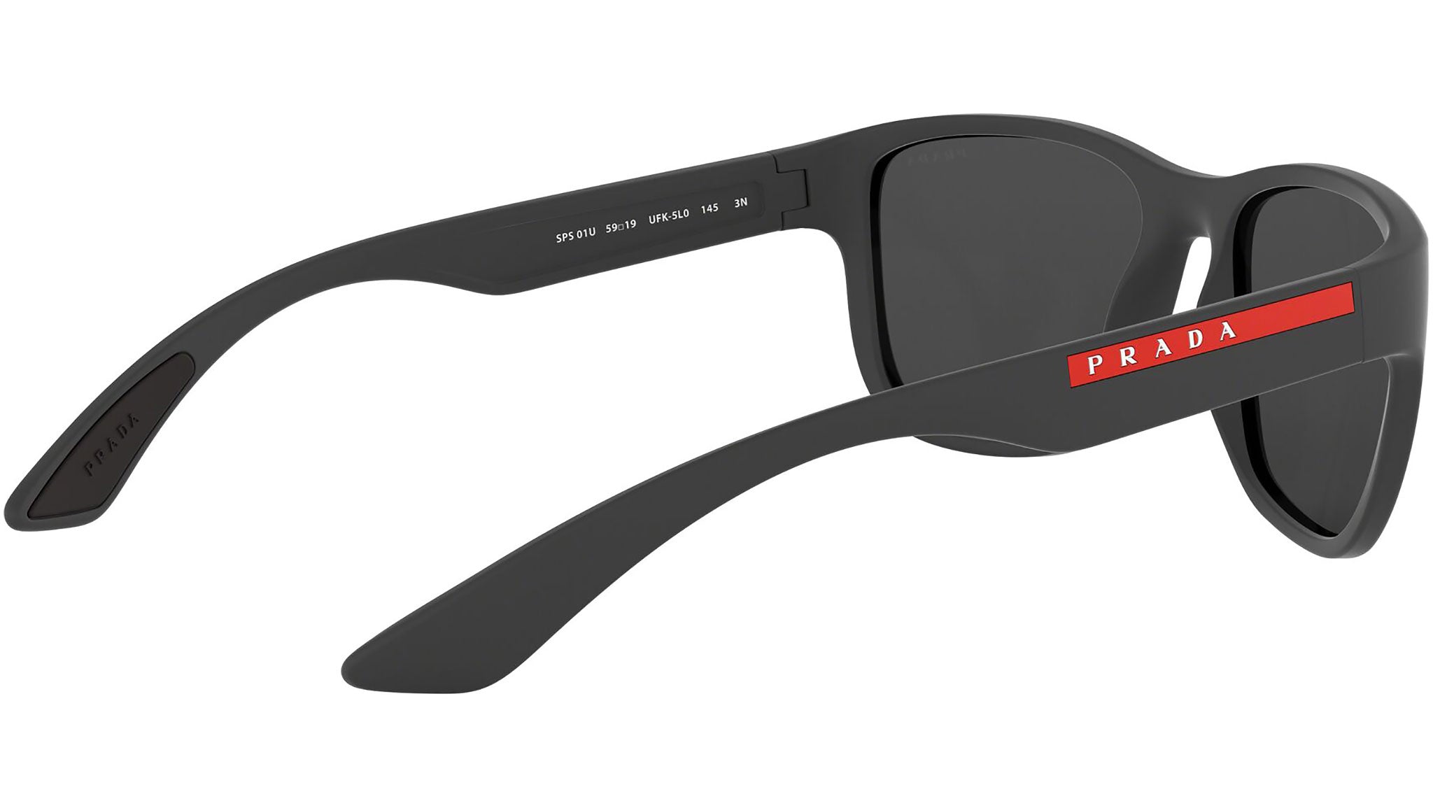 Prada Linea Rossa sunglasses model PS 01US, grey rubber frame variant, color code UFK5L0 with grey mirror black lens. Prada Linea Rossa Sun Collection conveys an everyday casual style with all the quality and craftsmanship of the Prada brand.
