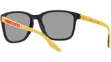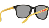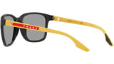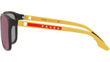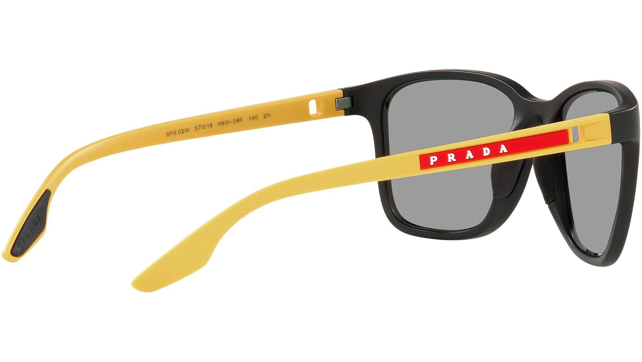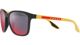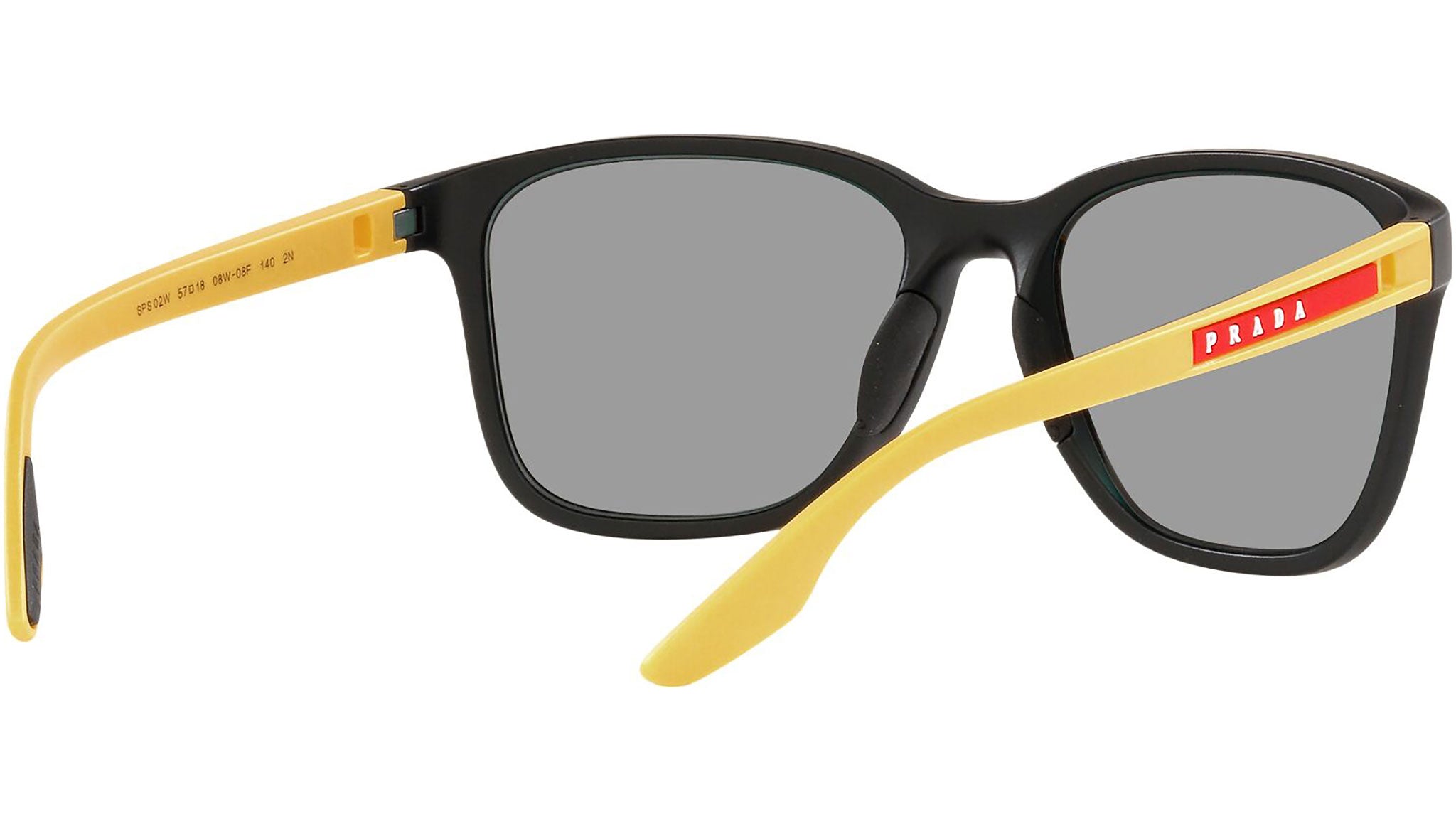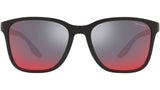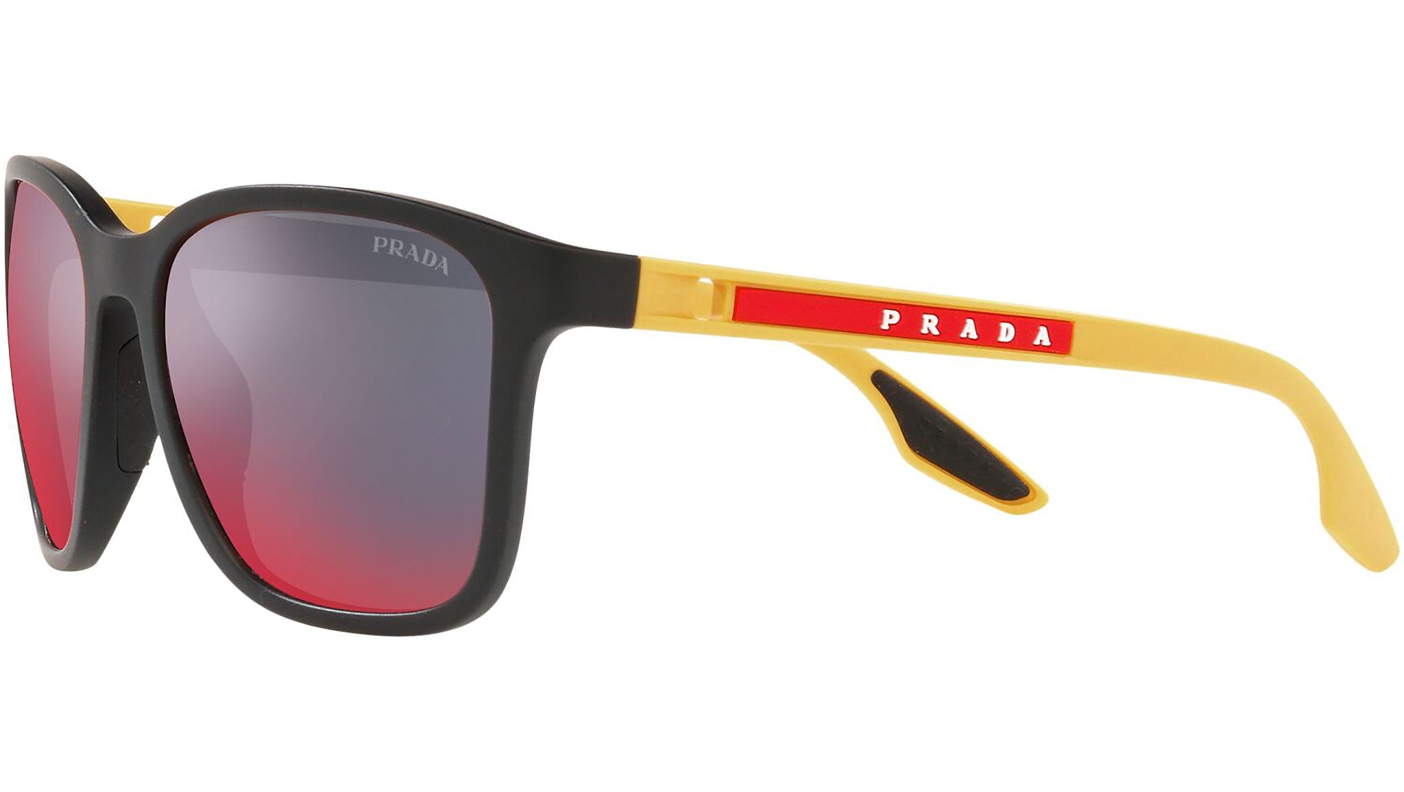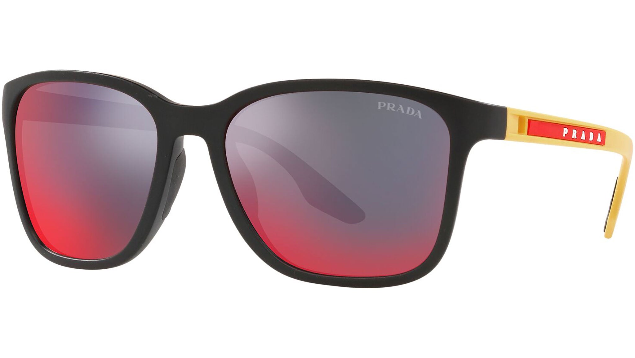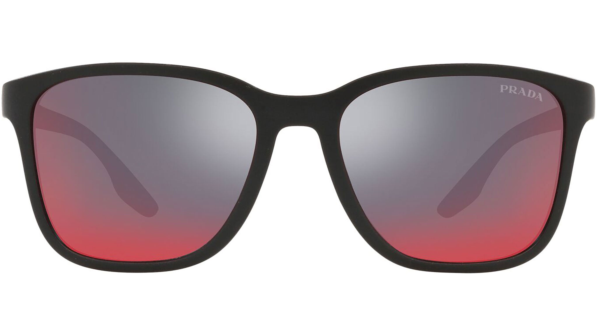 Occhiali da sole Prada Linea Rossa modello PS 02WS nella variante colore 08W08F nero gomma con lenti color grigio scuro a specchio blu / rosso. Una perfetta fusione dei concetti di sportswear ed eleganza contemporanea: la linea di occhiali da sole Prada Linea Rossa declina in un moderno stile casual tutta la qualità e la raffinatezza artigianale della maison Prada.