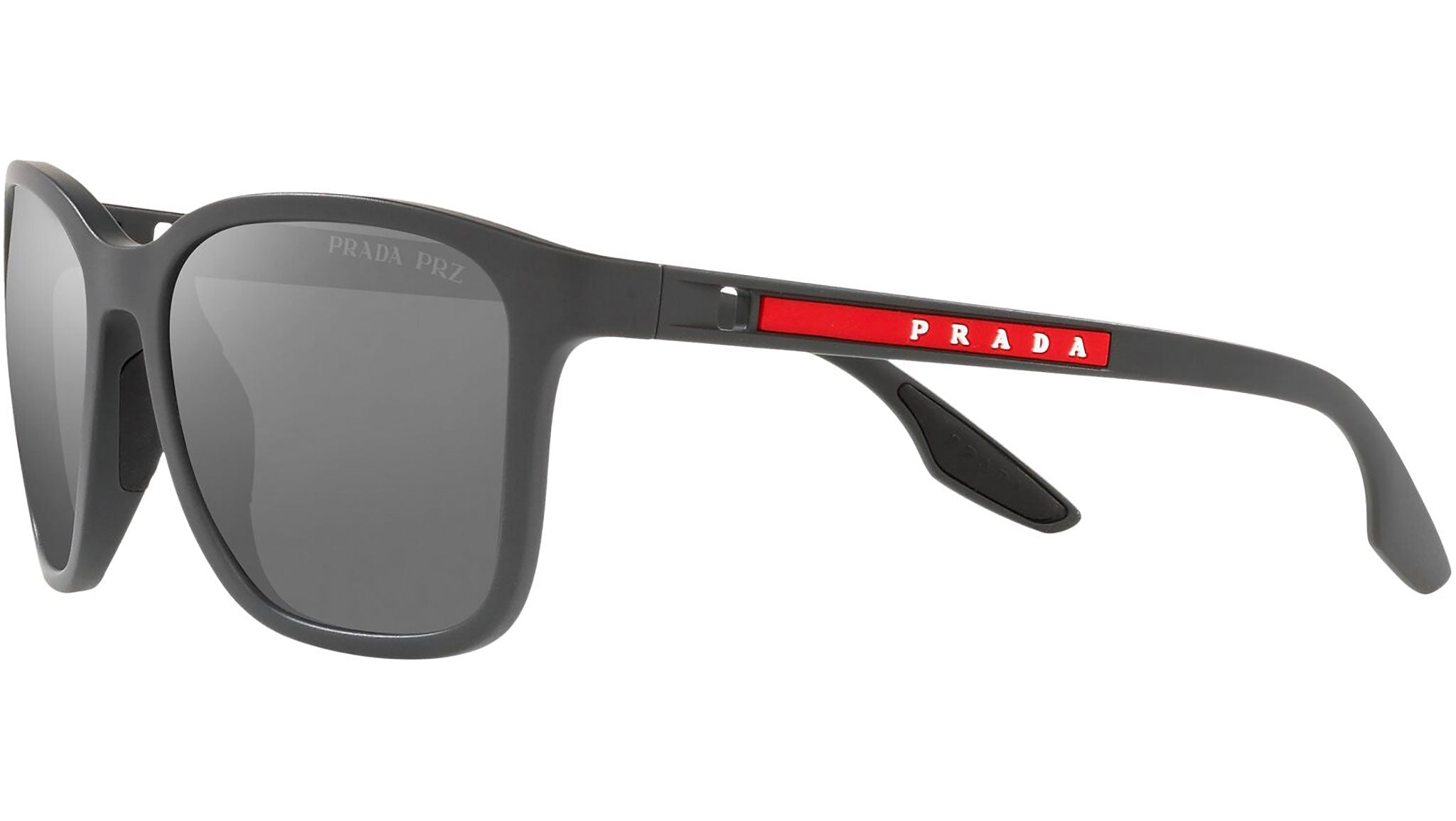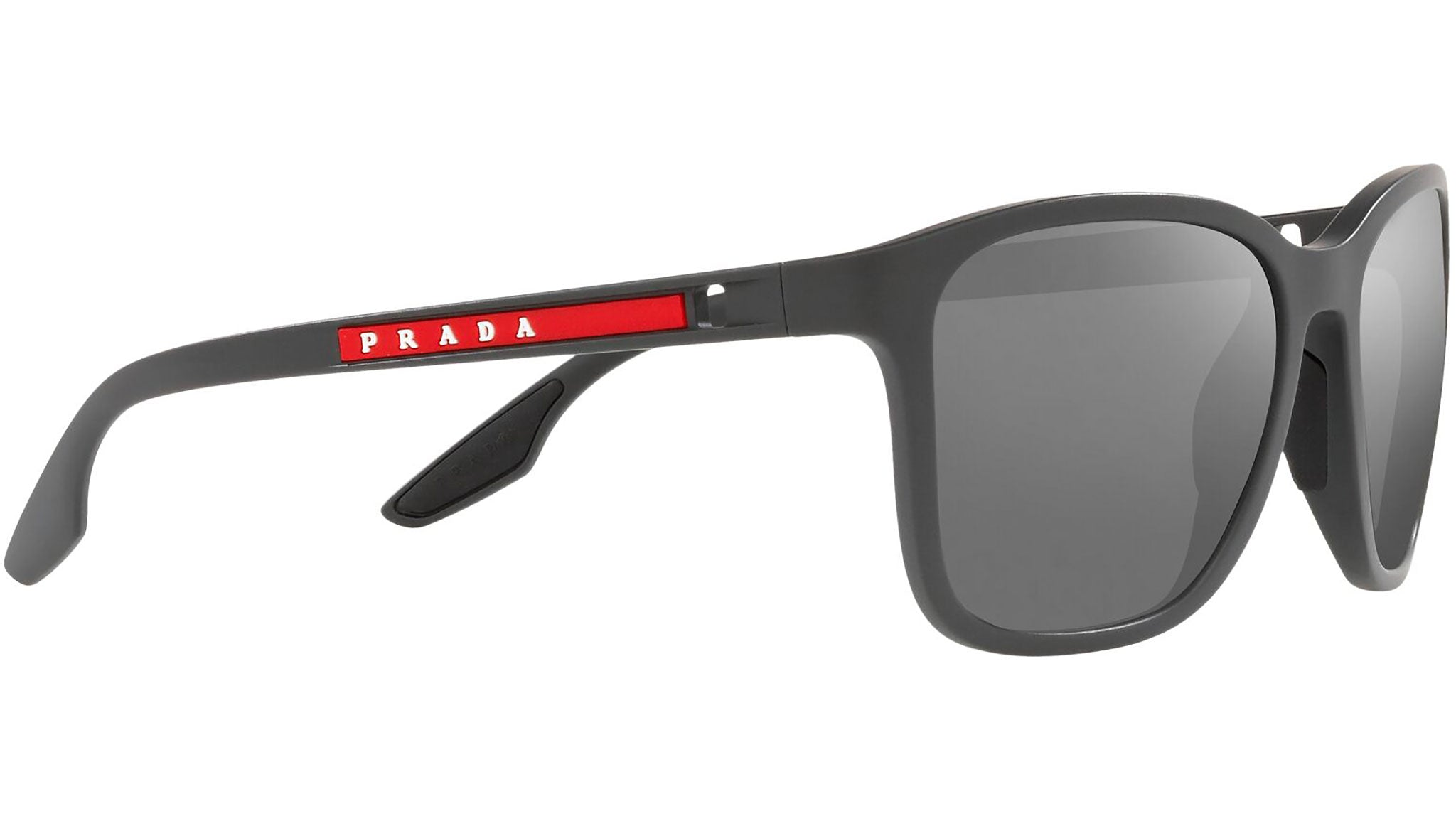 Occhiali da sole Prada Linea Rossa modello PS 02WS nella variante colore UFK07H grigio gomma con lenti color grigio scuro a specchio argento. Una perfetta fusione dei concetti di sportswear ed eleganza contemporanea: la linea di occhiali da sole Prada Linea Rossa declina in un moderno stile casual tutta la qualità e la raffinatezza artigianale della maison Prada.
