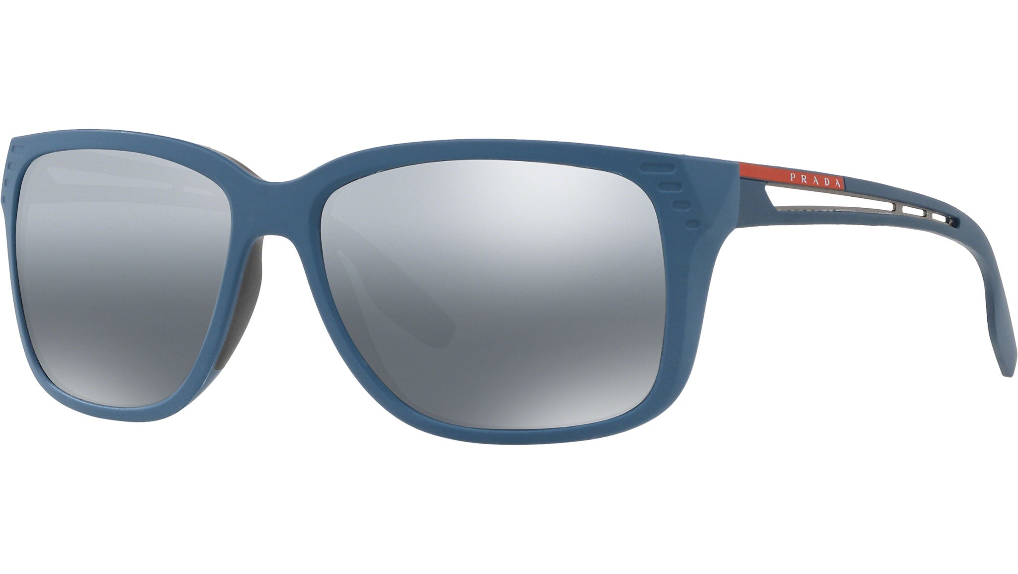Occhiali da sole Prada Linea Rossa modello PS03TS nella variante colore B522F2 blu opaco con lenti color grigio sfumato argento a specchio. Una perfetta fusione dei concetti di sportswear ed eleganza contemporanea: la linea di occhiali da sole Prada Linea Rossa declina in un moderno stile casual tutta la qualità e la raffinatezza artigianale della maison Prada.