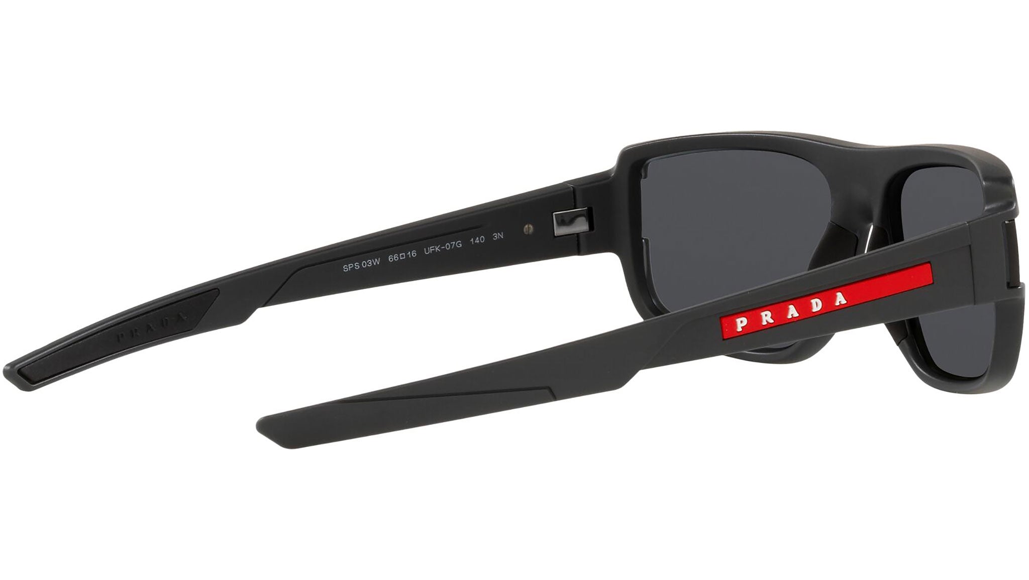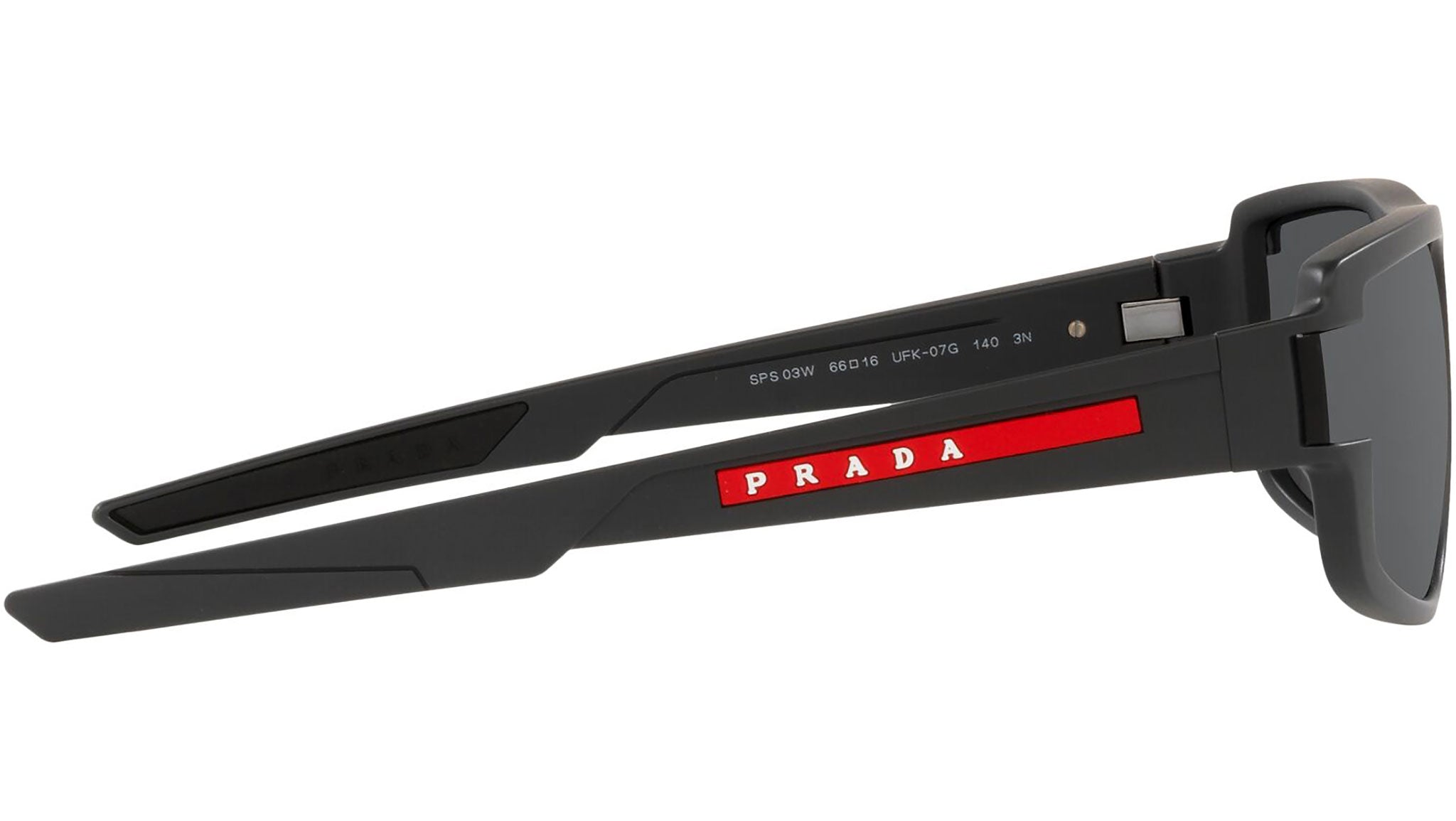 Occhiali da sole Prada Linea Rossa modello PS 03WS nella variante colore UFK07G grigio gomma con lenti color grigio a specchio nero. Una perfetta fusione dei concetti di sportswear ed eleganza contemporanea: la linea di occhiali da sole Prada Linea Rossa declina in un moderno stile casual tutta la qualità e la raffinatezza artigianale della maison Prada.