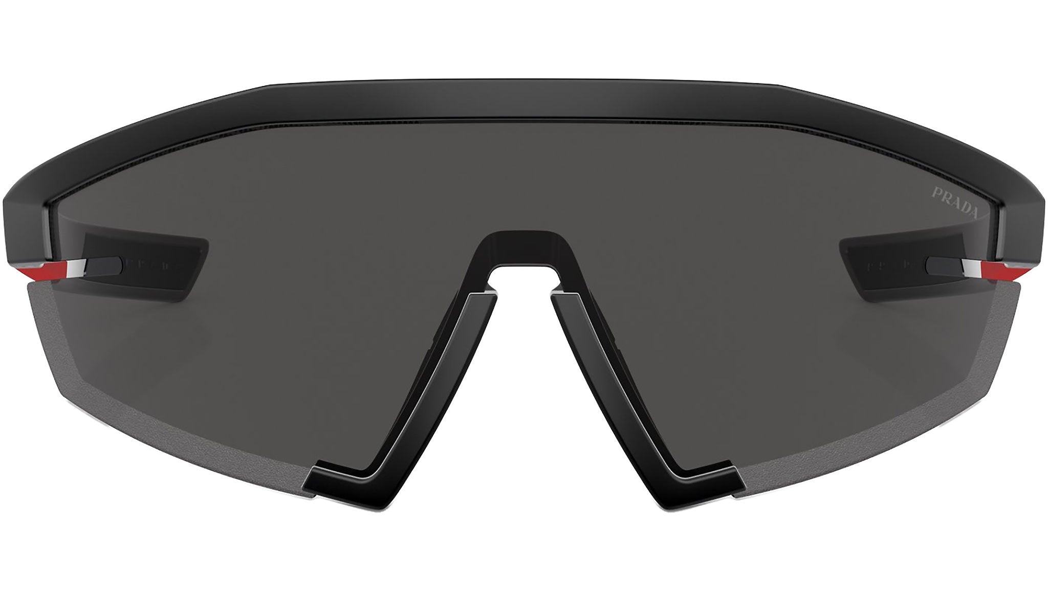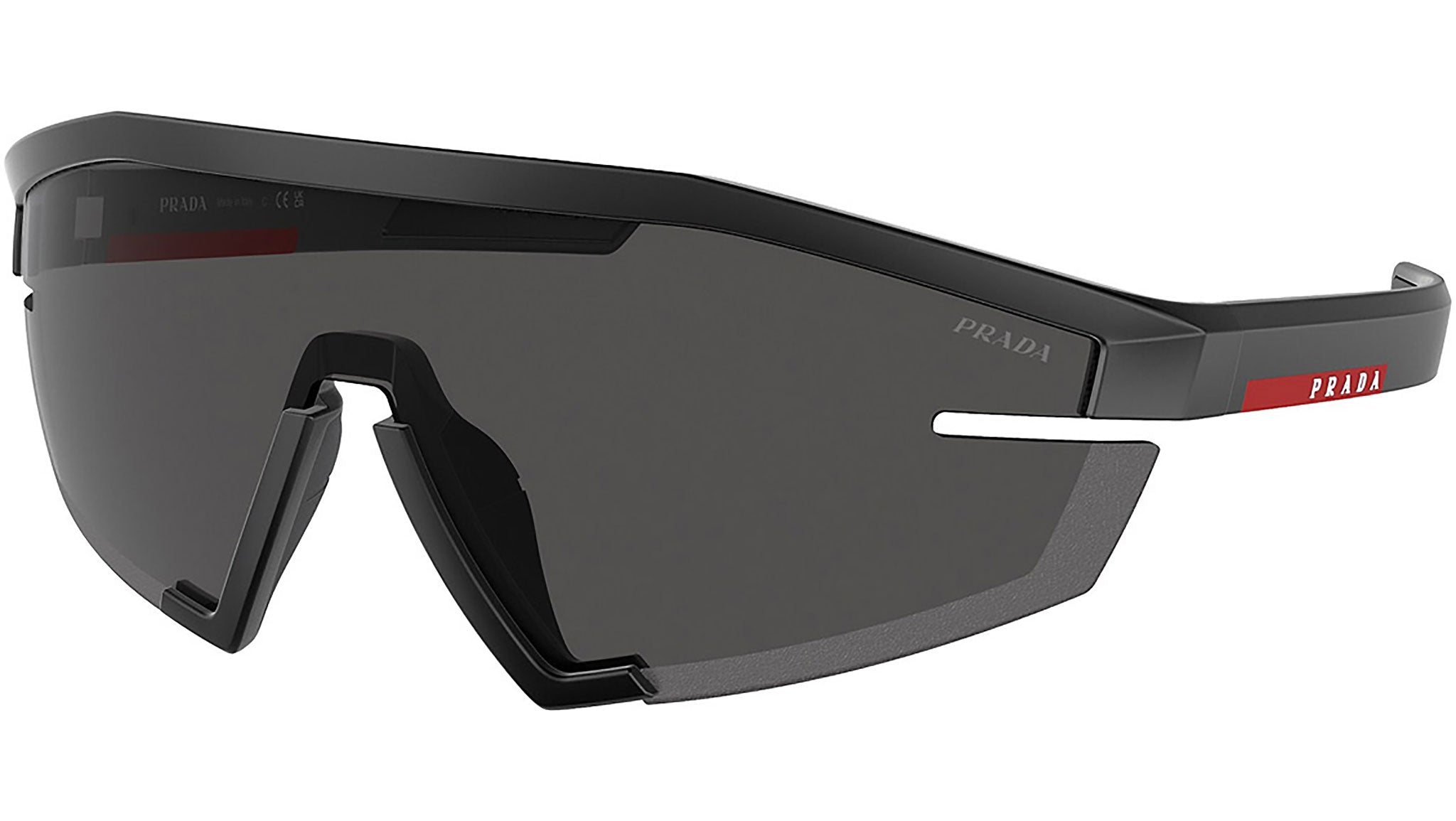 Occhiali da sole Prada Linea Rossa modello PS 03ZS codice colore 1BO06F con montatura geometrica rimless in iniettato color nero opaco e lenti in poliammide color grigio scuro. Rivenditore autorizzato Prada. Ogni prodotto Prada Linea Rossa viene consegnato con astuccio originale e accessori.