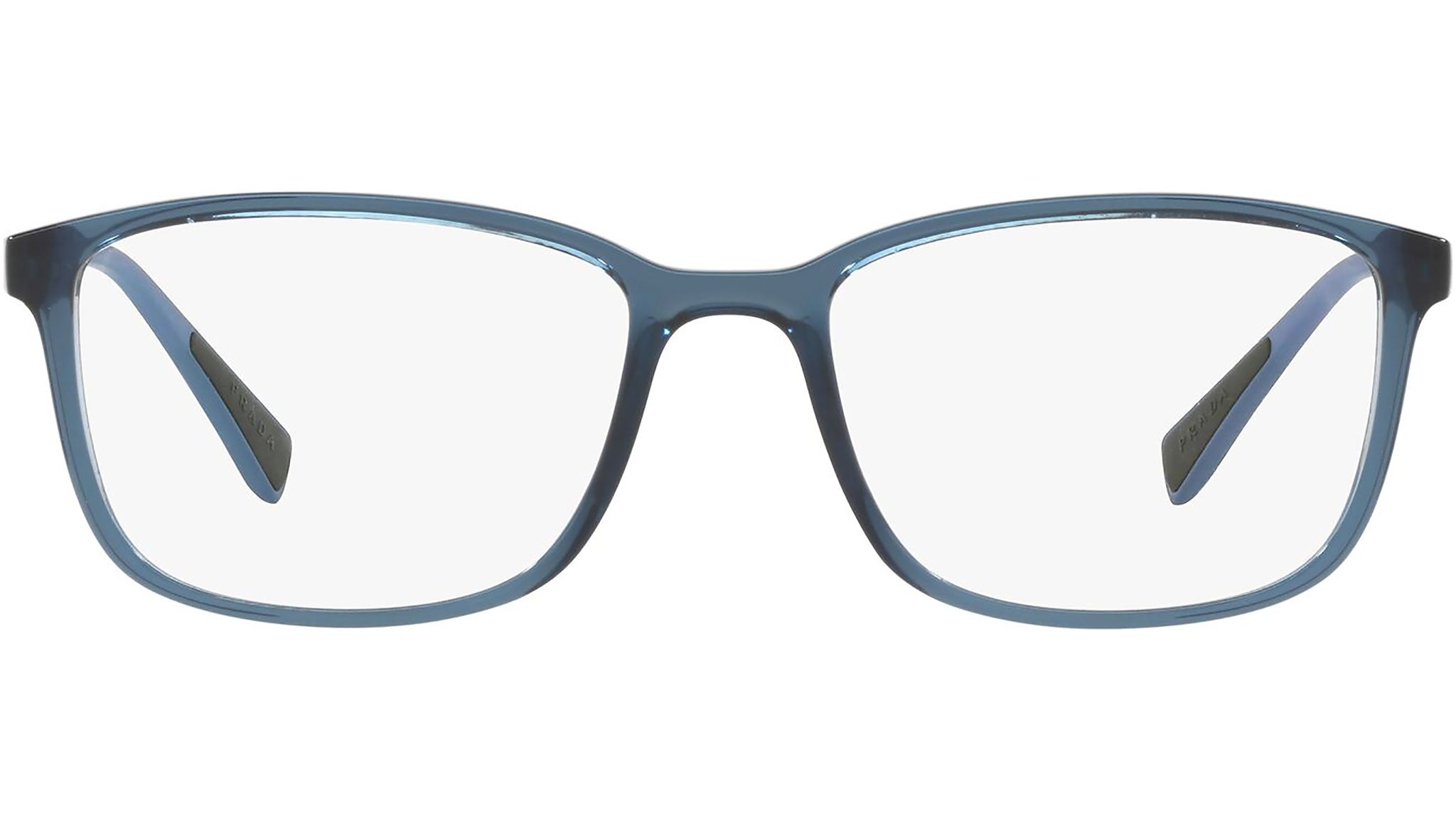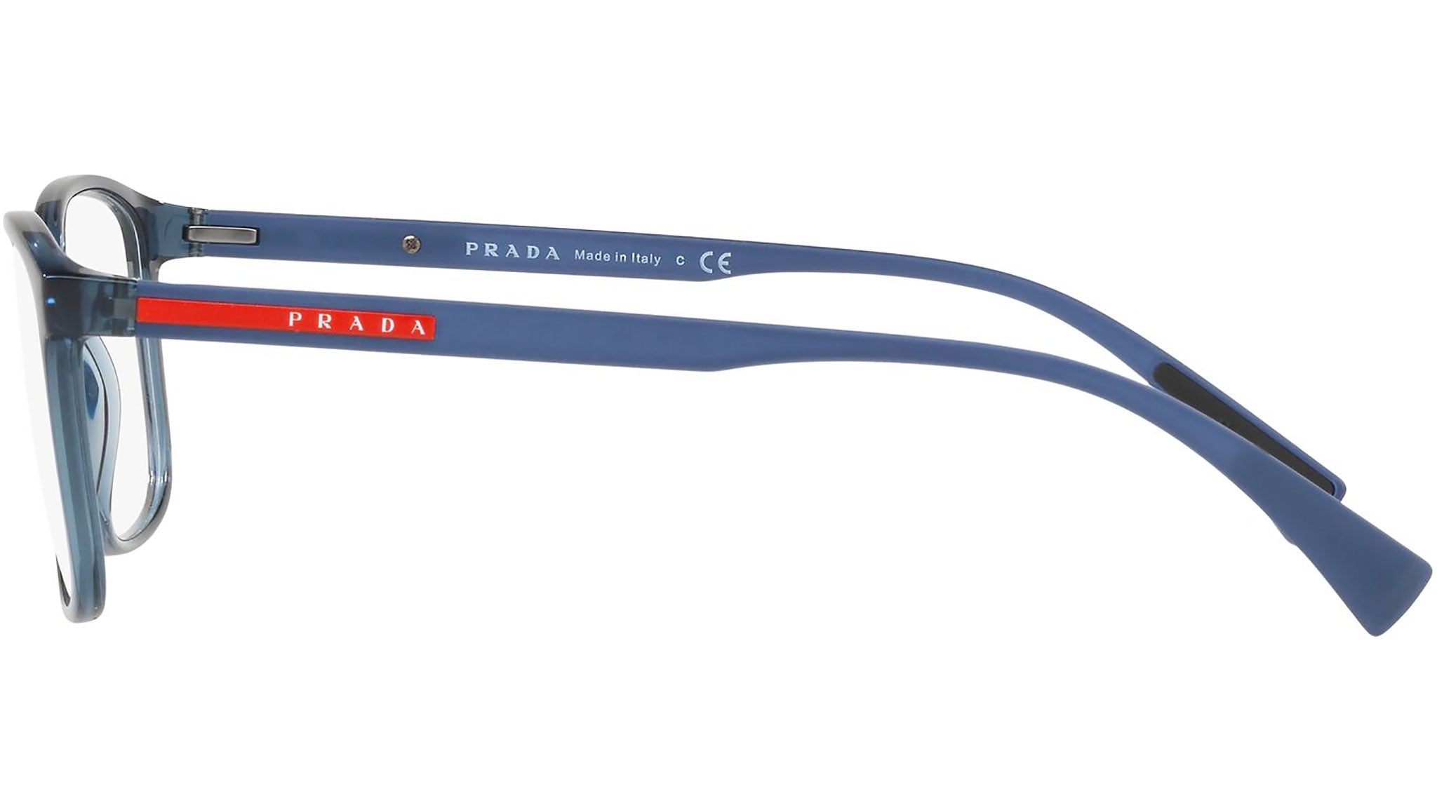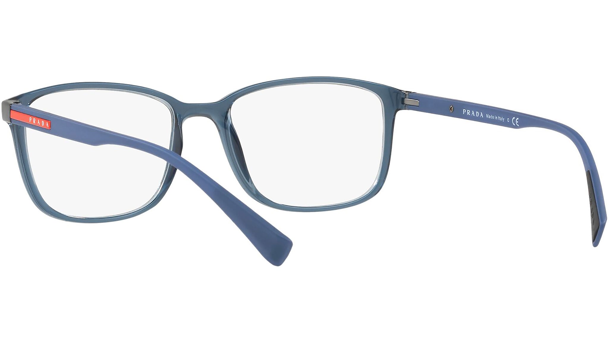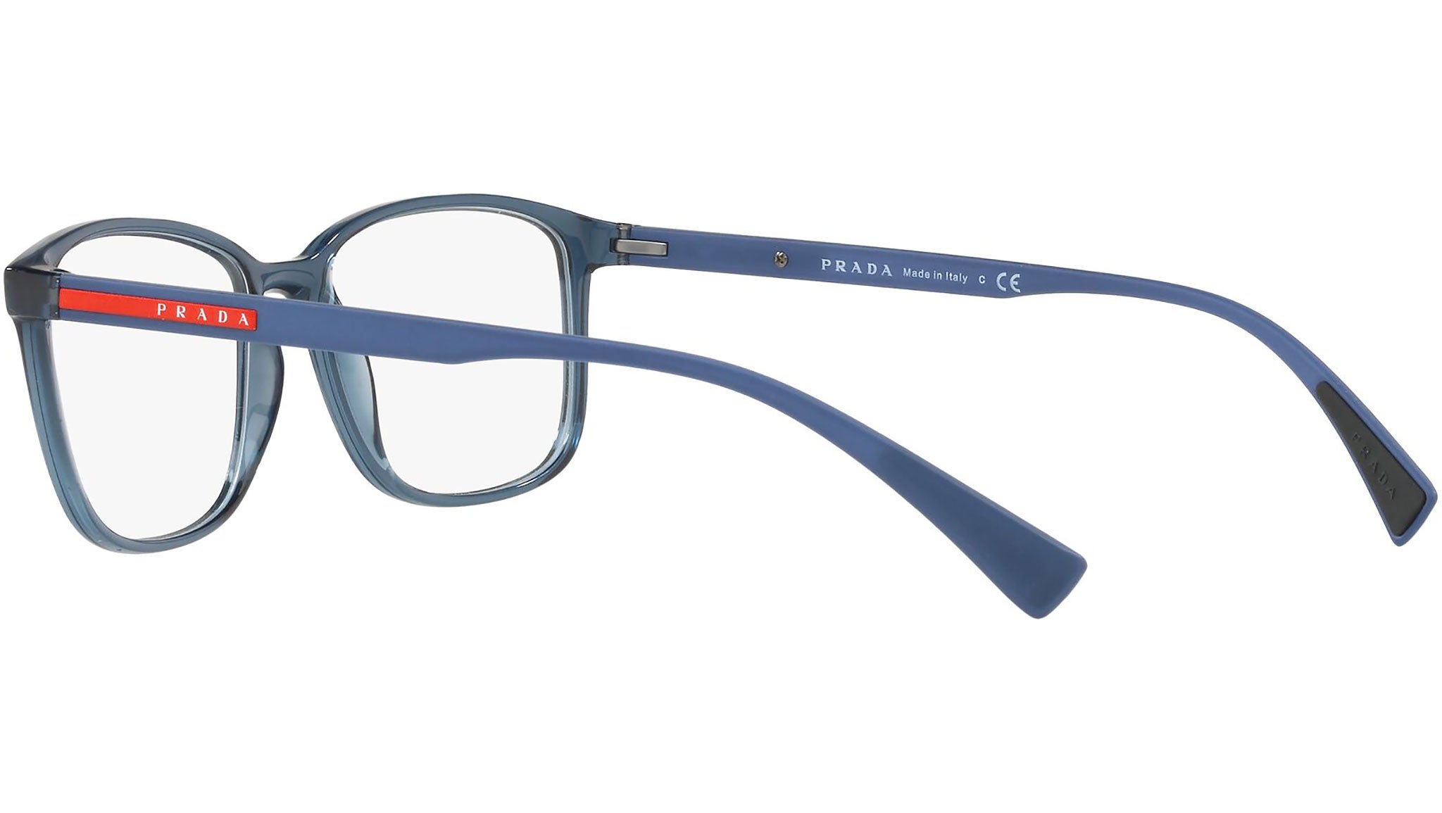 Prada Linea Rossa Eyewear Collection model PS 04IV, transparent azure frame variant, color code CZH1O1. A new perspective, a fusion of sportswear and contemporary elegance: the Prada Linea Rossa Eyewear Collection conveys an everyday casual style with all the quality and craftsmanship of the Prada brand.