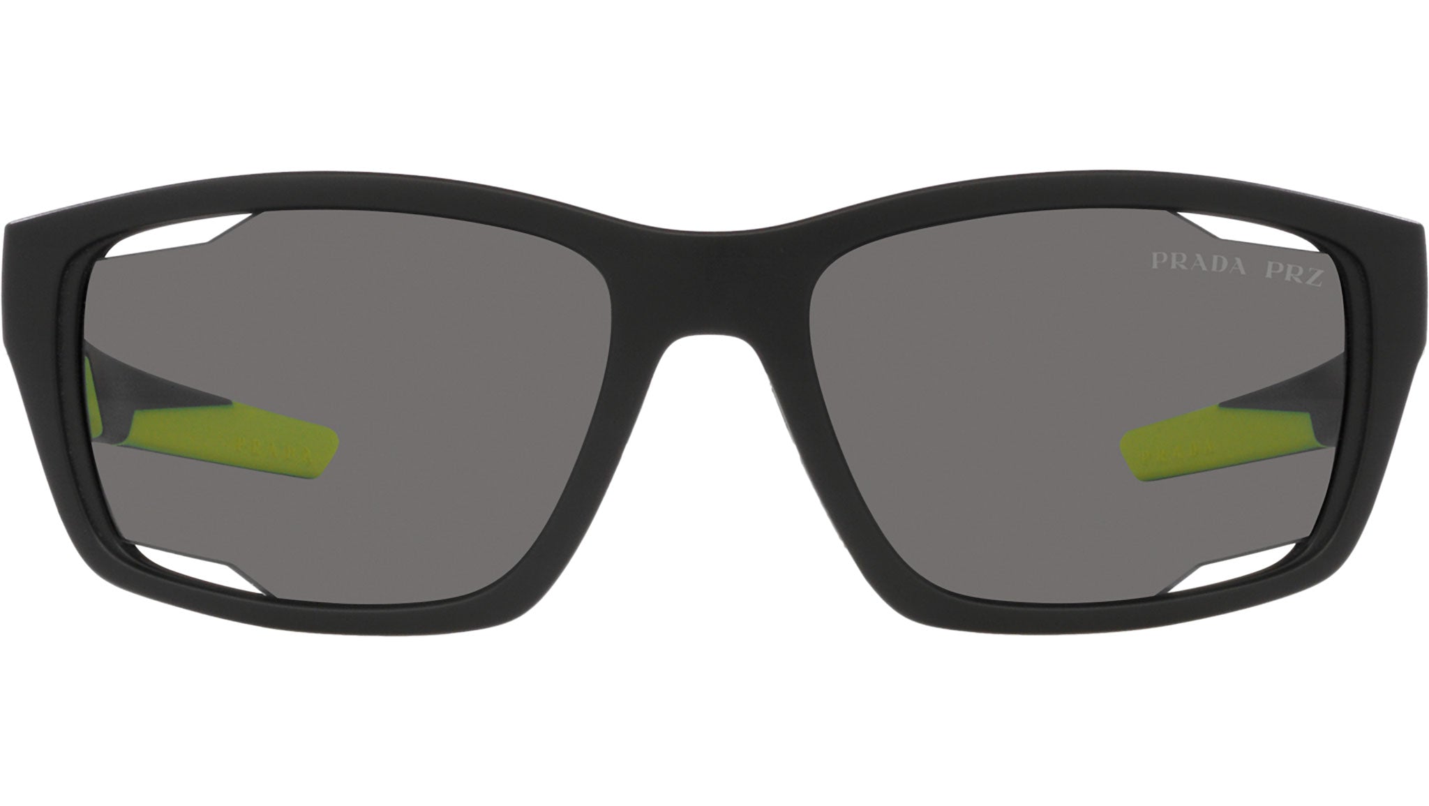 Occhiali da sole Prada Linea Rossa modello PS04YS nella variante colore 17G02G nero opaco con lenti color grigio scuro . Una perfetta fusione dei concetti di sportswear ed eleganza contemporanea: la linea di occhiali da sole Prada Linea Rossa declina in un moderno stile casual tutta la qualità e la raffinatezza artigianale della maison Prada.