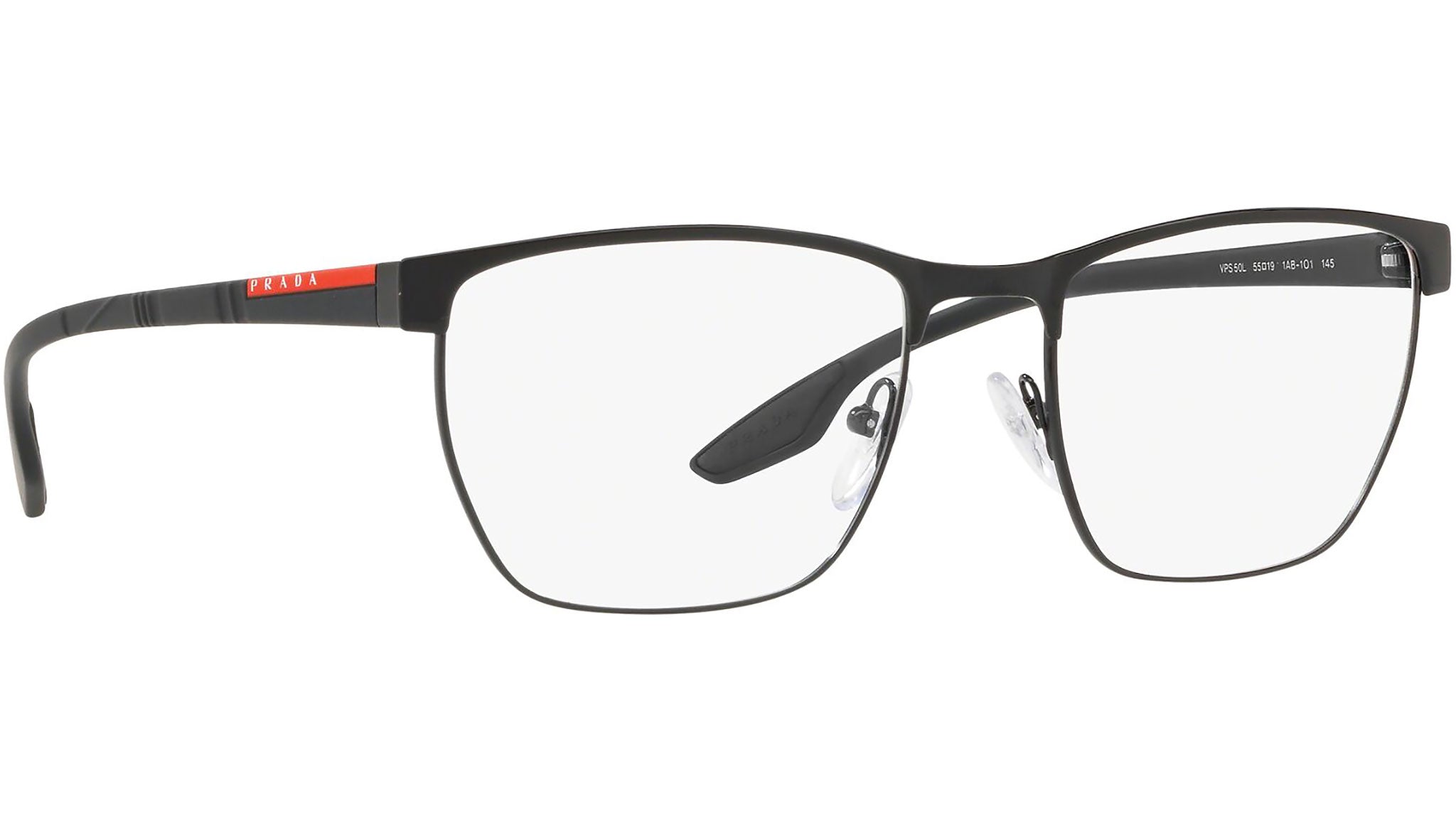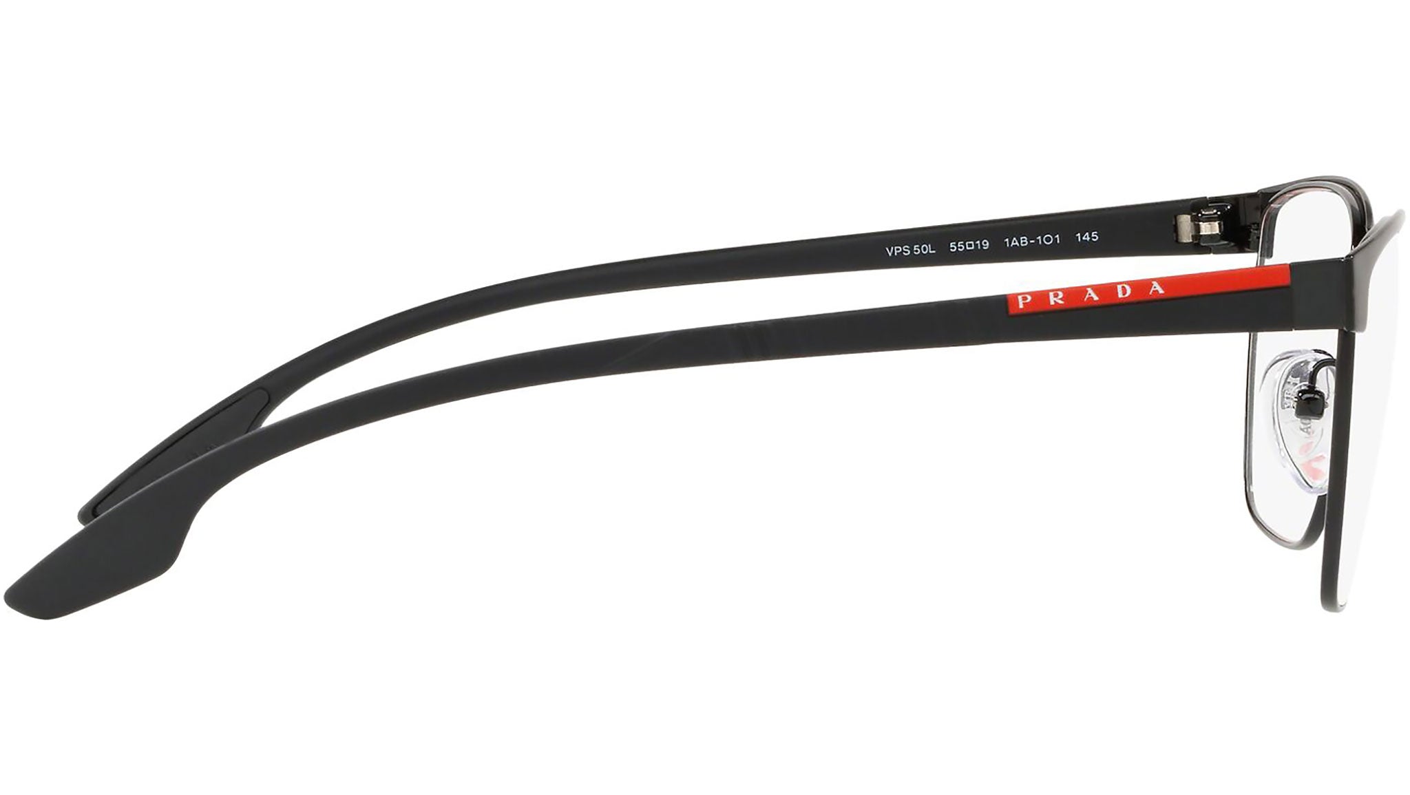 Prada Linea Rossa Eyewear Collection model PS 50LV, black frame variant, color code 1AB1O1. A new perspective, a fusion of sportswear and contemporary elegance: the Prada Linea Rossa Eyewear Collection conveys an everyday casual style with all the quality and craftsmanship of the Prada brand.