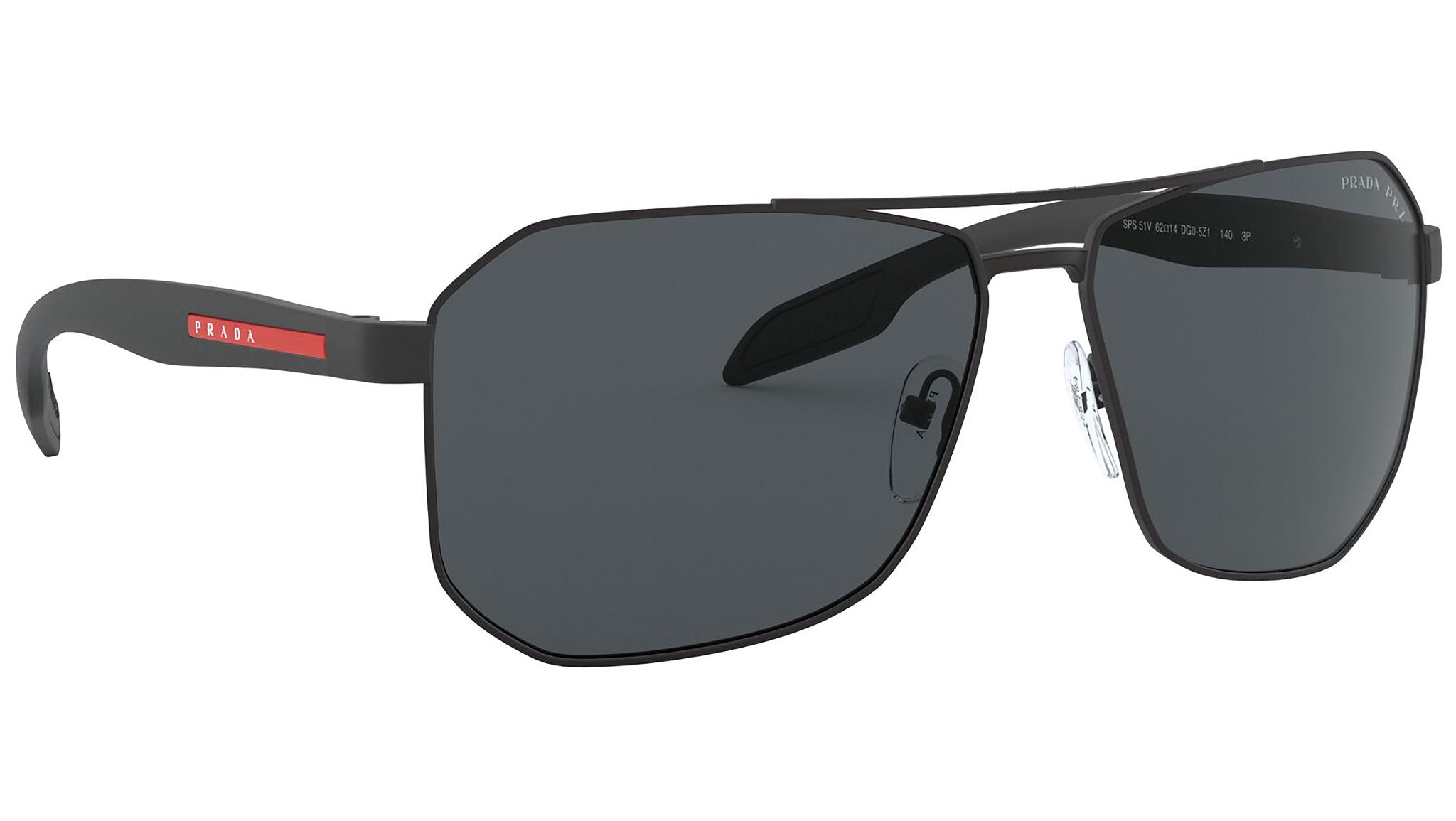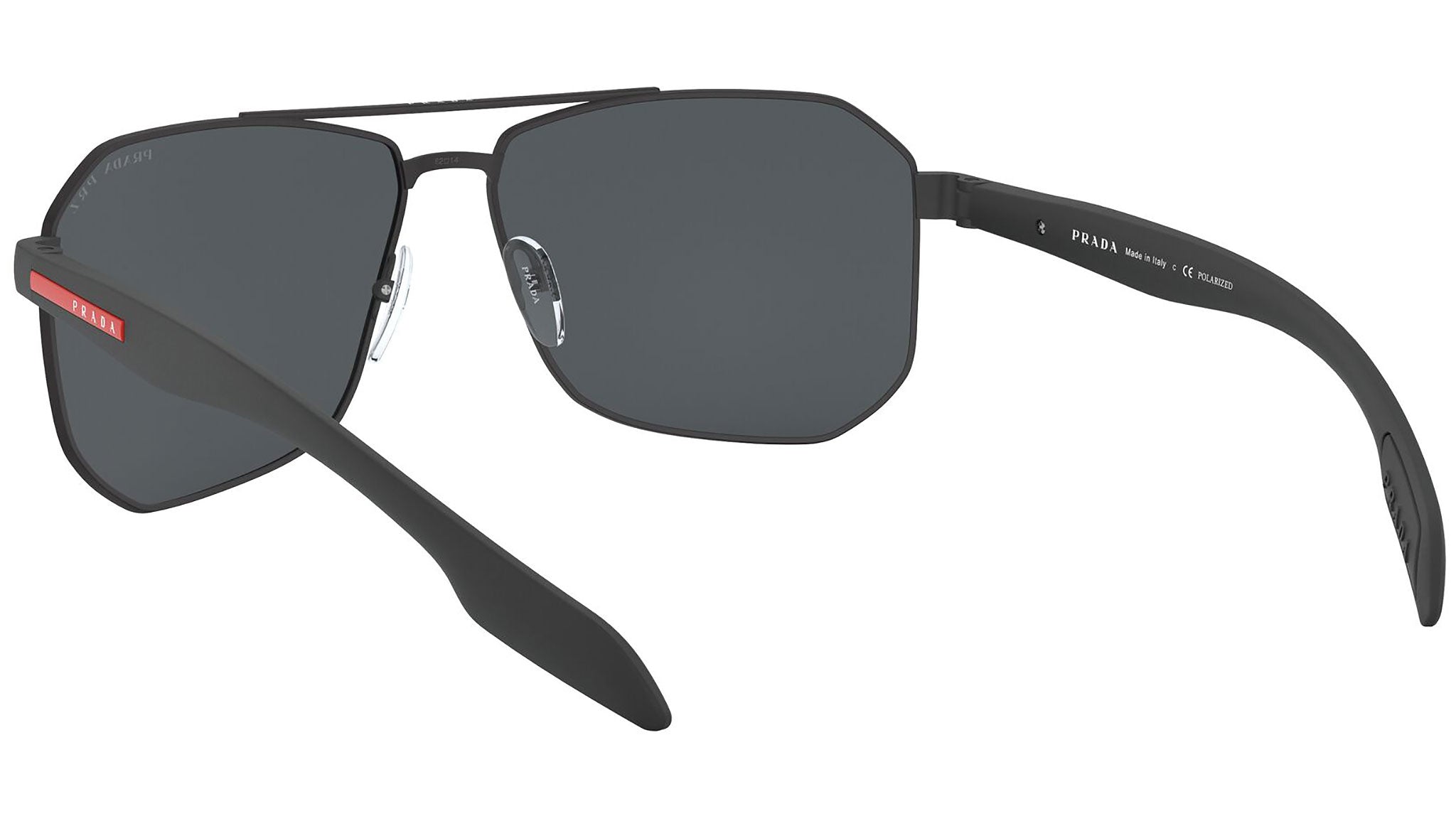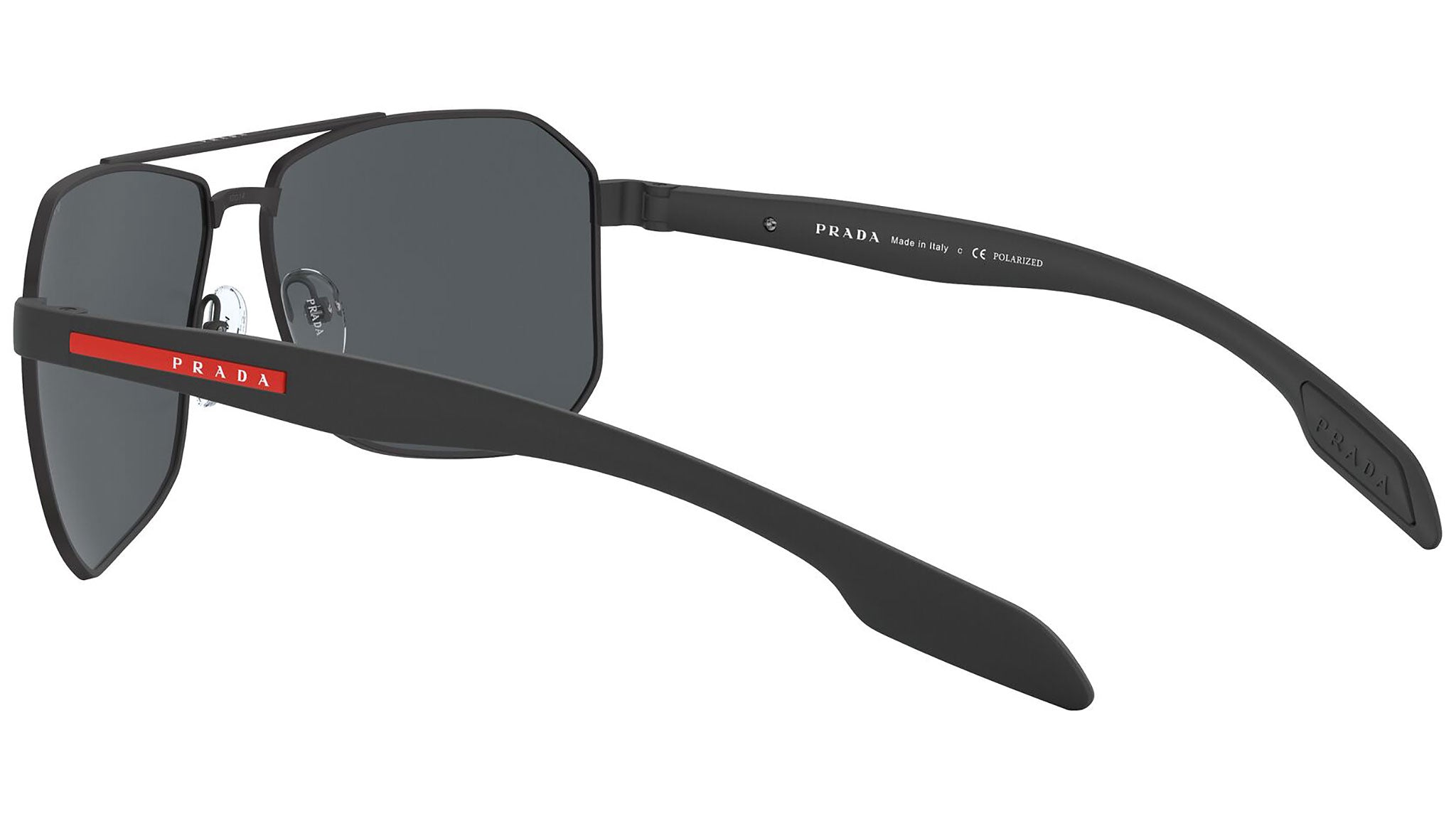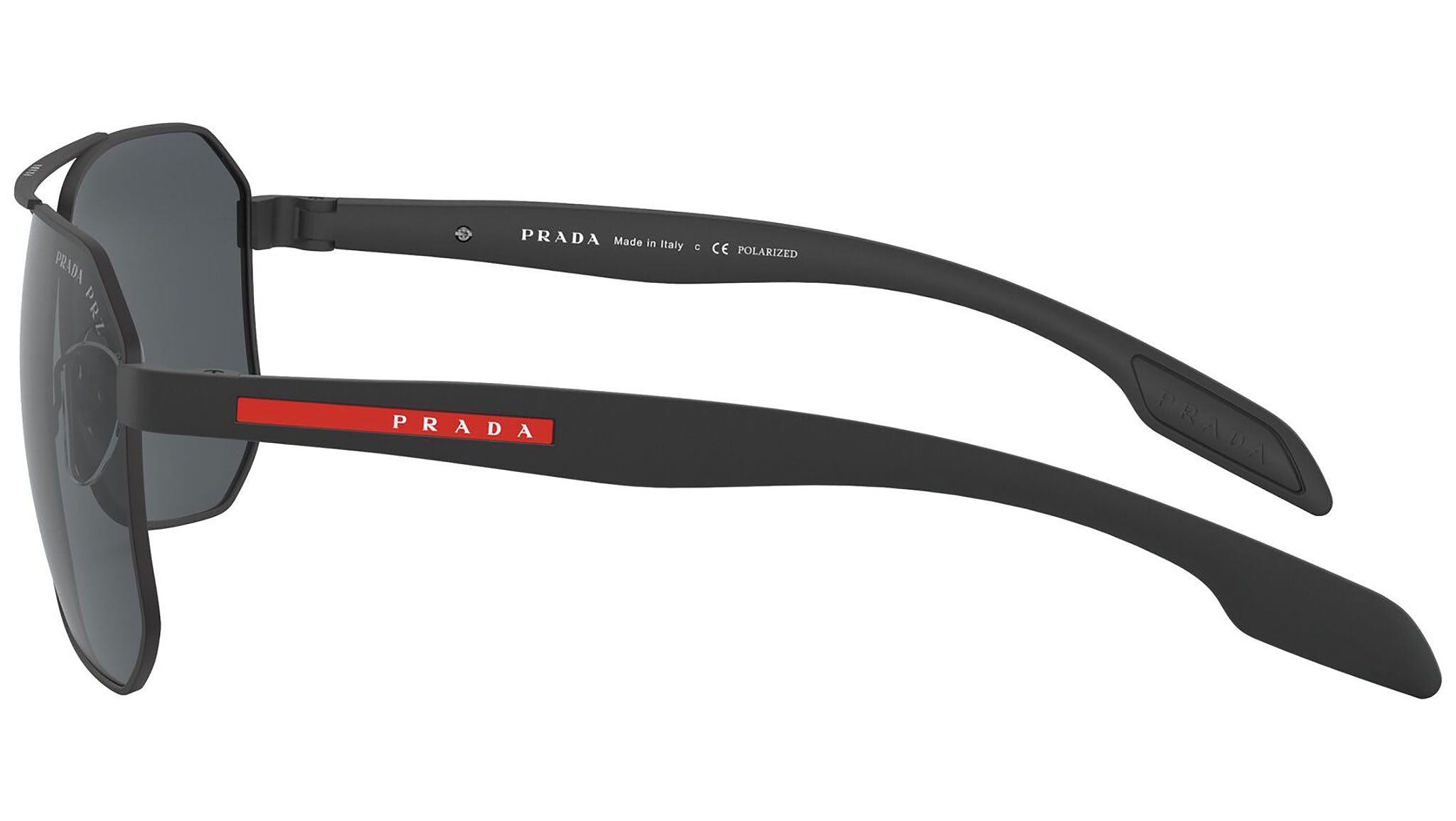 Prada Linea Rossa sunglasses model PS 51VS, black rubber frame variant, color code DG05Z1 with polar grey lens. Prada Linea Rossa Sun Collection conveys an everyday casual style with all the quality and craftsmanship of the Prada brand.
