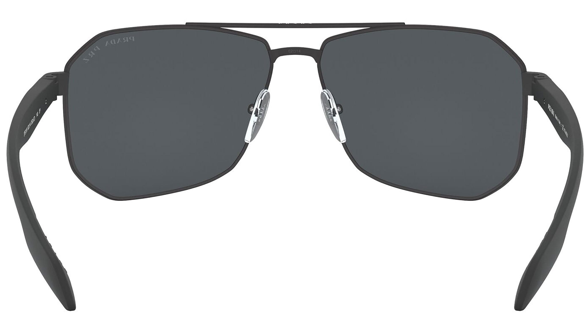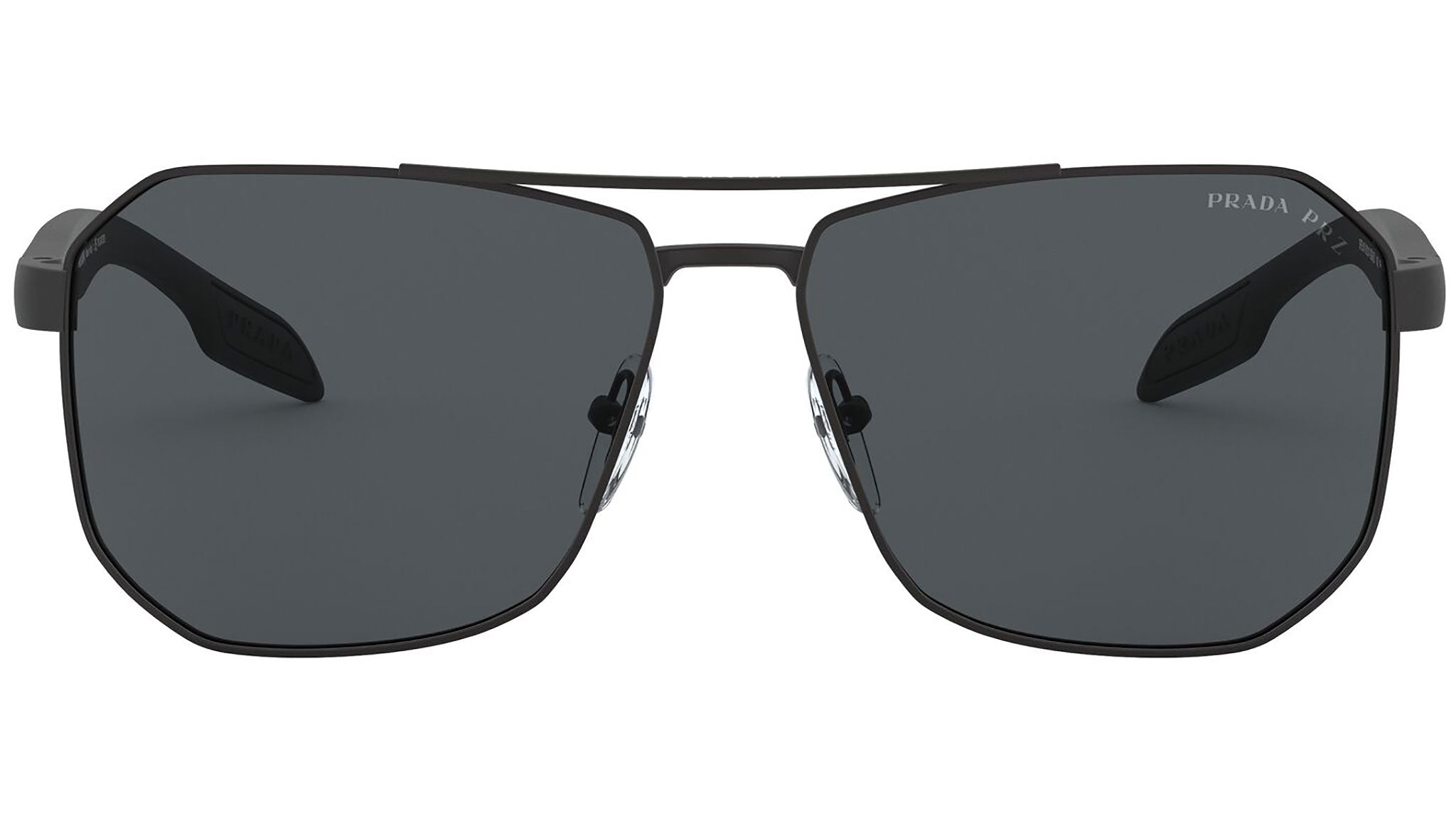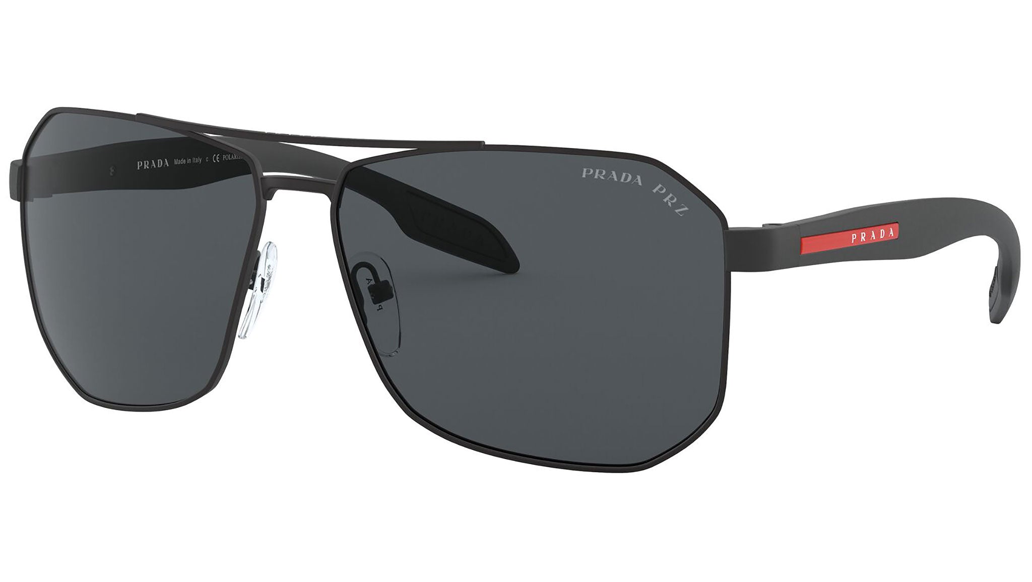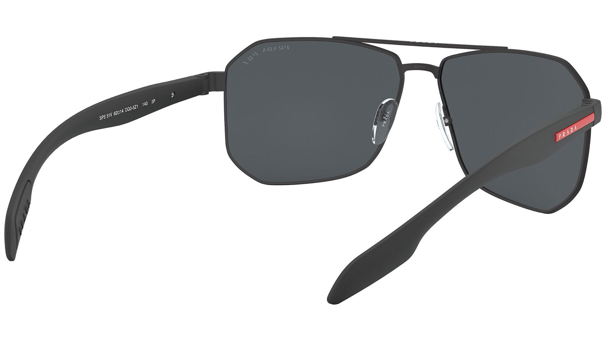 Prada Linea Rossa sunglasses model PS 51VS, black rubber frame variant, color code DG05Z1 with polar grey lens. Prada Linea Rossa Sun Collection conveys an everyday casual style with all the quality and craftsmanship of the Prada brand.