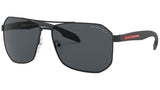 Prada Linea Rossa sunglasses model PS 51VS, black rubber frame variant, color code DG05Z1 with polar grey lens. Prada Linea Rossa Sun Collection conveys an everyday casual style with all the quality and craftsmanship of the Prada brand.