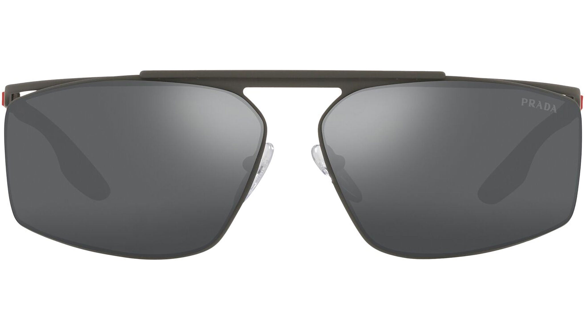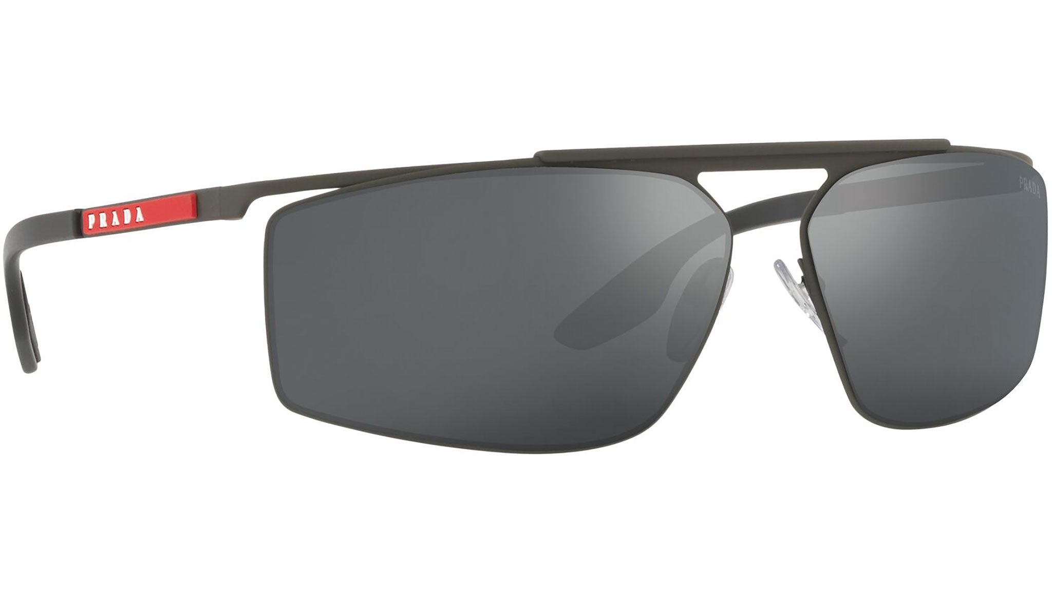 Occhiali da sole Prada Linea Rossa modello PS 51WS nella variante colore UFK07G grigio gomma con lenti color grigio a specchio nero. Una perfetta fusione dei concetti di sportswear ed eleganza contemporanea: la linea di occhiali da sole Prada Linea Rossa declina in un moderno stile casual tutta la qualità e la raffinatezza artigianale della maison Prada.