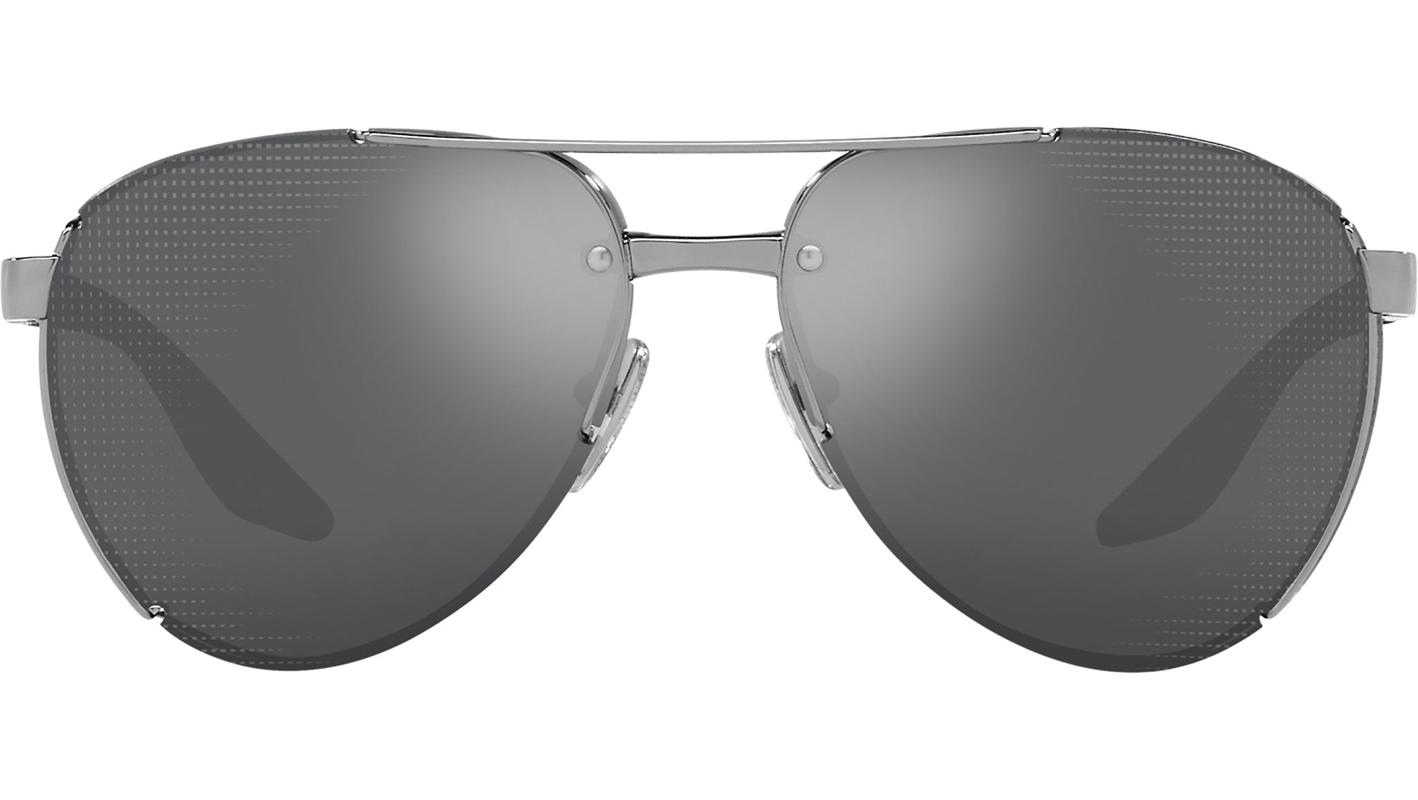 Occhiali da sole Prada Linea Rossa modello PS 51YS codice colore 5AV07U con montatura aviatore semi rim in metallo color nero opaco e lenti in poliammide color grigio a specchio nero. Rivenditore autorizzato Prada. Ogni prodotto Prada Linea Rossa viene consegnato con astuccio originale e accessori.