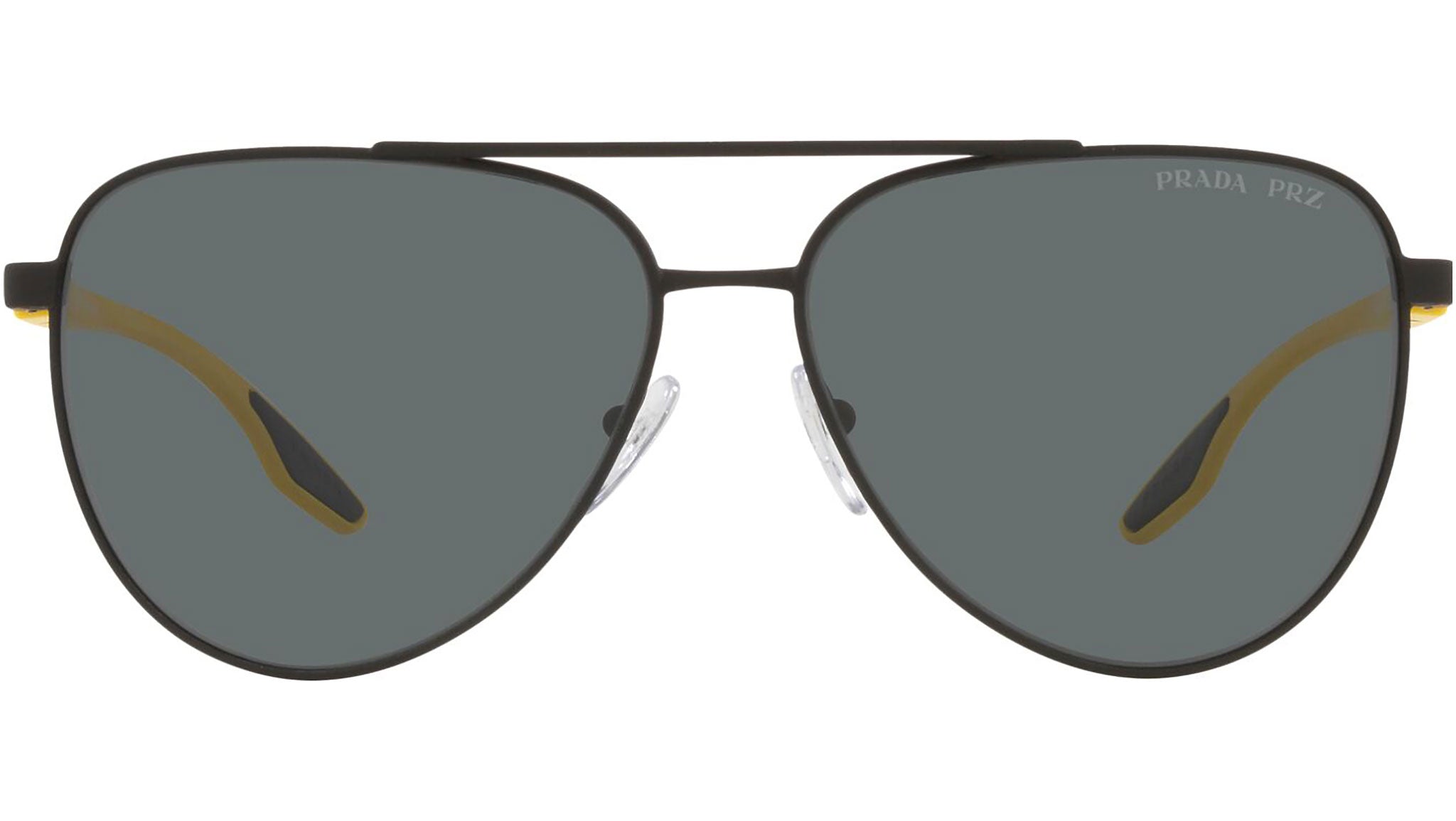 Occhiali da sole Prada Linea Rossa modello PS 52WS nella variante colore 08W02G nero gomma con lenti color grigio scuro . Una perfetta fusione dei concetti di sportswear ed eleganza contemporanea: la linea di occhiali da sole Prada Linea Rossa declina in un moderno stile casual tutta la qualità e la raffinatezza artigianale della maison Prada.