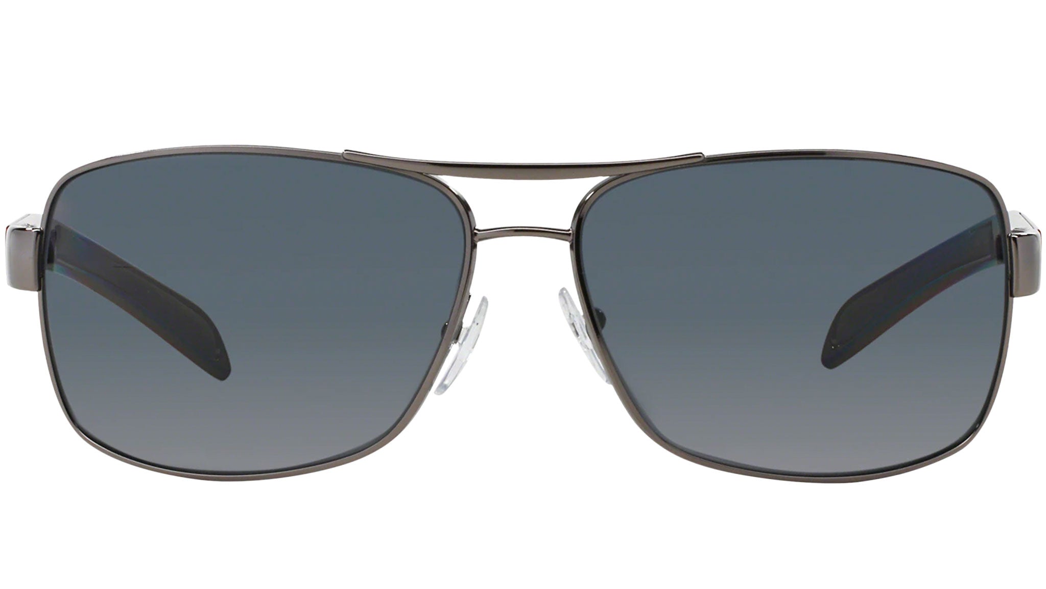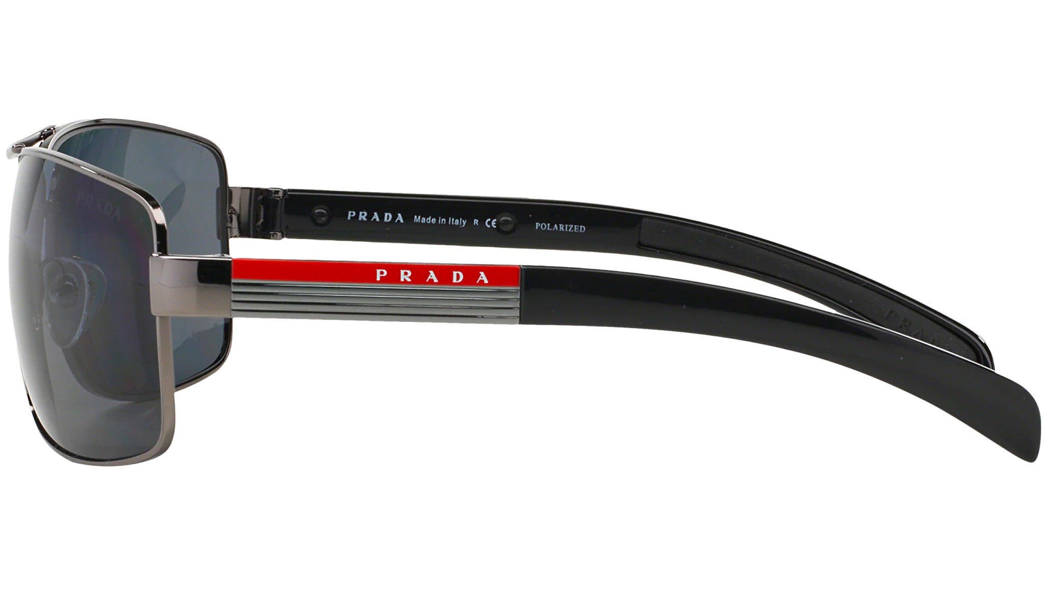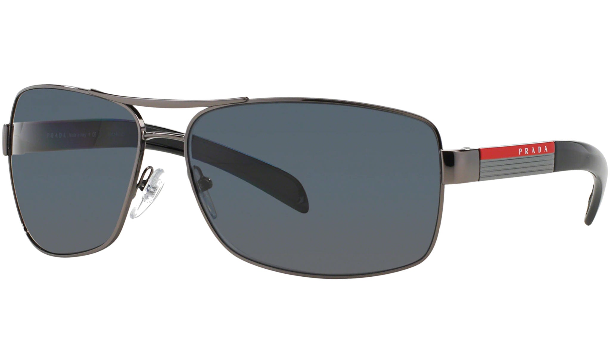 Prada Linea Rossa sunglasses model PS 54IS, gunmetal frame variant, color code 5AV5Z1 with polar grey lens. Prada Linea Rossa Sun Collection conveys an everyday casual style with all the quality and craftsmanship of the Prada brand.