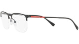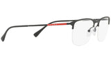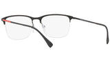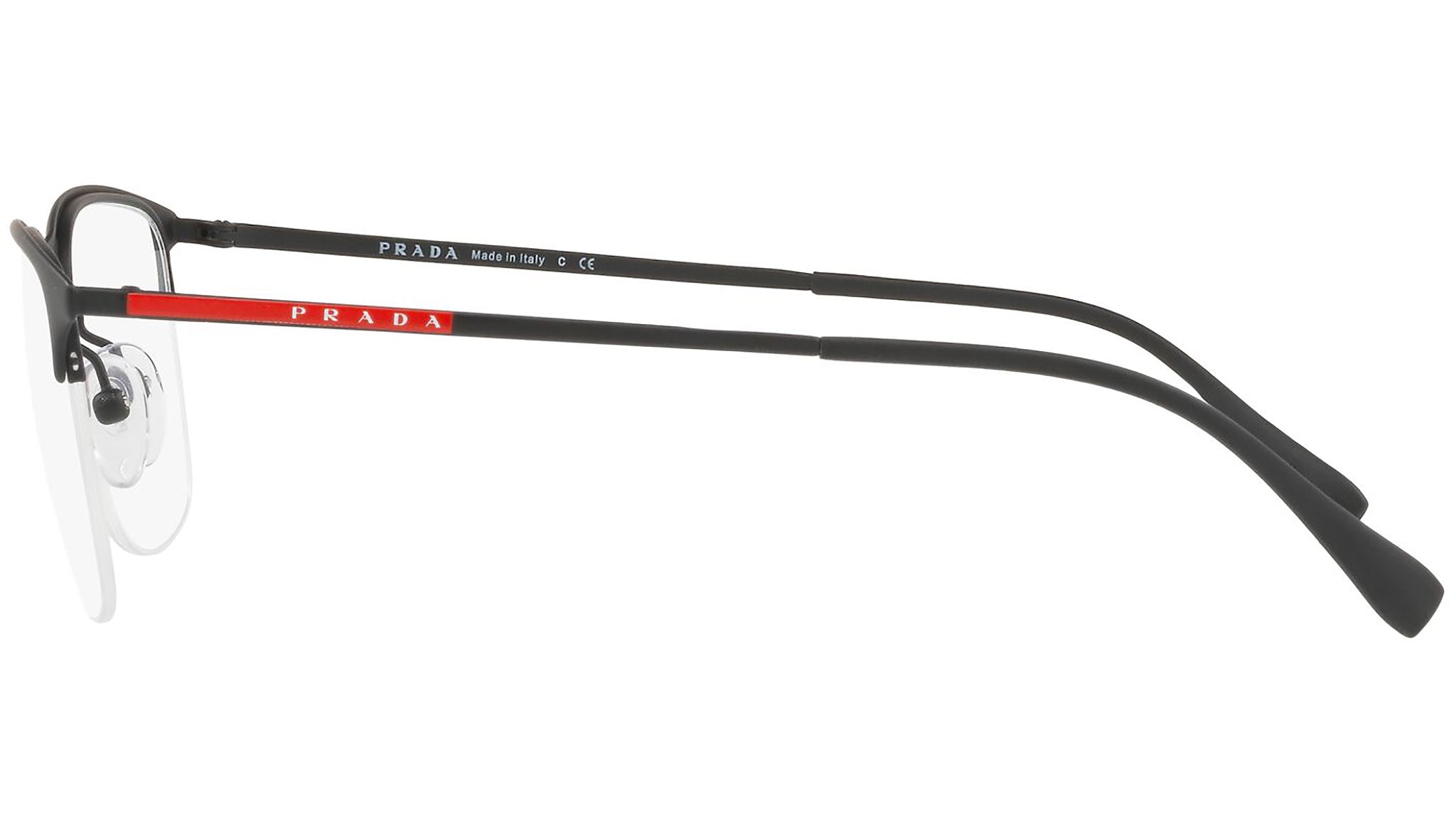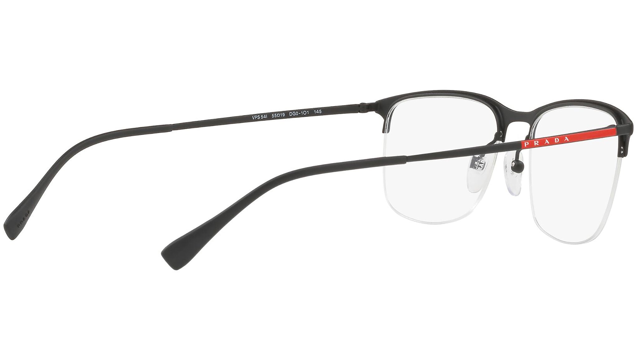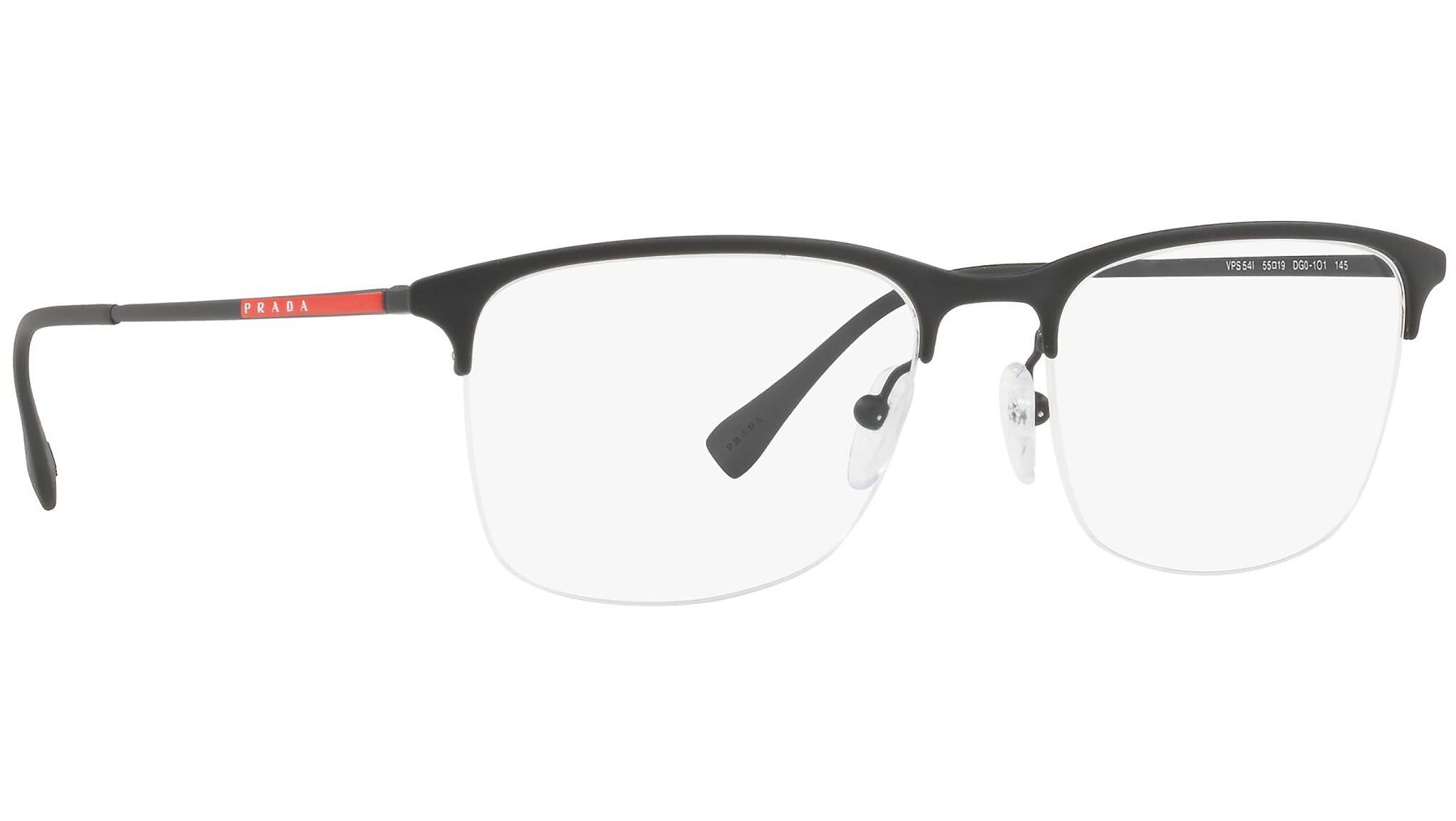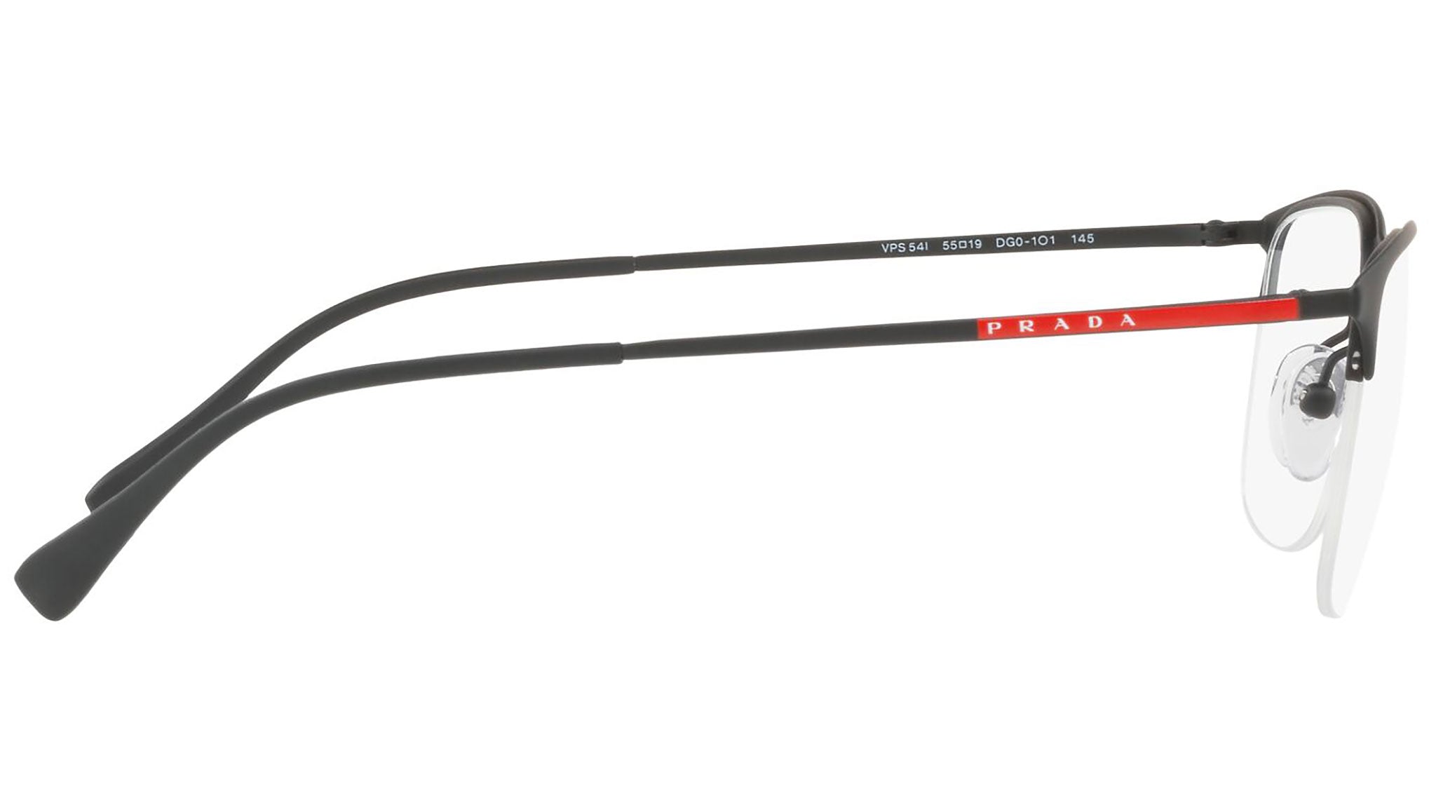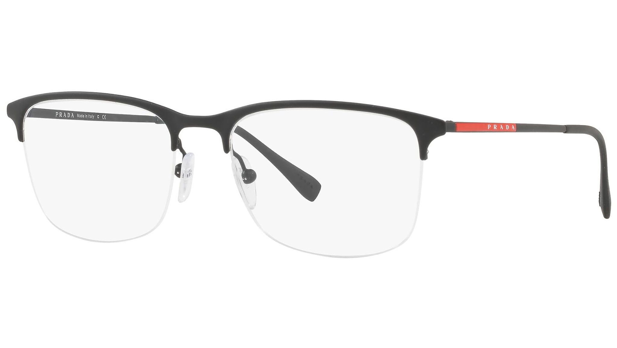 Occhiali da vista Prada Linea Rossa modello PS 54IV nella variante colore DG01O1 nero gomma. Una perfetta fusione dei concetti di sportswear ed eleganza contemporanea: la linea di occhiali da vista Prada Linea Rossa declina in un moderno stile casual tutta la qualità e la raffinatezza artigianale della maison Prada.