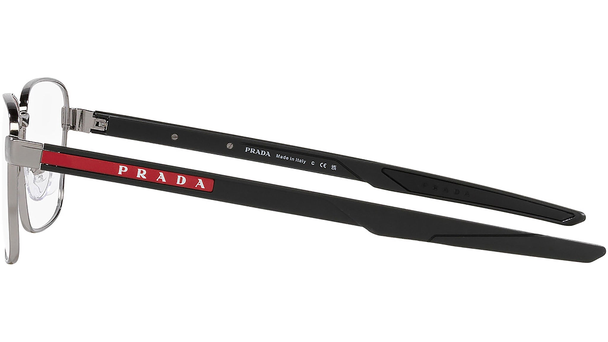 Occhiali da vista Prada Linea Rossa modello PS 54OV codice colore 5AV1O1 con montatura d-frame full rim in metallo color canna di fucile e lenti demo. Rivenditore autorizzato Prada. Ogni prodotto Prada Linea Rossa viene consegnato con astuccio originale e accessori.