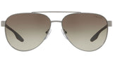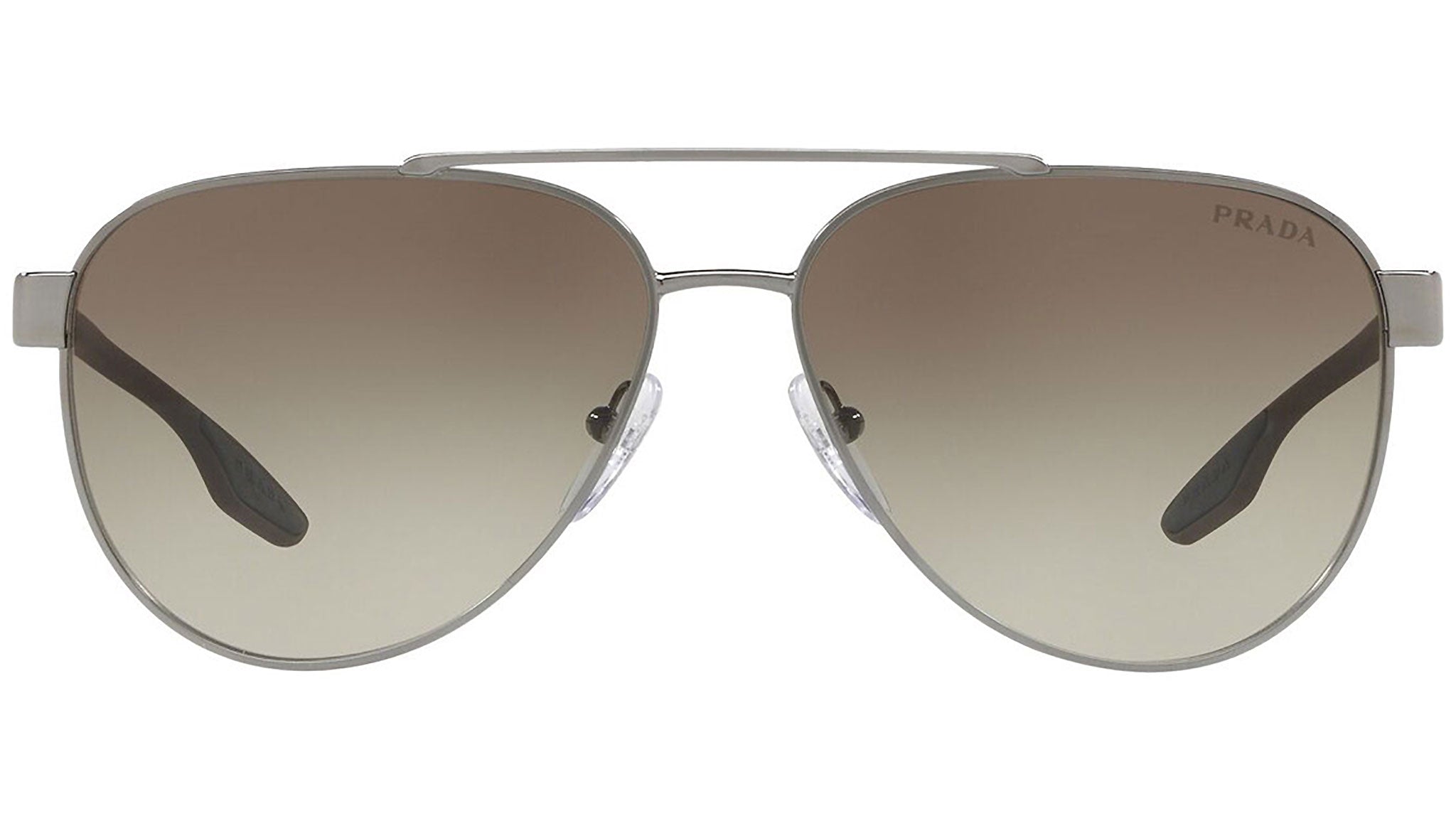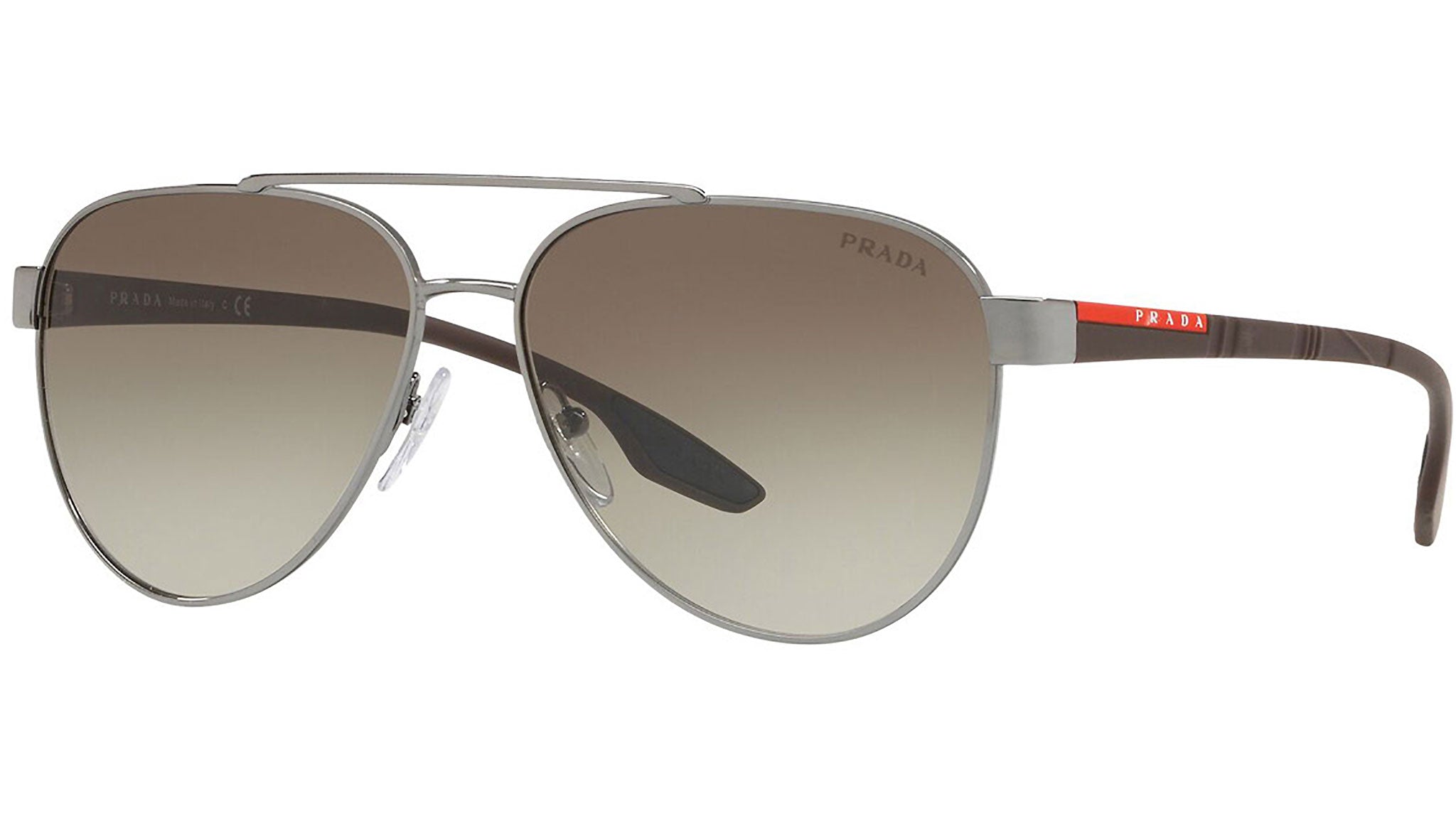 Prada Linea Rossa sunglasses model PS 54TS, gunmetal frame variant, color code 5AV1X1 with green gradient lens. Prada Linea Rossa Sun Collection conveys an everyday casual style with all the quality and craftsmanship of the Prada brand.