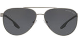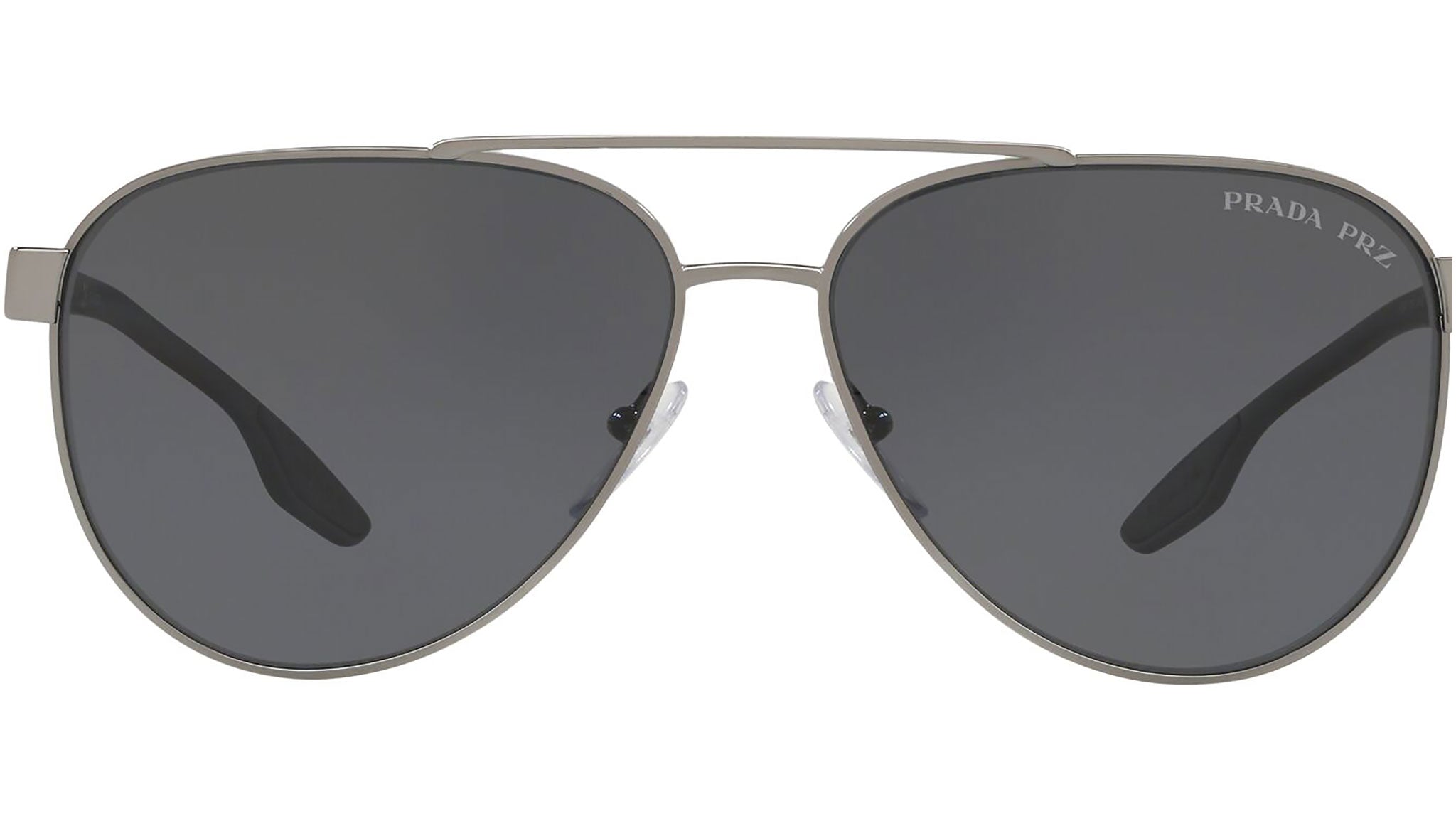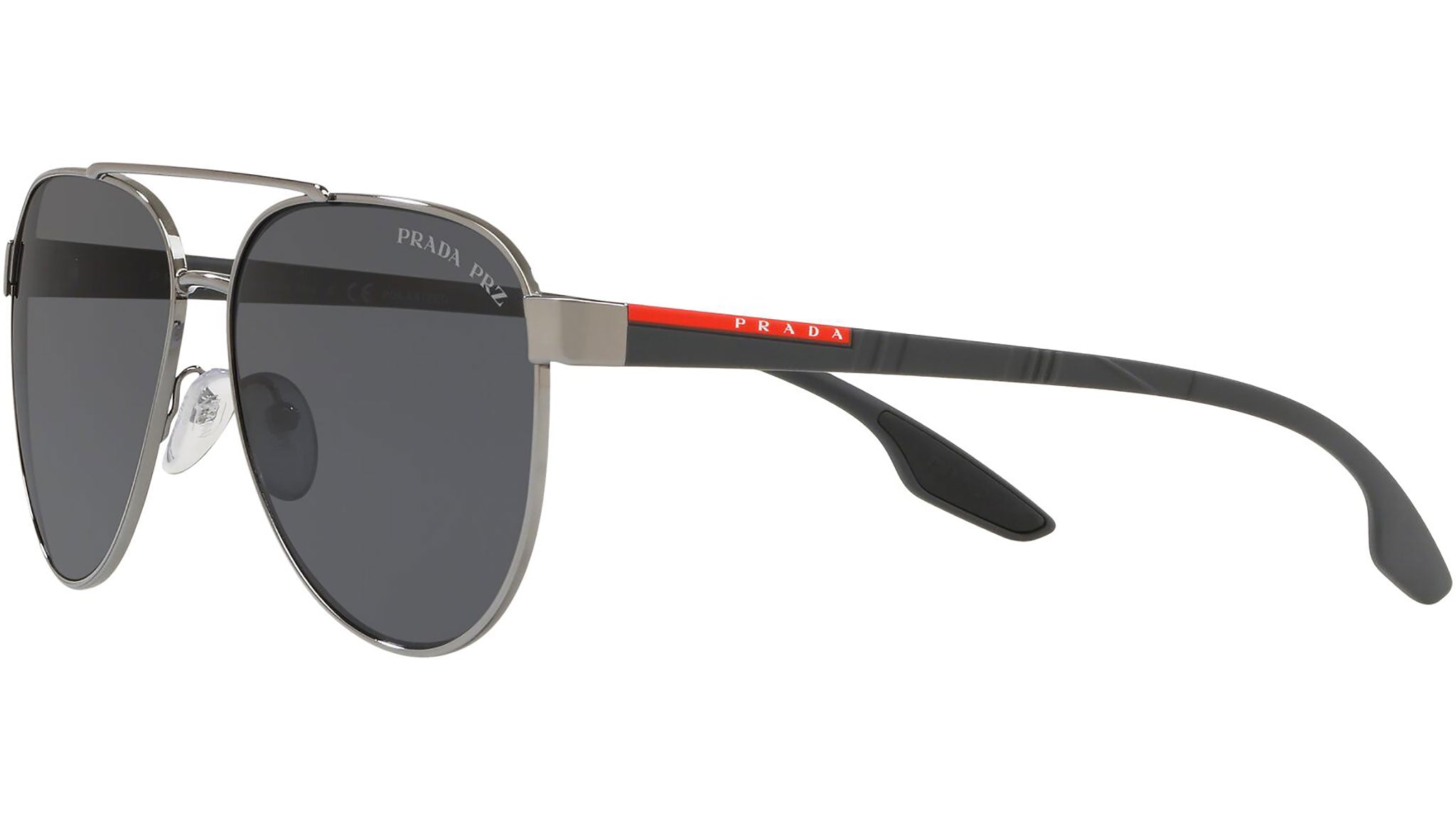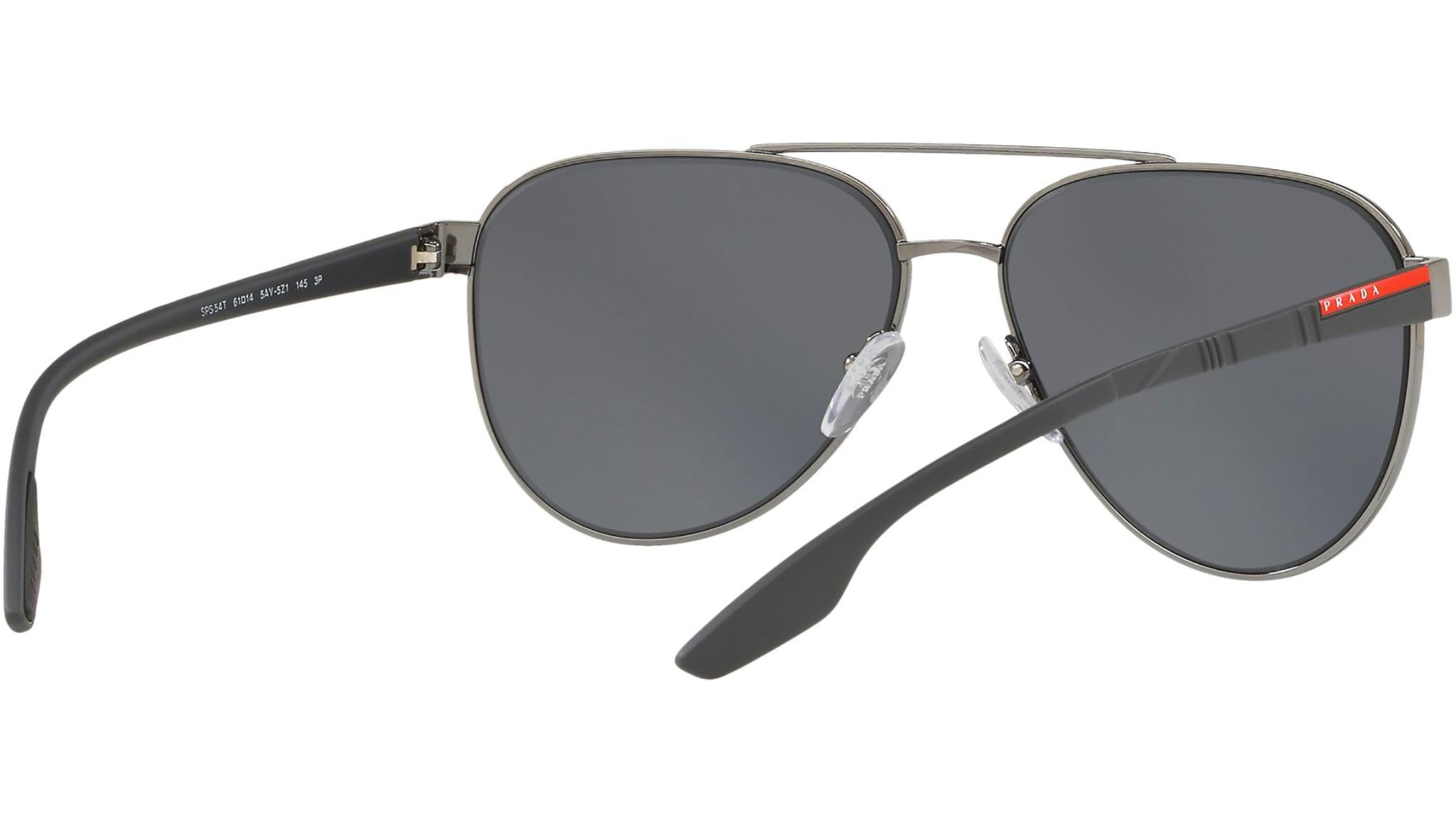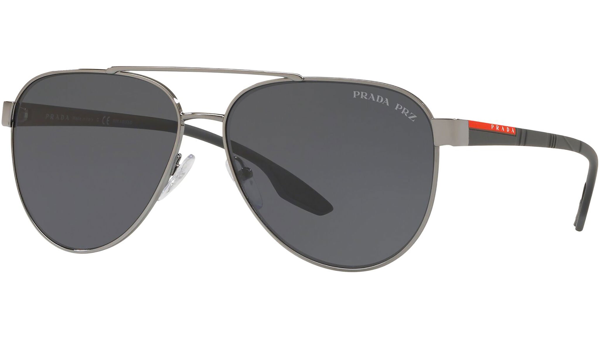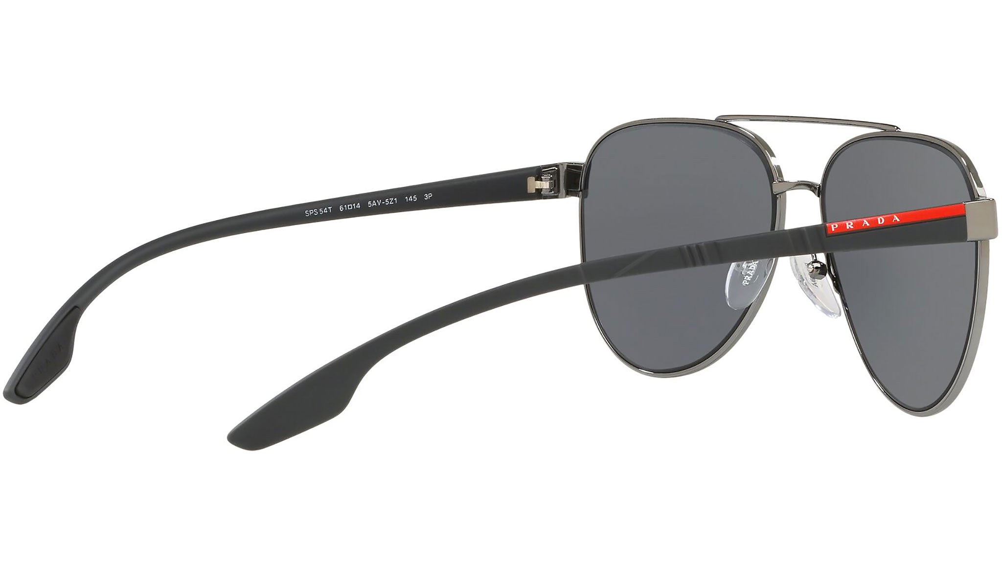 Prada Linea Rossa sunglasses model PS 54TS, gunmetal frame variant, color code 5AV5Z1 with polar grey lens. Prada Linea Rossa Sun Collection conveys an everyday casual style with all the quality and craftsmanship of the Prada brand.