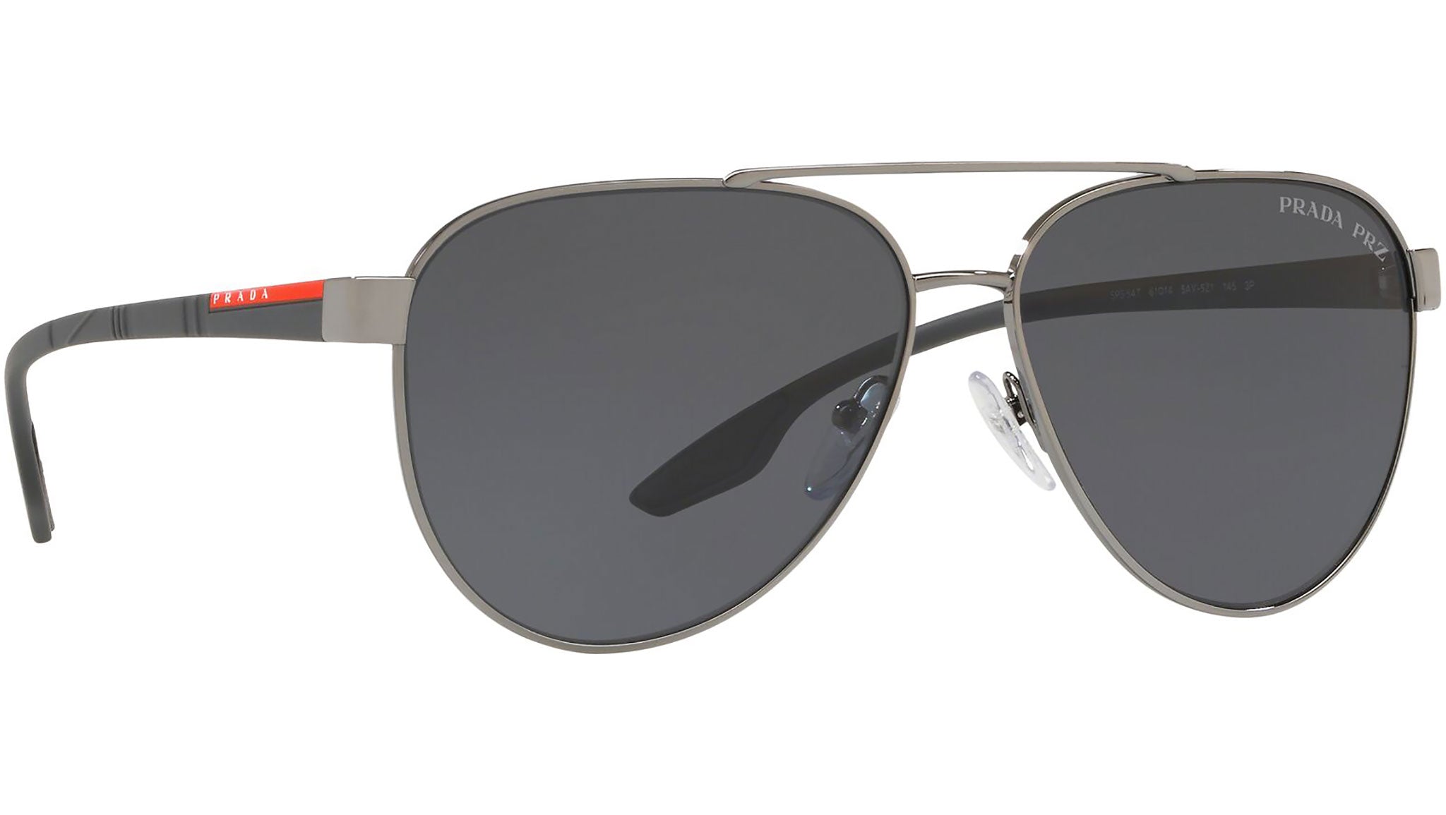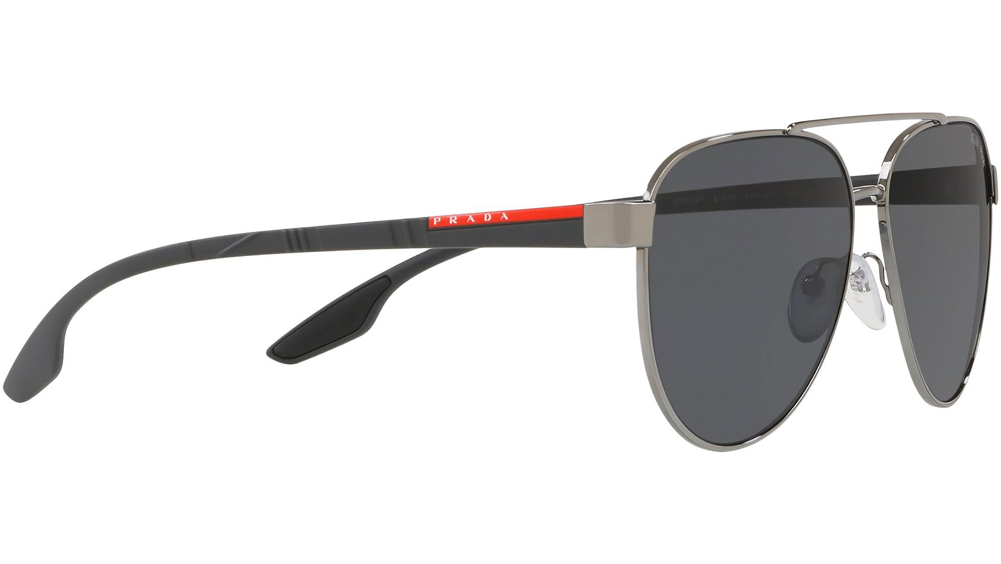 Prada Linea Rossa sunglasses model PS 54TS, gunmetal frame variant, color code 5AV5Z1 with polar grey lens. Prada Linea Rossa Sun Collection conveys an everyday casual style with all the quality and craftsmanship of the Prada brand.