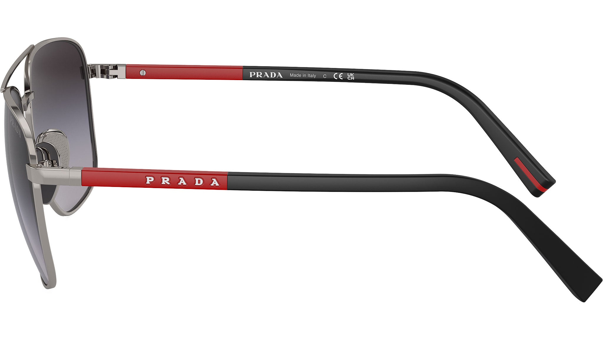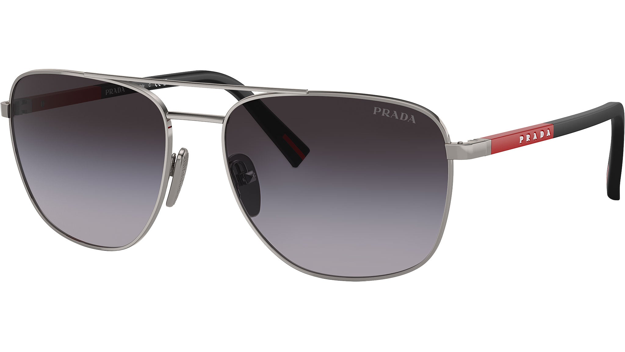 Occhiali da sole Prada Linea Rossa PS 54ZS 5AV09U uomo con montatura ovale in acciaio canna di fucile e lenti in poliammide color grigio sfumato. Naselli regolabili. Linea: Lifestyle. Codice modello: PS54ZS. Codice colore: 5AV09U. Made in Italy. Rivenditore autorizzato Prada Sport online. Gli occhiali vengono consegnati con custodia e accessori originali e sono coperti dalla garanzia ufficiale di 12 mesi del produttore.