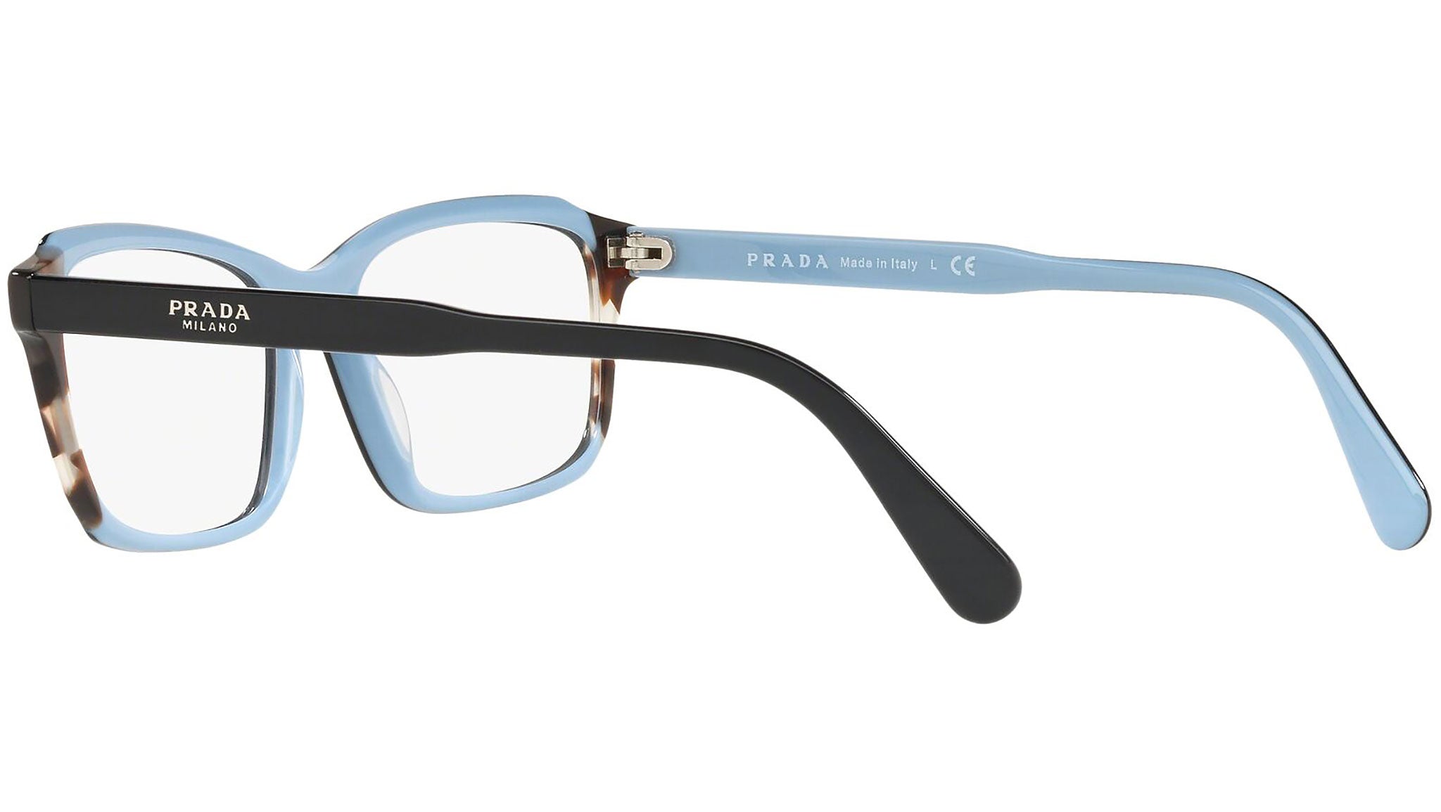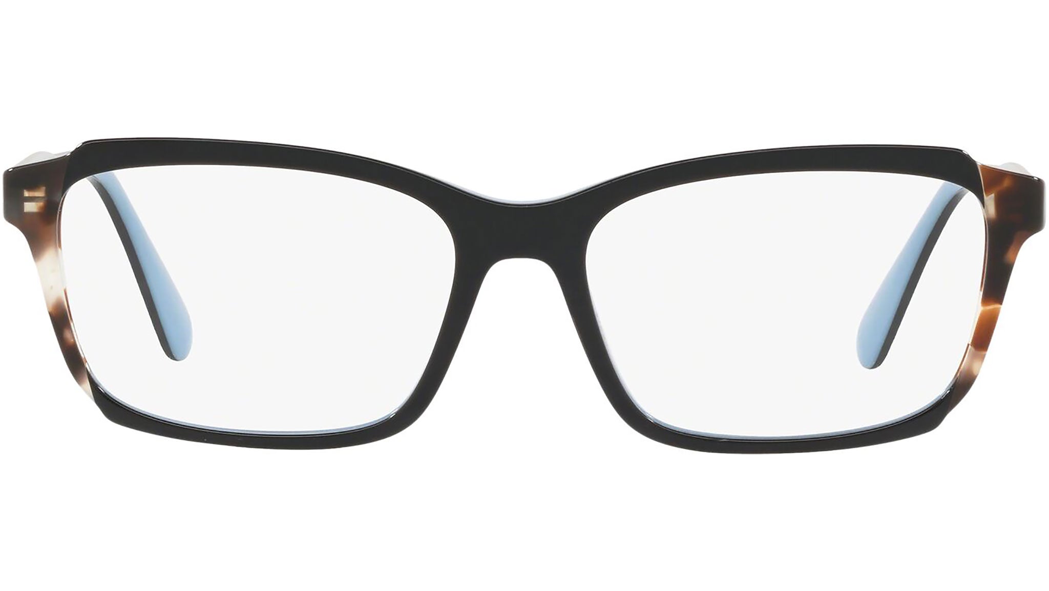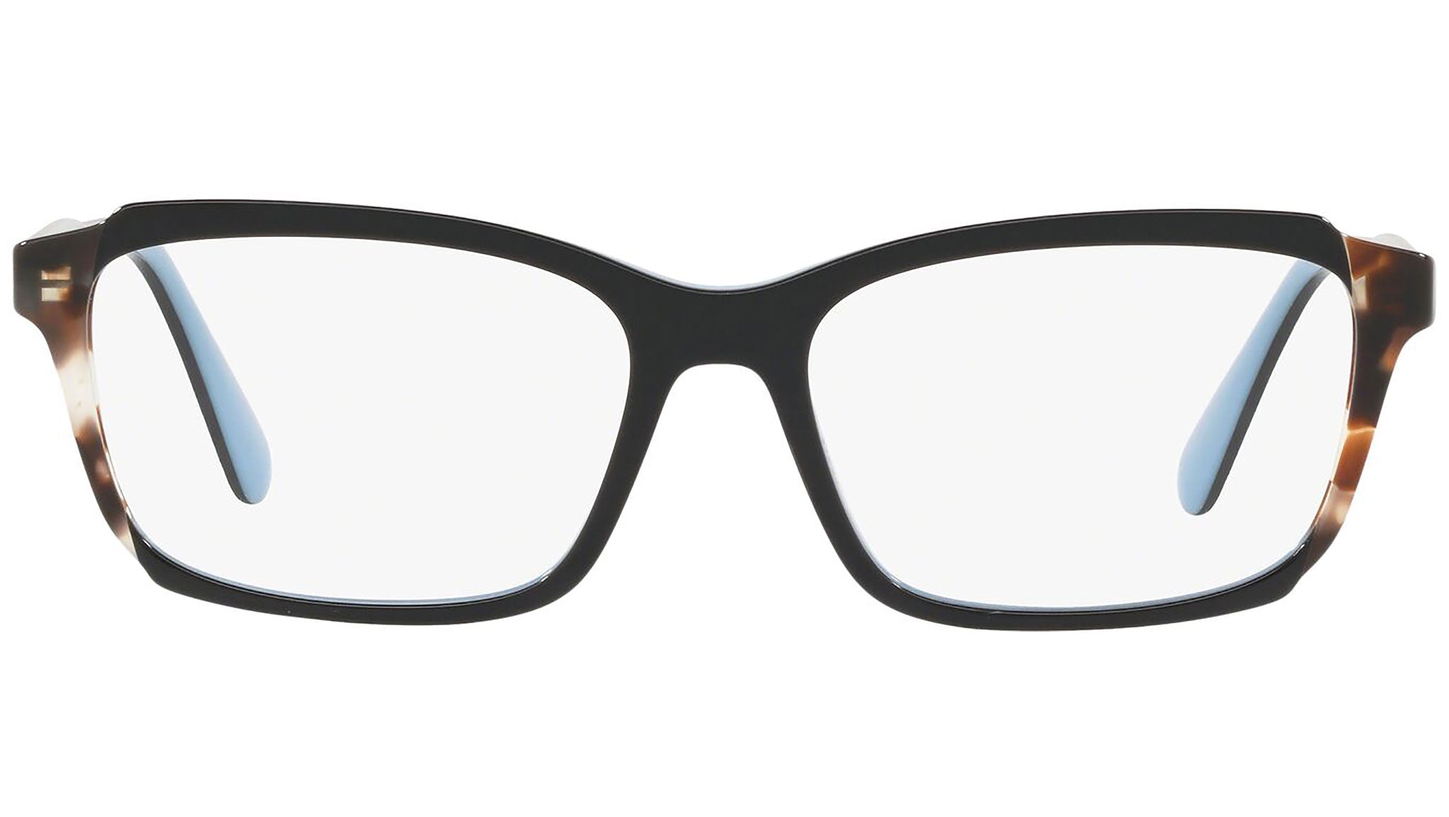 Occhiali da vista Prada modello PR 01VV, nella variante colore KHR1O1 top nero lucido su azzurro e inserto marrone. Prada rappresenta il meglio della cultura e della tradizione italiana. È uno dei marchi più innovativi, prestigiosi e riconosciuti nel mondo della moda e del lusso. La linea Prada Eyewear Collection è sinonimo di spiccata attenzione ai dettagli e alle nuove tendenze.