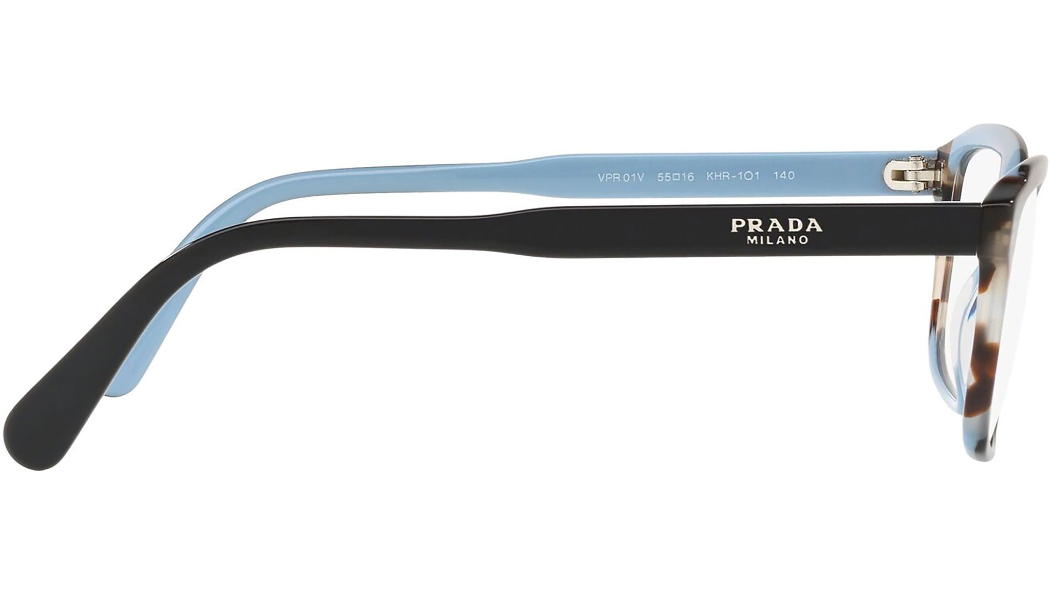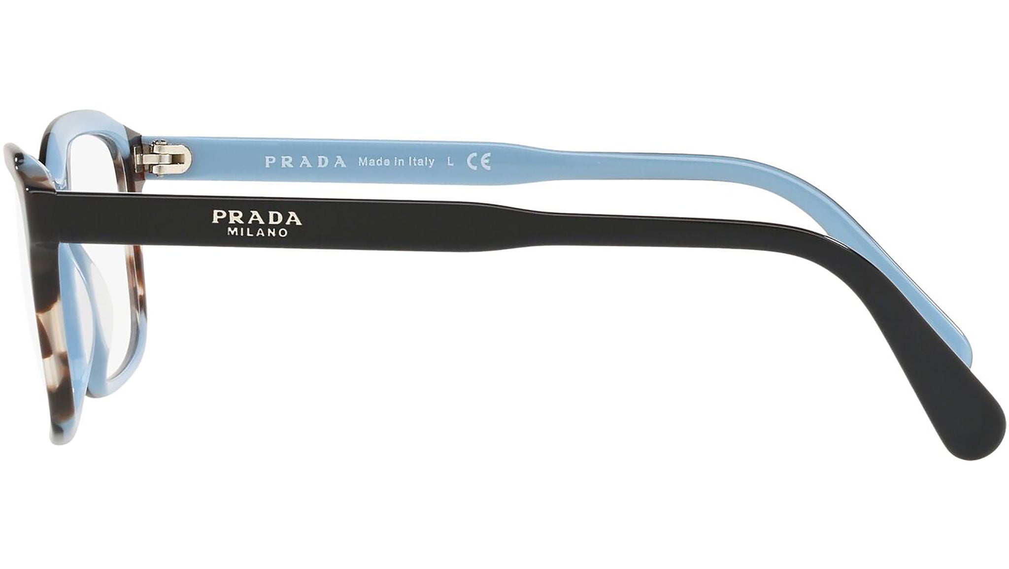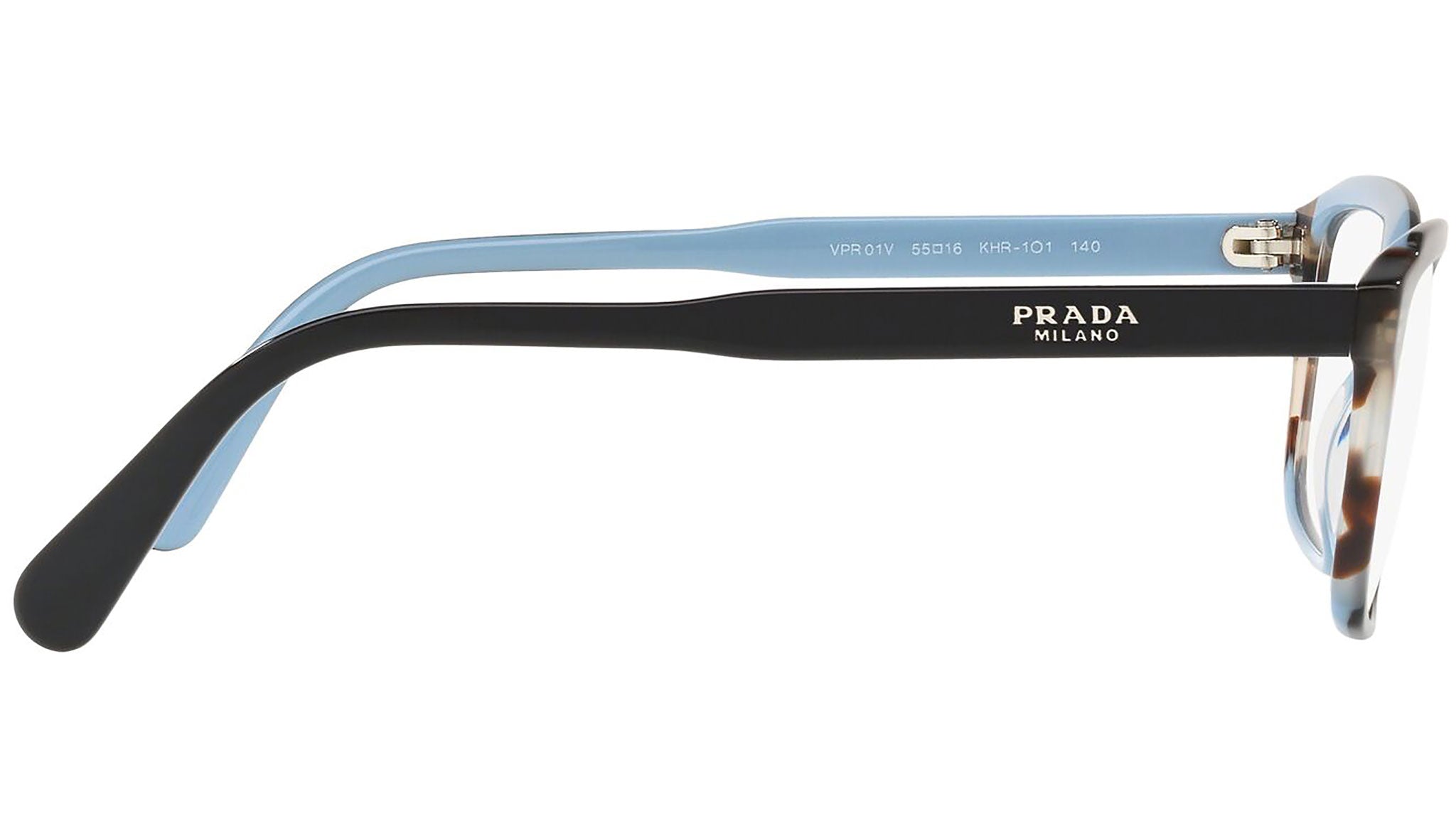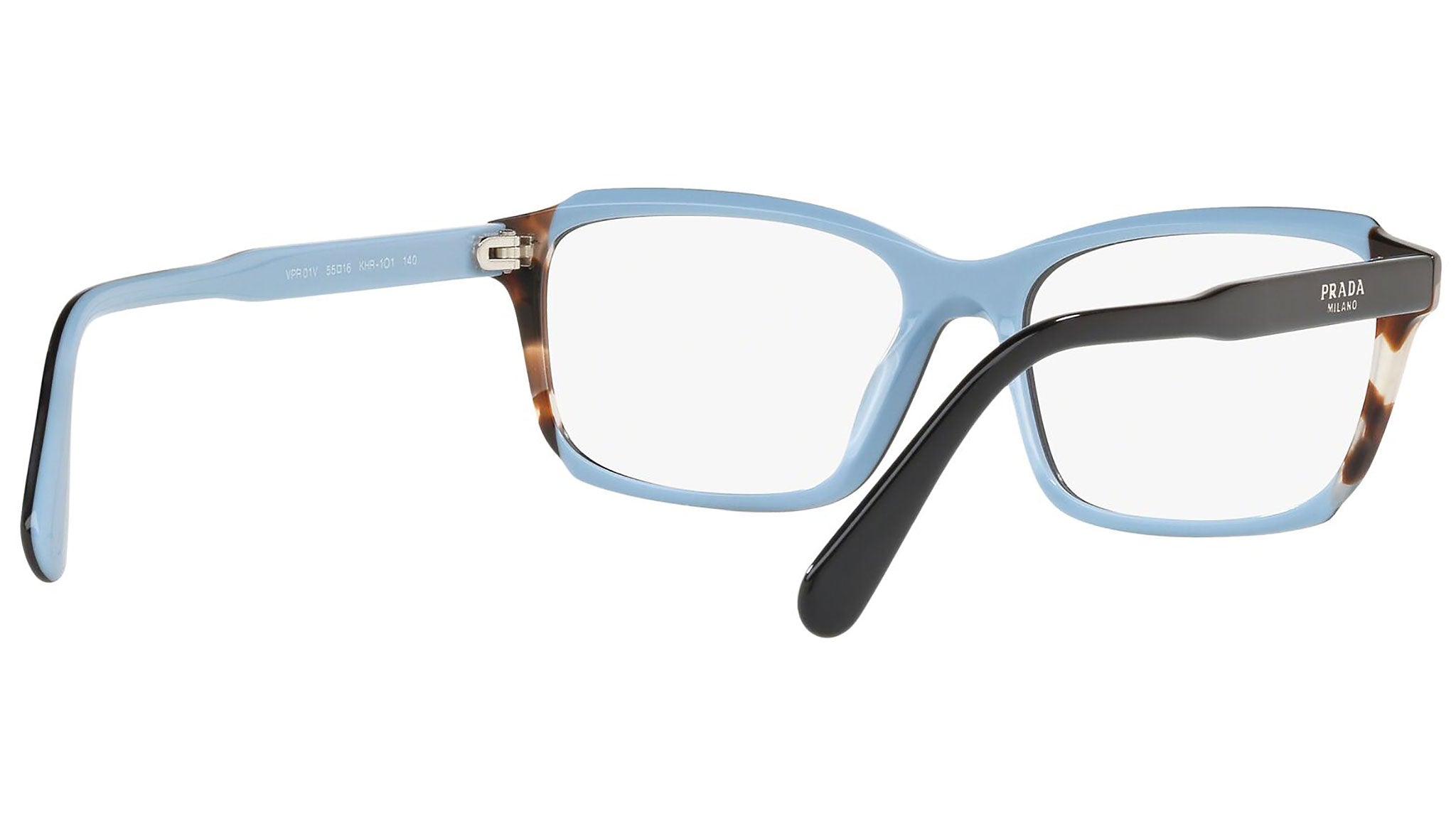 Occhiali da vista Prada modello PR 01VV, nella variante colore KHR1O1 top nero lucido su azzurro e inserto marrone. Prada rappresenta il meglio della cultura e della tradizione italiana. È uno dei marchi più innovativi, prestigiosi e riconosciuti nel mondo della moda e del lusso. La linea Prada Eyewear Collection è sinonimo di spiccata attenzione ai dettagli e alle nuove tendenze.