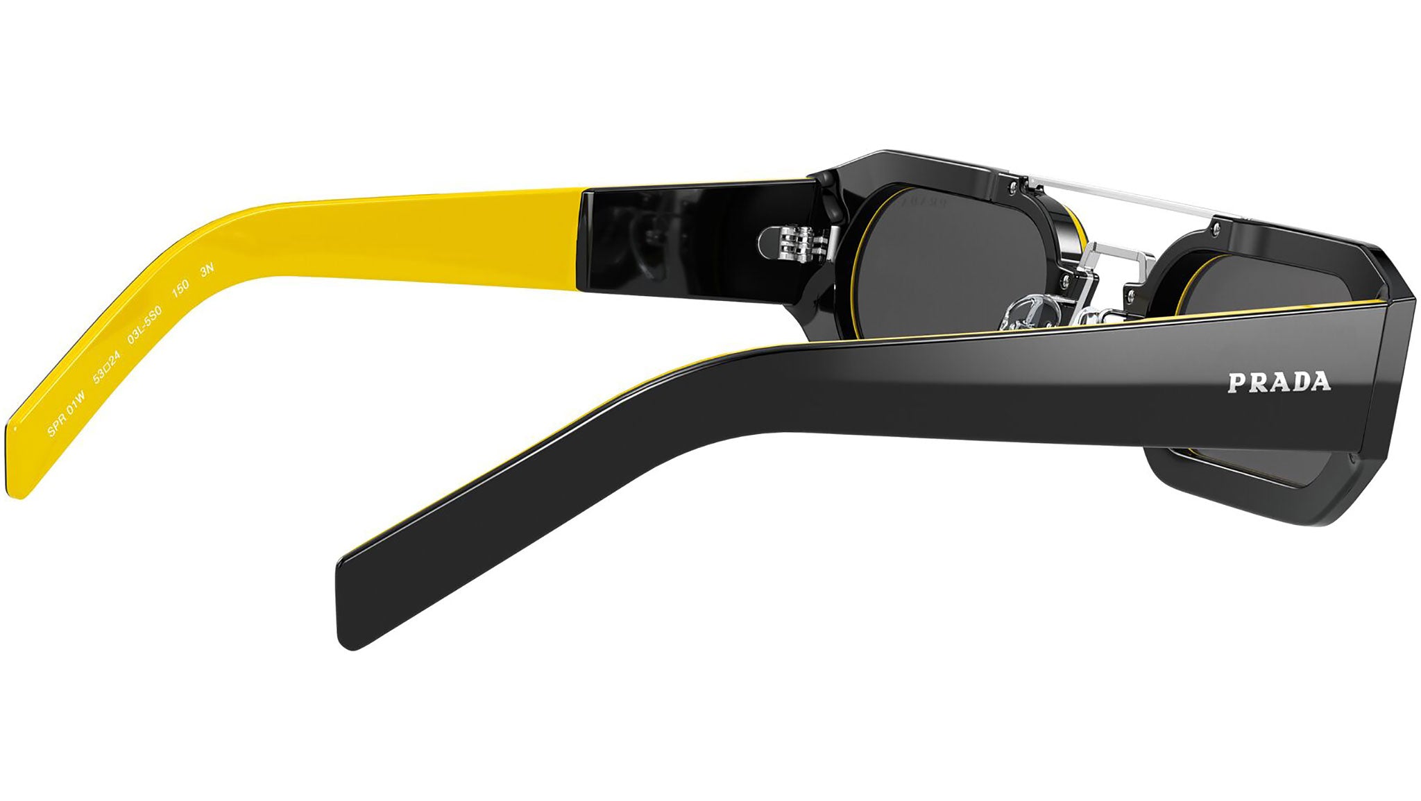 Occhiali da sole Prada modello PR01WS nella variante colore nero e giallo, con lenti color grigio scuro. Prada è uno dei marchi più rappresentativi della moda italiana, un esempio di stile, dove cultura e tradizione si fondono in uno dei brand più innovativi, prestigiosi e riconosciuti al mondo. Le collezioni di occhiali da sole Prada rispecchiano una grande attenzione ai dettagli e alle nuove tendenze, per uno stile inconfondibile, senza eguali, di raffinata eleganza e qualità assoluta.
