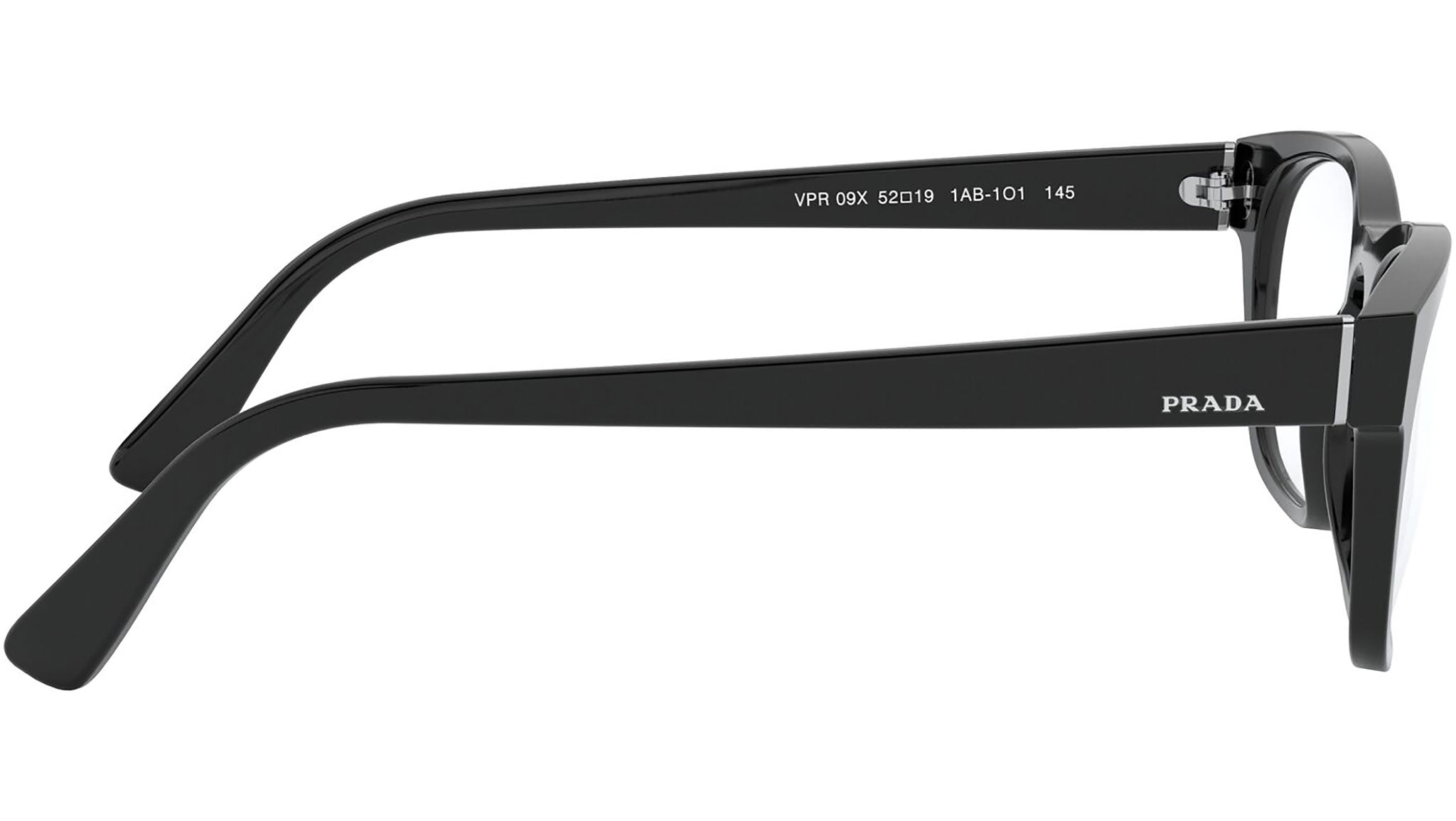 Prada Eyewear Collection model PR 09XV, black frame variant, color code 1AB1O1. Prada represents the best of Italian culture and tradition. It is one of the most innovative, prestigious and widely recognized brands in the fashion and luxury goods industries, with a keen attention to details and new trends.
