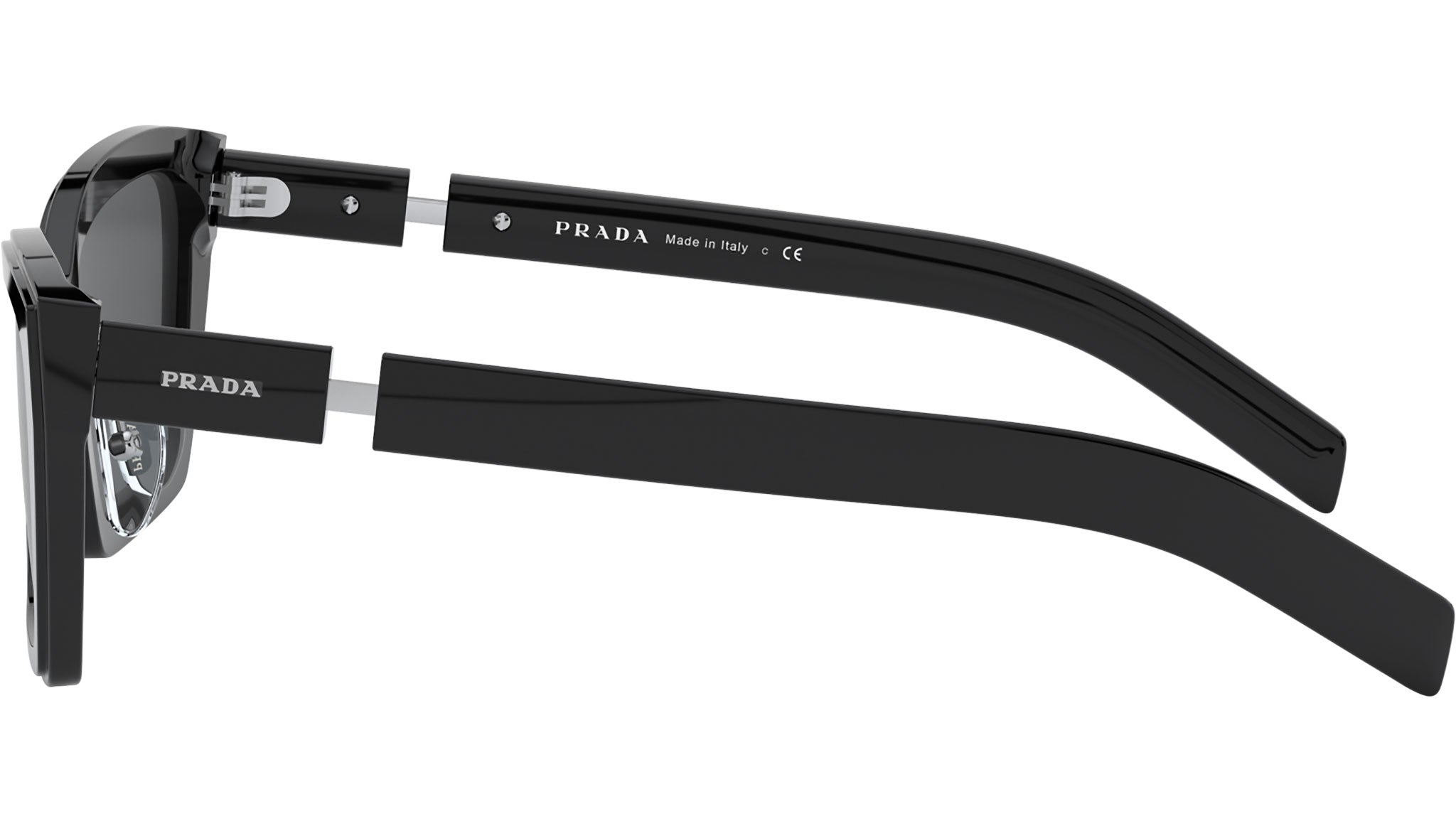 Prada sunglasses model PR 14XS, black frame variant, color code 1AB5S0 with dark grey lens. Prada represents the best of Italian culture and tradition. It is one of the most innovative, prestigious and widely recognized brands in the fashion and luxury goods industries, with a keen attention to details and new trends.