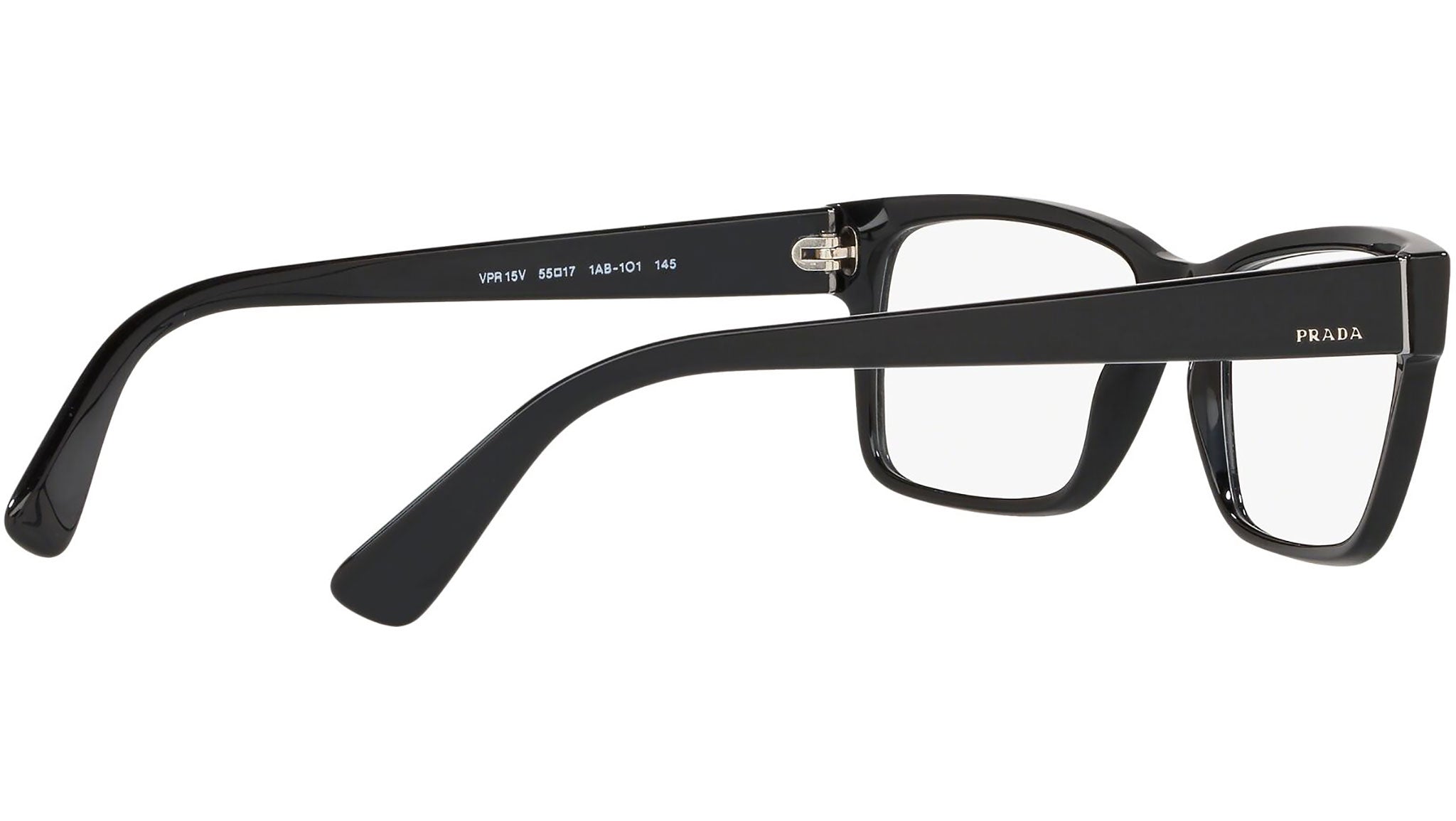 Prada Eyewear Collection model PR 15VV, black frame variant, color code 1AB1O1. Prada represents the best of Italian culture and tradition. It is one of the most innovative, prestigious and widely recognized brands in the fashion and luxury goods industries, with a keen attention to details and new trends.
