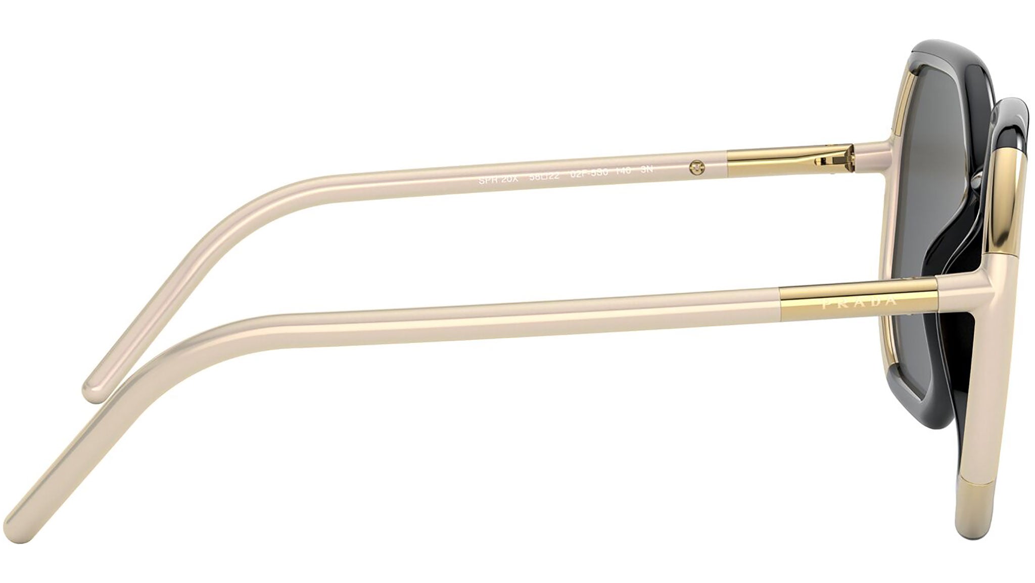 Prada sunglasses model PR 20XS, black frame variant, color code 02F5S0 with dark grey lens. Prada represents the best of Italian culture and tradition. It is one of the most innovative, prestigious and widely recognized brands in the fashion and luxury goods industries, with a keen attention to details and new trends.