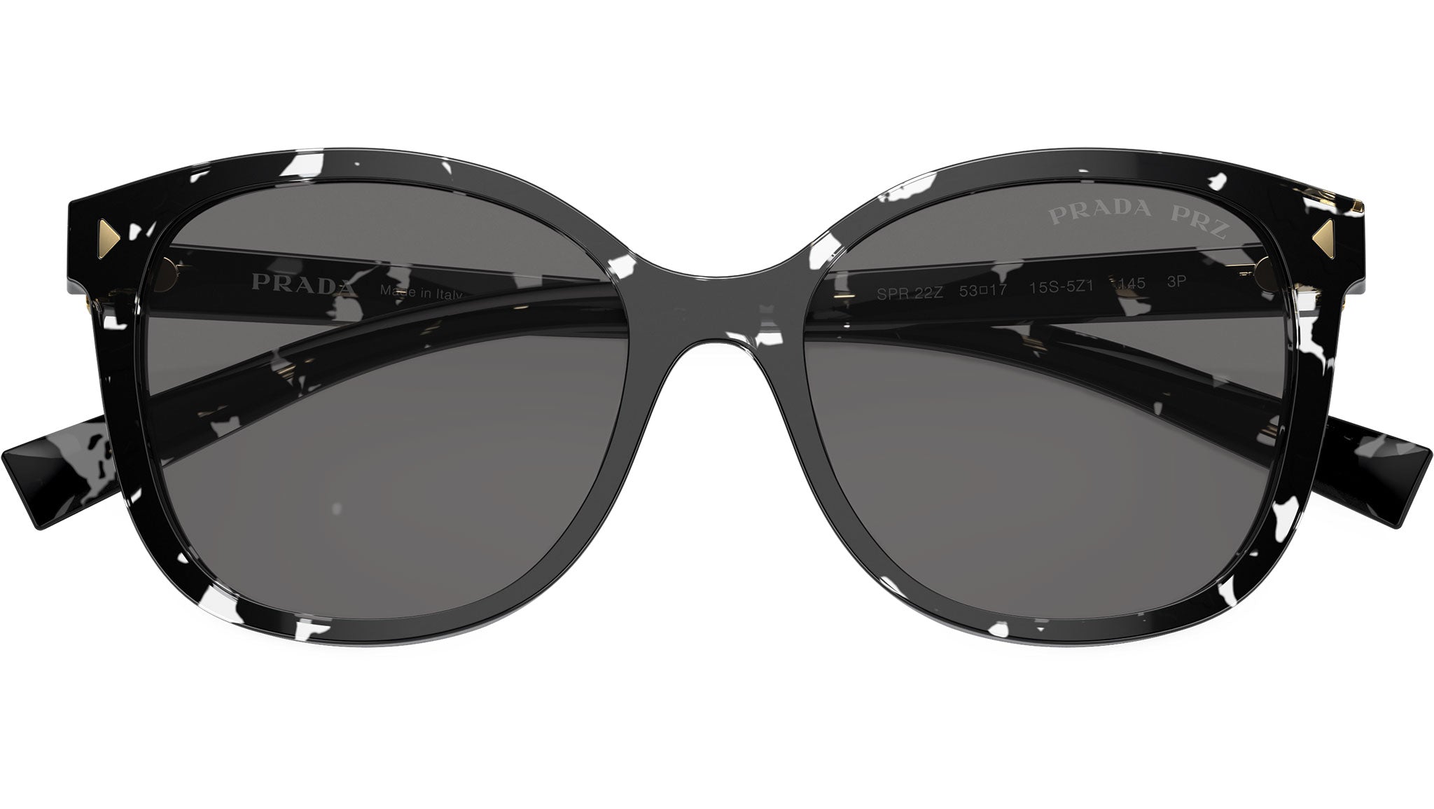 Occhiali da sole Prada donna modello 22ZS con montatura tartaruga cristallo nero full rim in acetato e lenti grigio scuro polarizzato base 4. Fit a ponte alto. Linea: Signature. Brand code: PR22ZS. Codice colore: 15S5Z1. Rivenditore autorizzato Prada. Ogni prodotto Prada viene consegnato con astuccio originale e accessori ed è coperto da garanzia del produttore di 12 mesi.