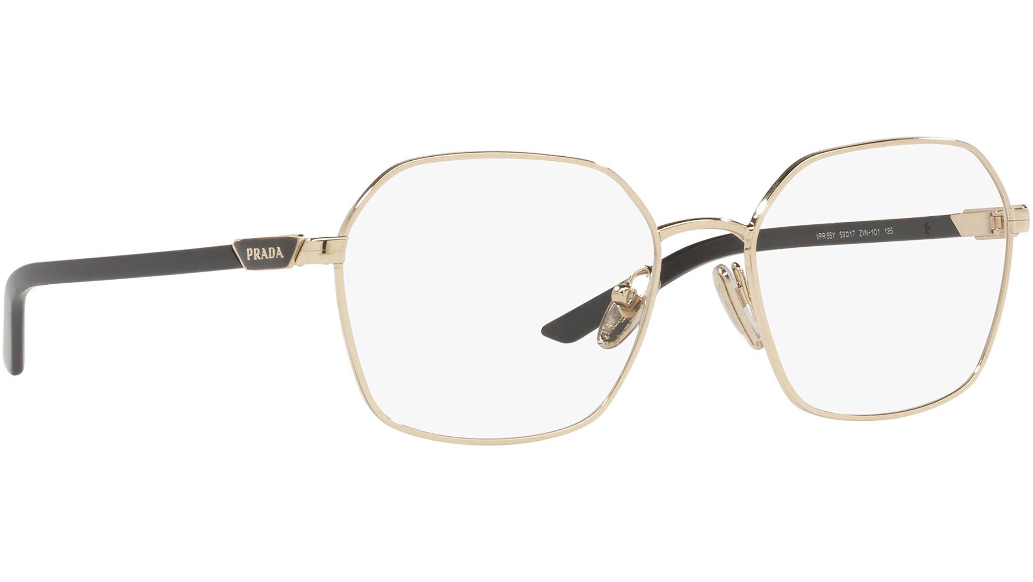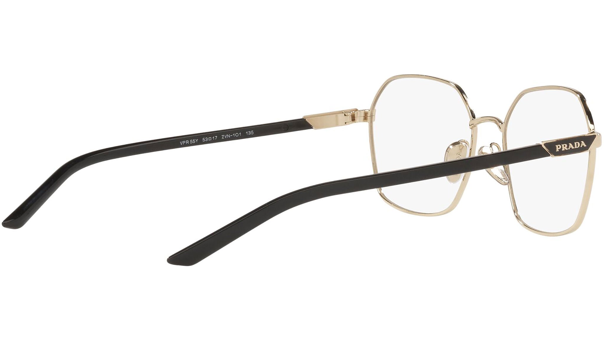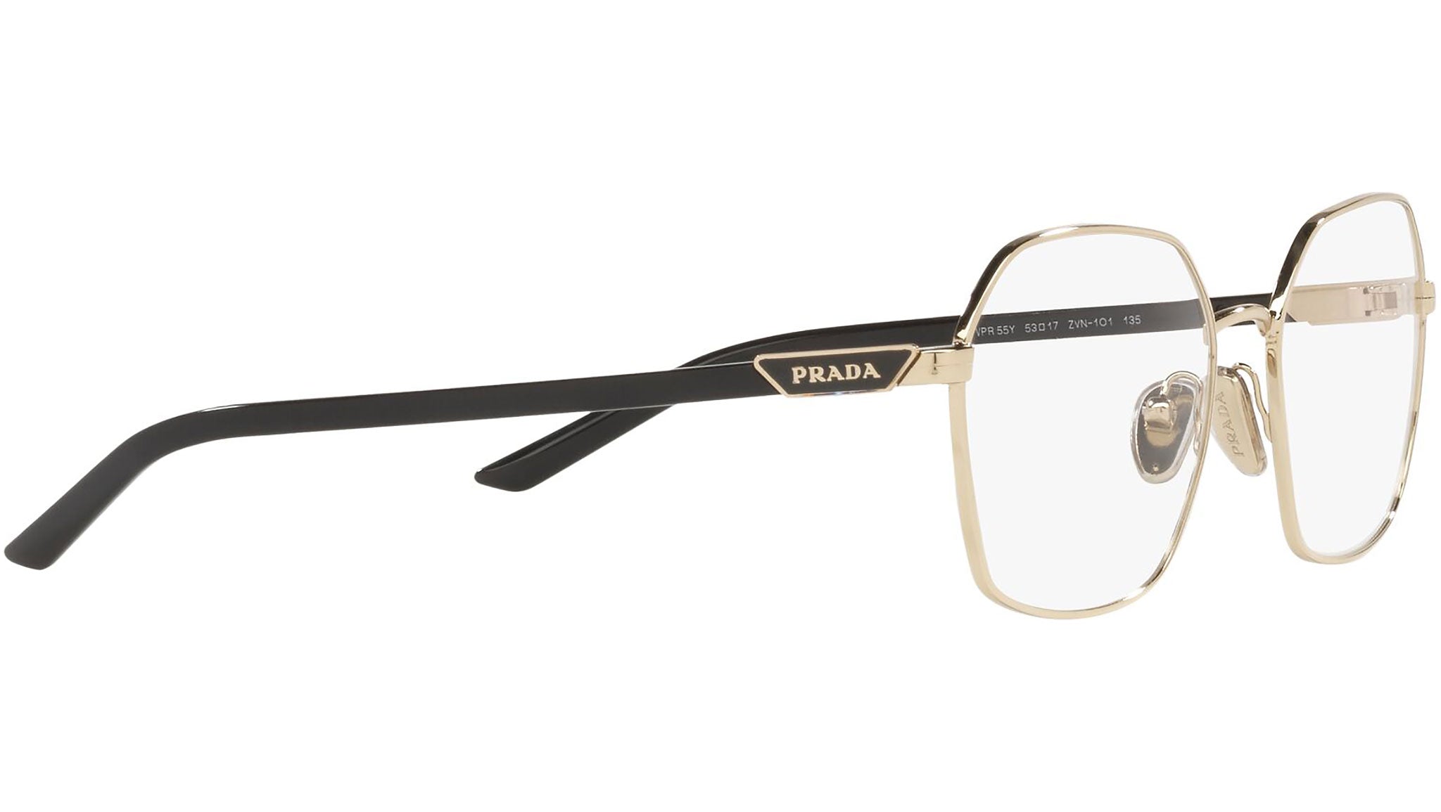 Occhiali da vista Prada modello PR 55YV variante colore oro pallido, codice colore ZVN1O1. Prada rappresenta il vertice della tradizione e della moda Italiana. È uno dei brand più innovativi, prestigiosi e più riconosciuti nel mondo del fashion e degli accessori di lusso, massima espressione della cura per i dettagli, emblema di stile, nella sua raffinata interpretazione dei nuovi trend della moda internazionale.