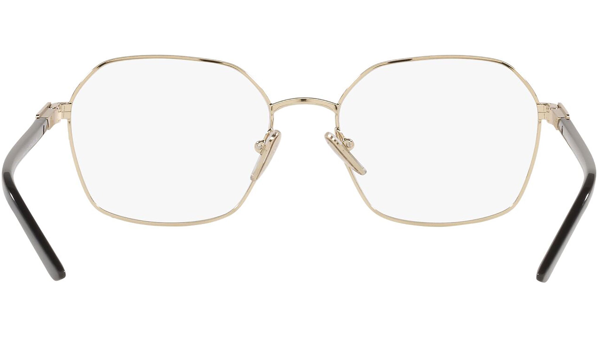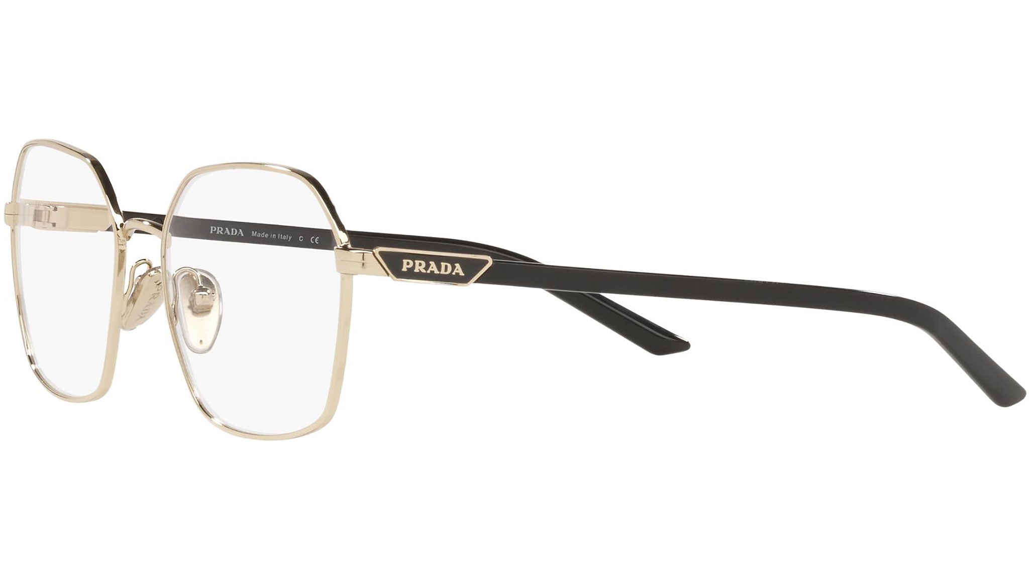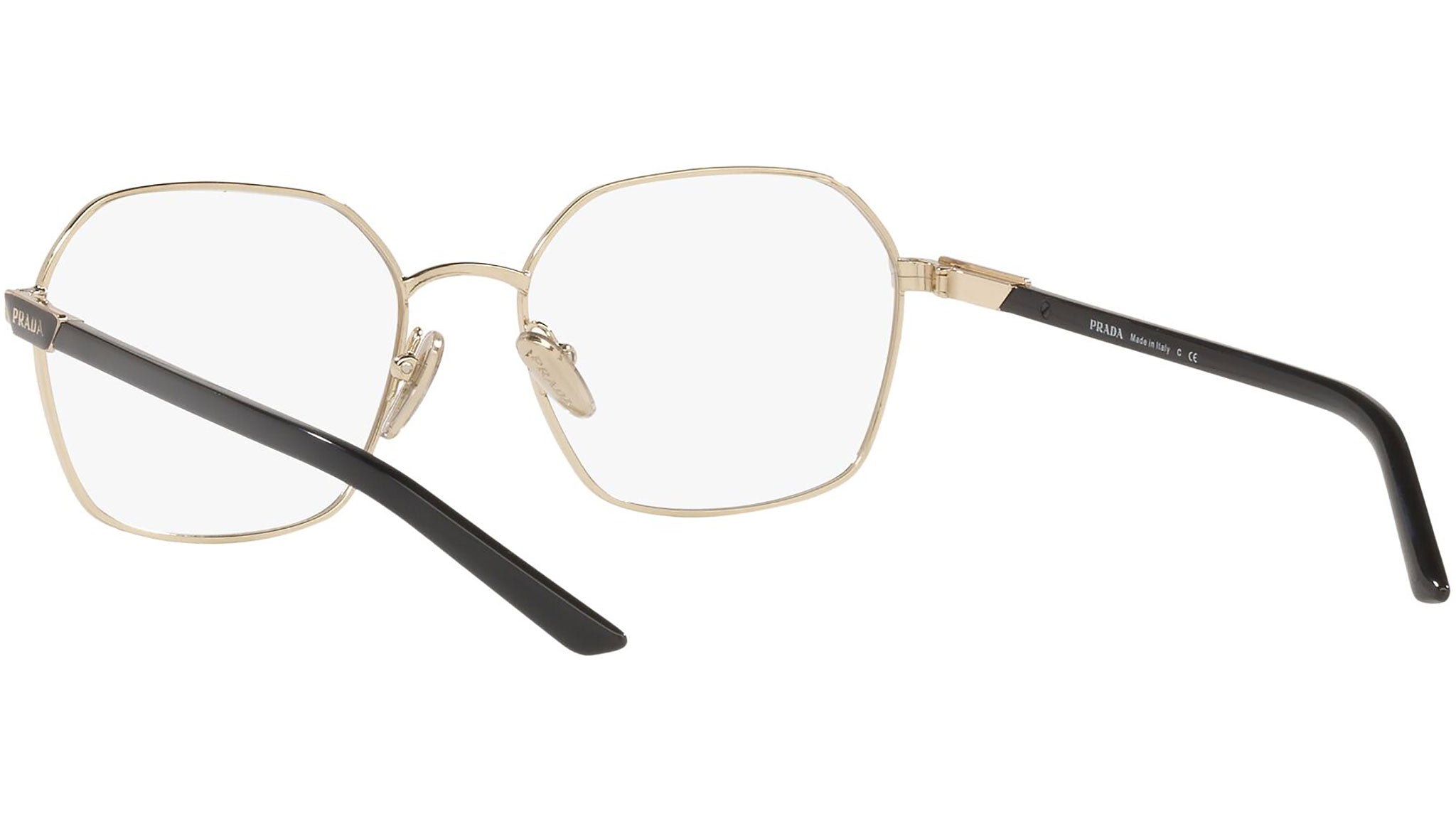 Occhiali da vista Prada modello PR 55YV variante colore oro pallido, codice colore ZVN1O1. Prada rappresenta il vertice della tradizione e della moda Italiana. È uno dei brand più innovativi, prestigiosi e più riconosciuti nel mondo del fashion e degli accessori di lusso, massima espressione della cura per i dettagli, emblema di stile, nella sua raffinata interpretazione dei nuovi trend della moda internazionale.