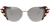 Prada sunglasses model PR 59VS, silver and black orange frame variant, color code 4275O0 with gradient grey mirror silver lens. Prada represents the best of Italian culture and tradition. It is one of the most innovative, prestigious and widely recognized brands in the fashion and luxury goods industries, with a keen attention to details and new trends.